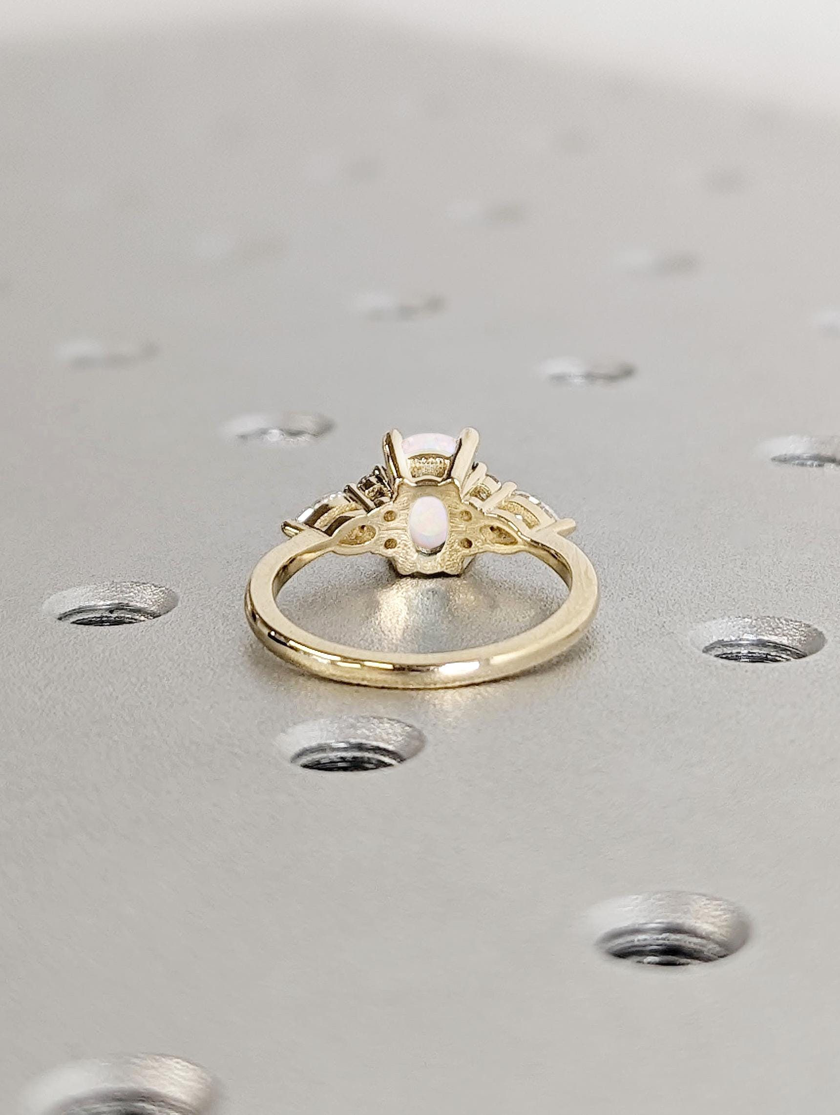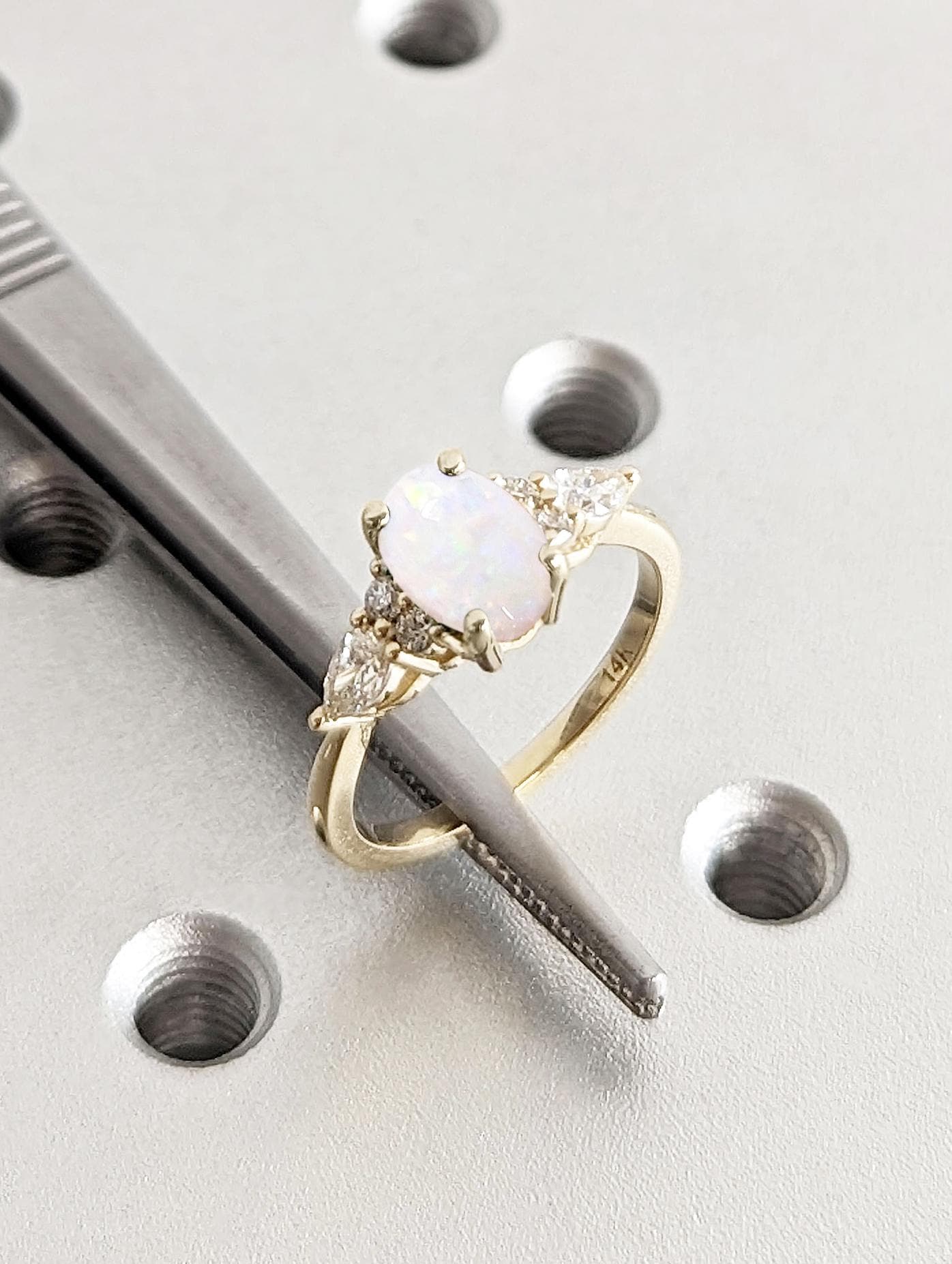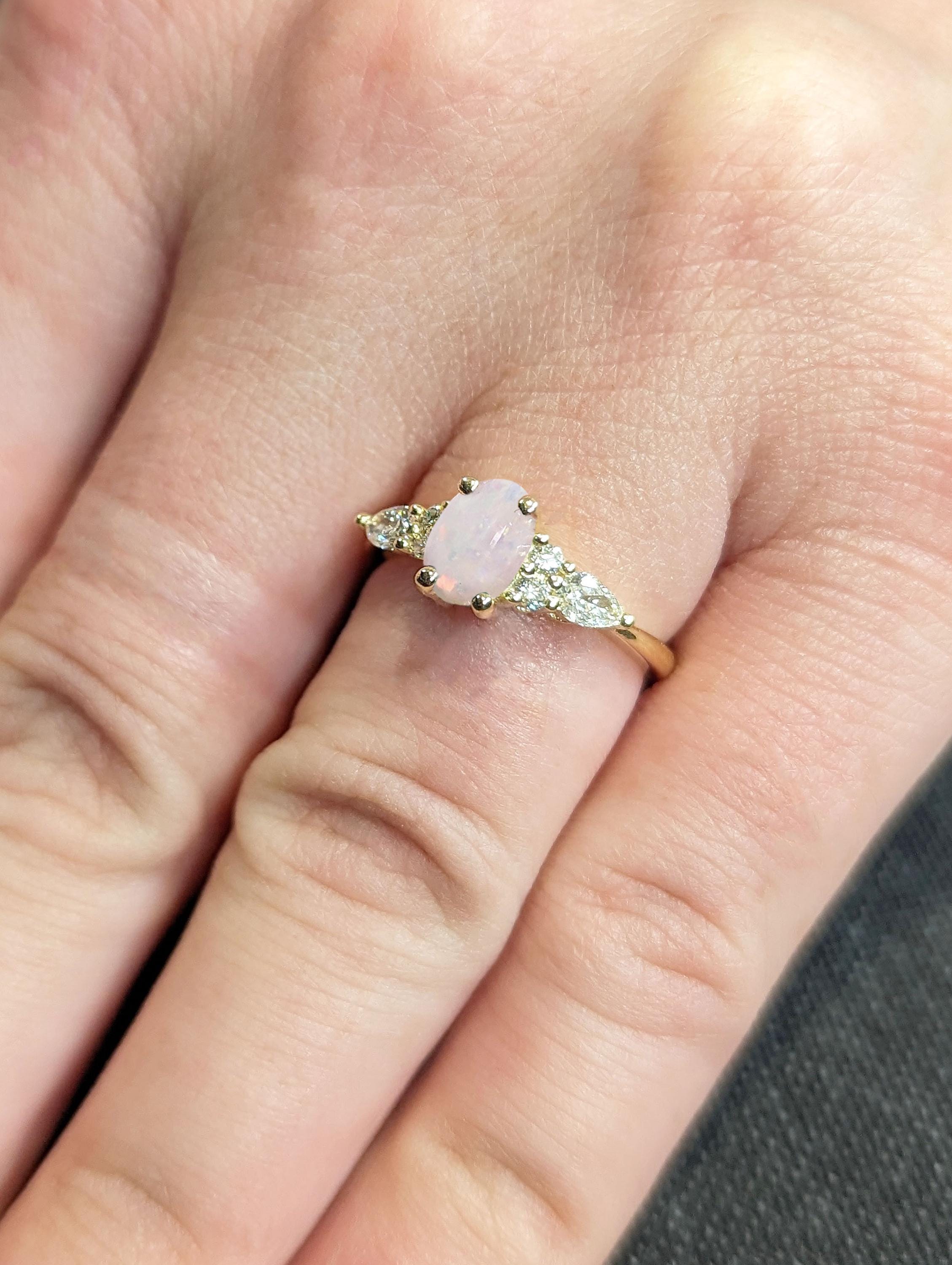 14k Yellow Gold Opal and Diamond Engagement Ring | Art Deco Promise Anniversary Ring for Her | Oval cut Opal Ring | Unique Engagement Ring