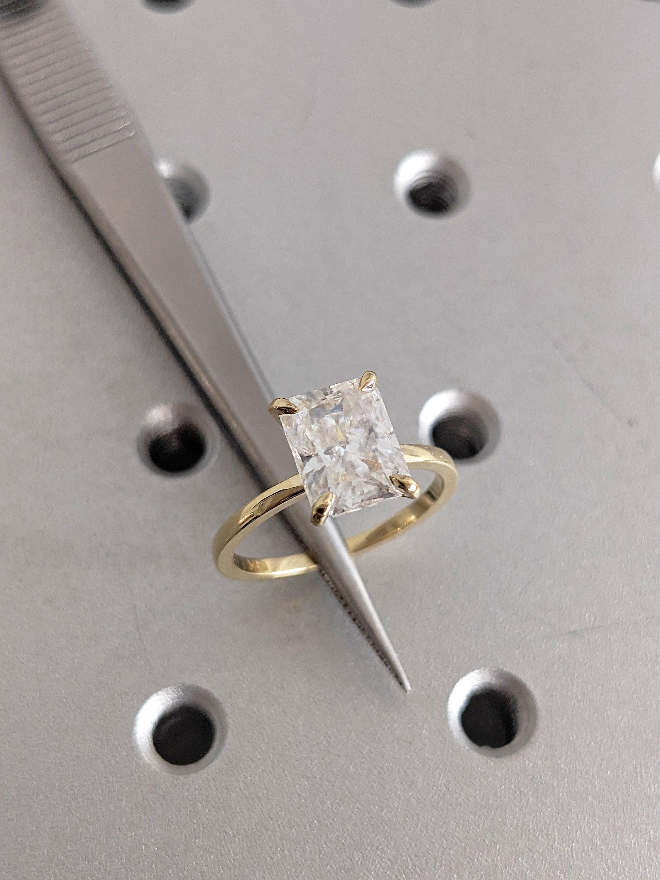 14K Yellow Gold Radiant Cut Moissanite Engagement Ring, Talon Prong Ring, Wedding Ring, Statement Ring