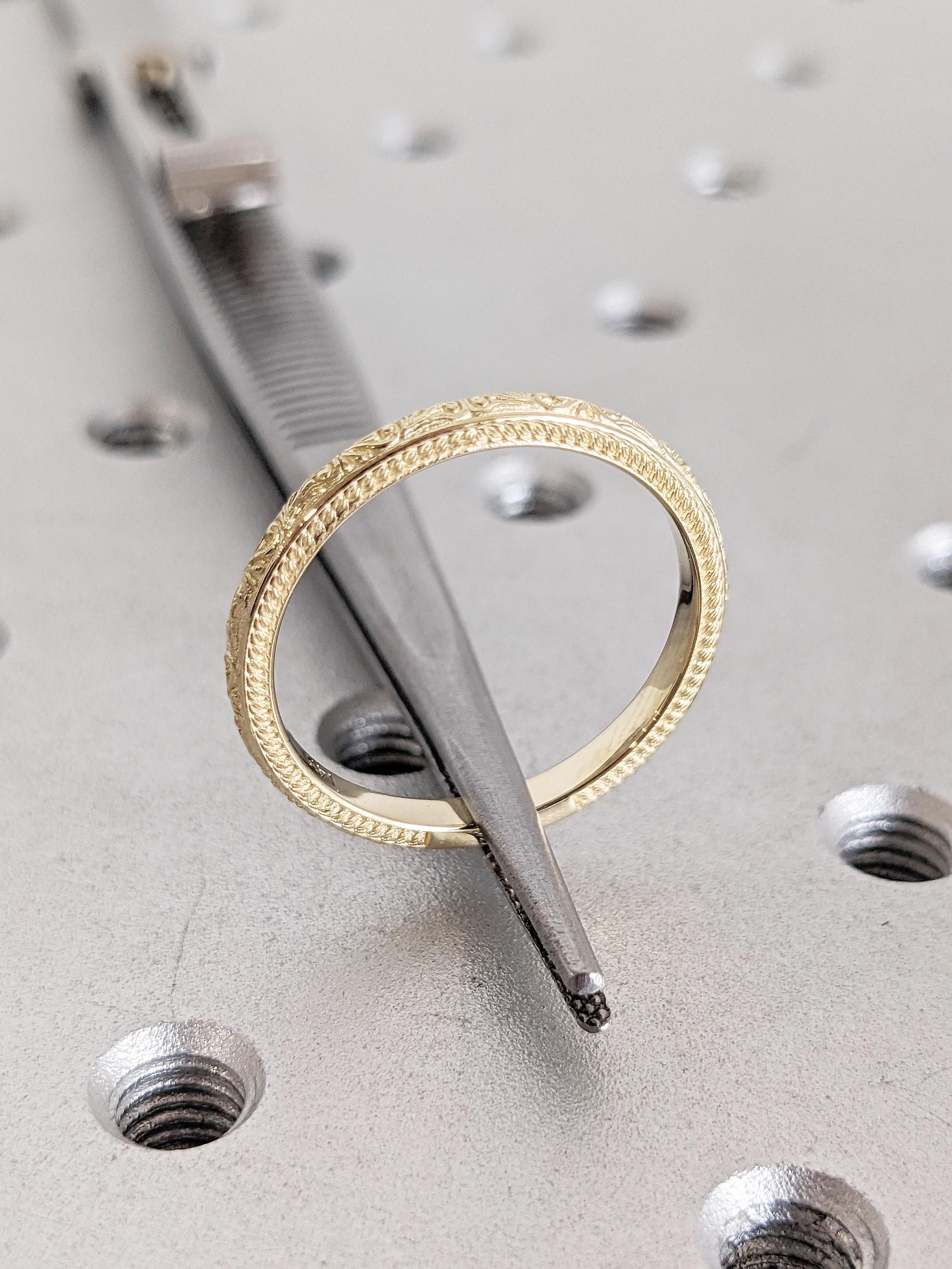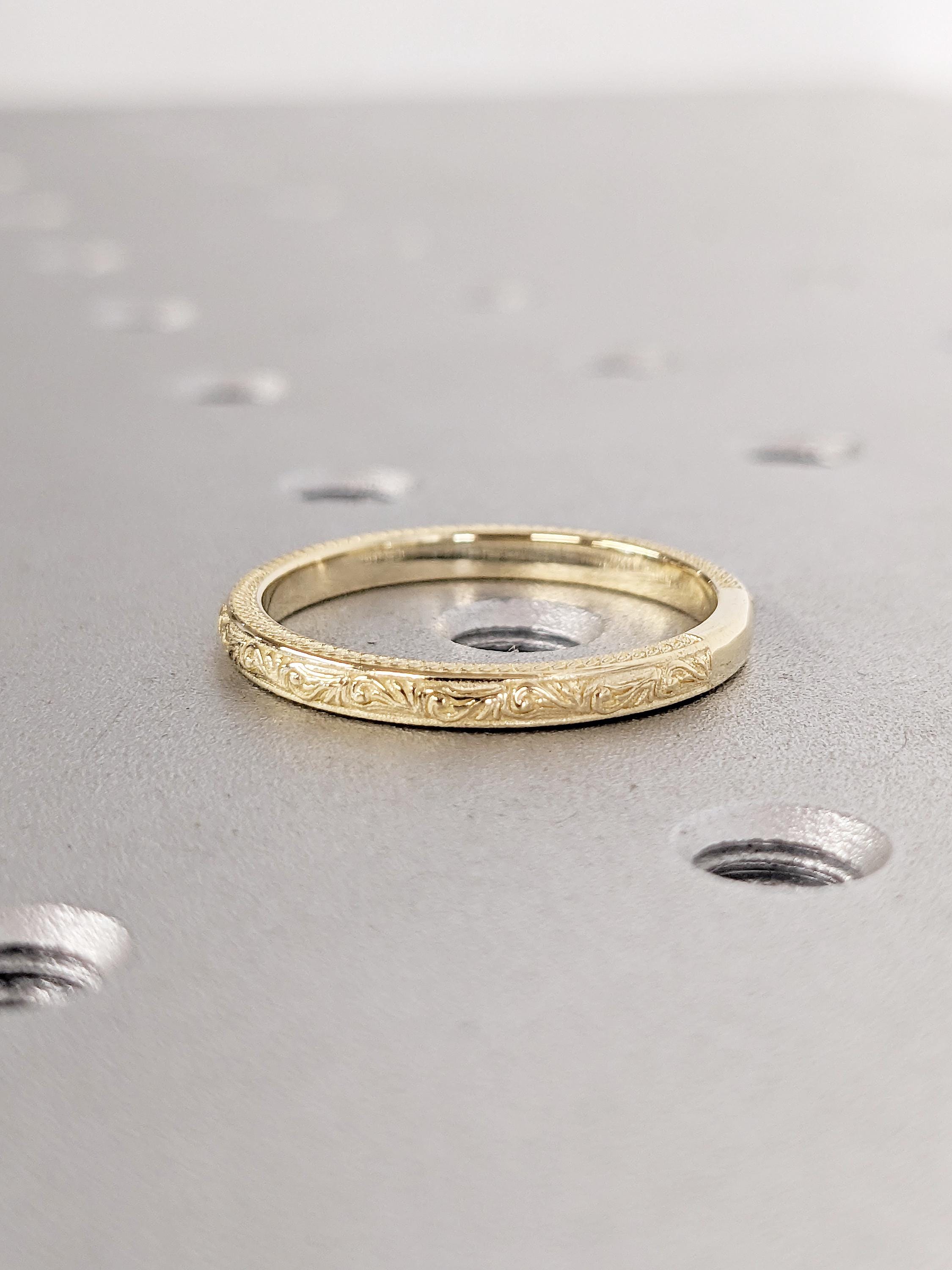 14k Yellow Gold Womens Wedding Band, Filigree Ring, Milgrain Gold Stacking Ring, Unique Matching Ring, Dainty Wedding Ring, Anniversary Ring