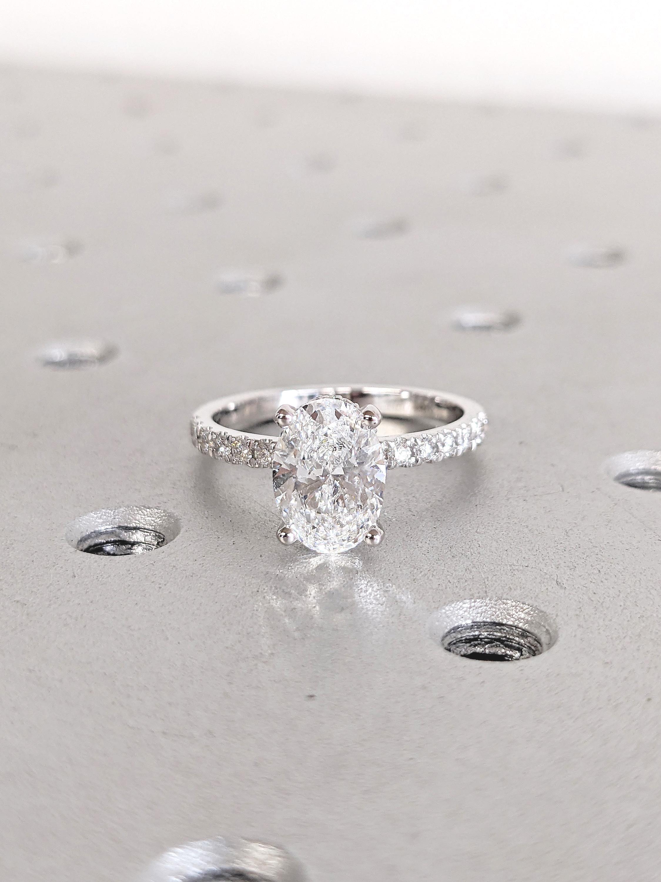 1.5ct Lab Diamond Engagement Ring, Hidden Halo Oval Ring, Dainty Lab Diamond Ring, Oval Engagement Ring, White Gold Ring, Unique Bridal Gift
