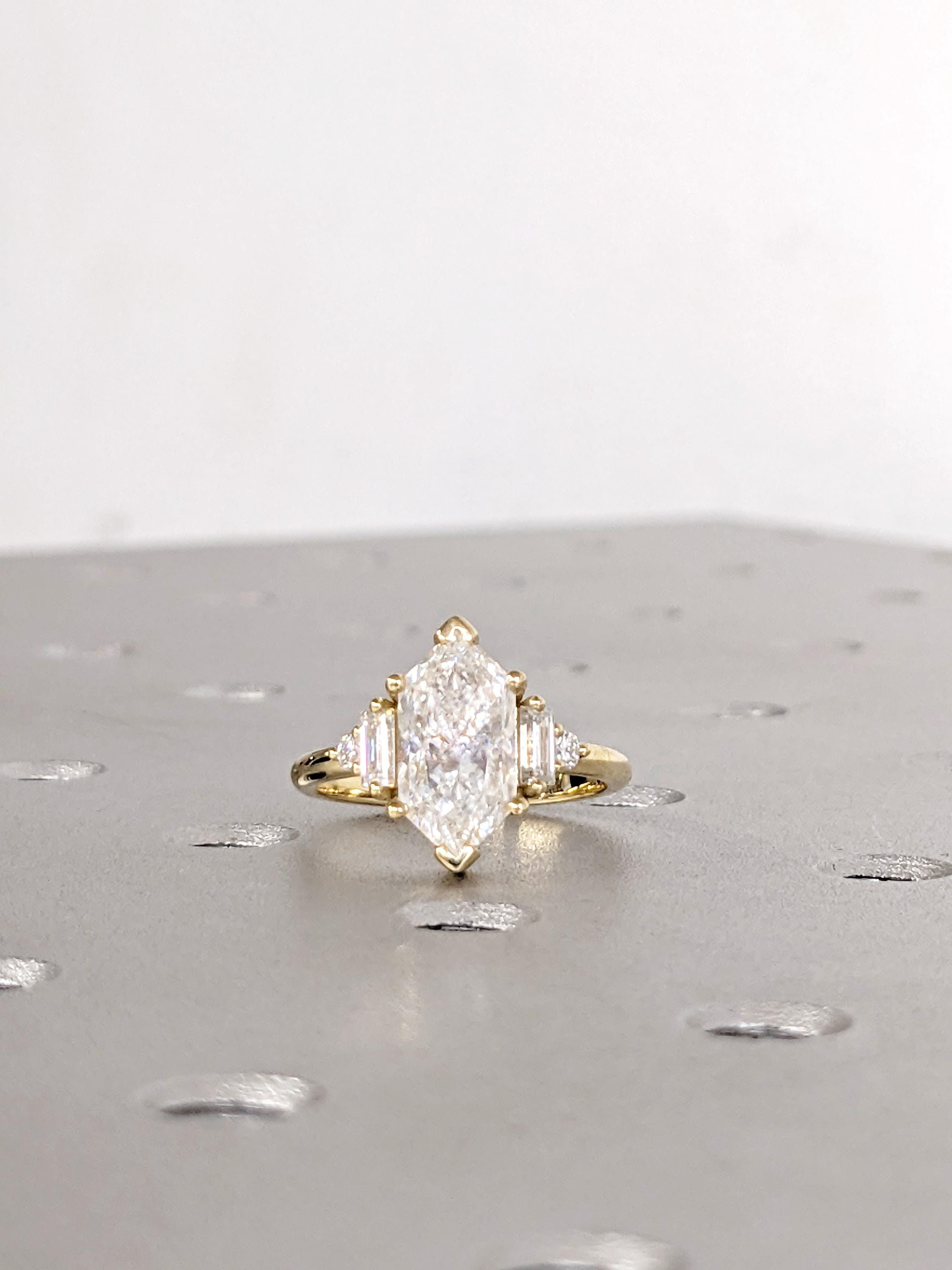 1.5ct Lab Diamond Ring, IGI Certified Lab Grown Diamond, Dutch Marquise Cut 14K Yellow Gold Ring, Engagement Wedding Anniversary Bridal Ring