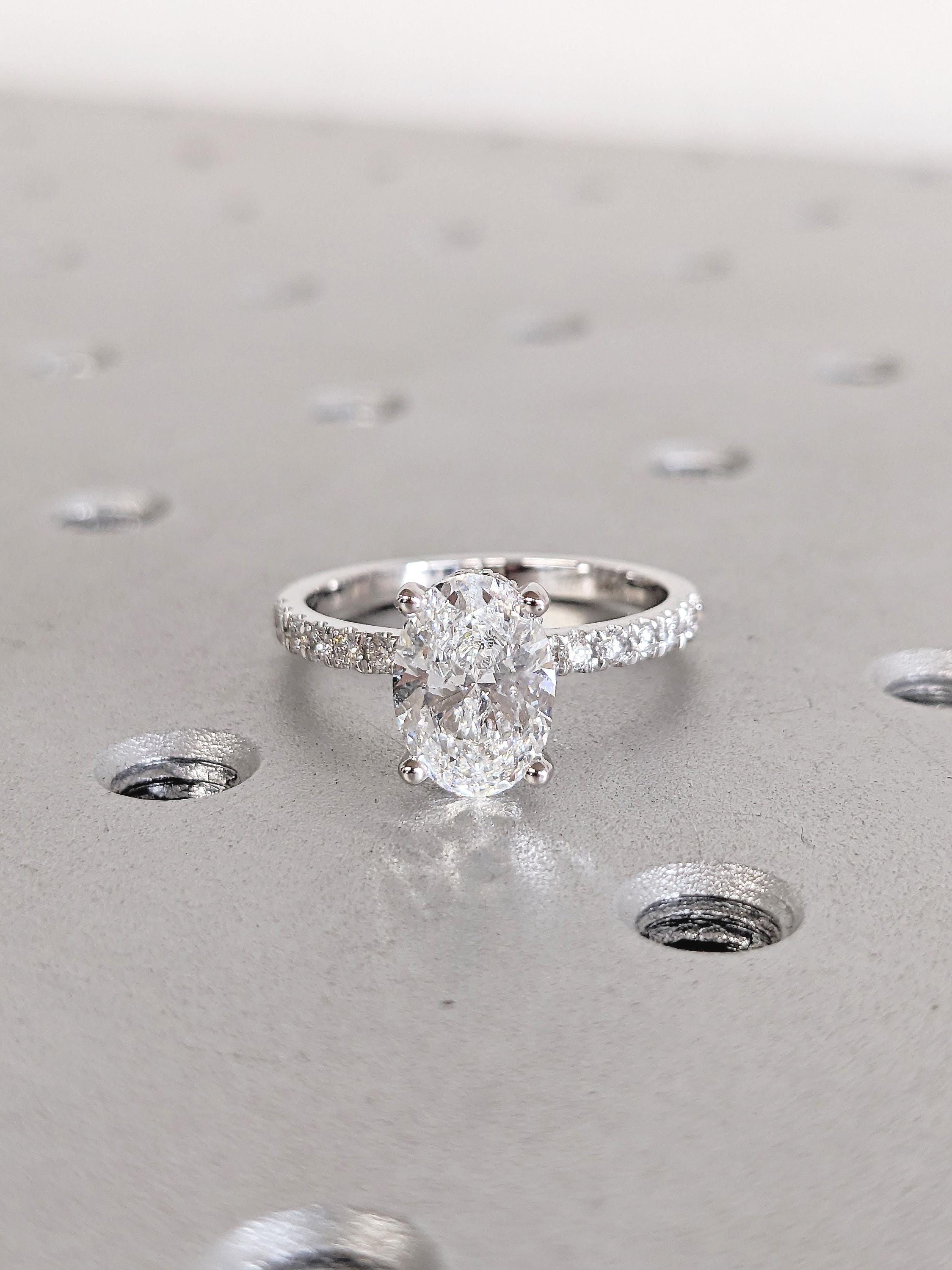 1.5ct Oval Lab Grown Diamond Ring, 14k Gold Engagement Ring, Vintage Lab Created Diamond Ring, Half Eternity Band, Birthday Gifts for Her