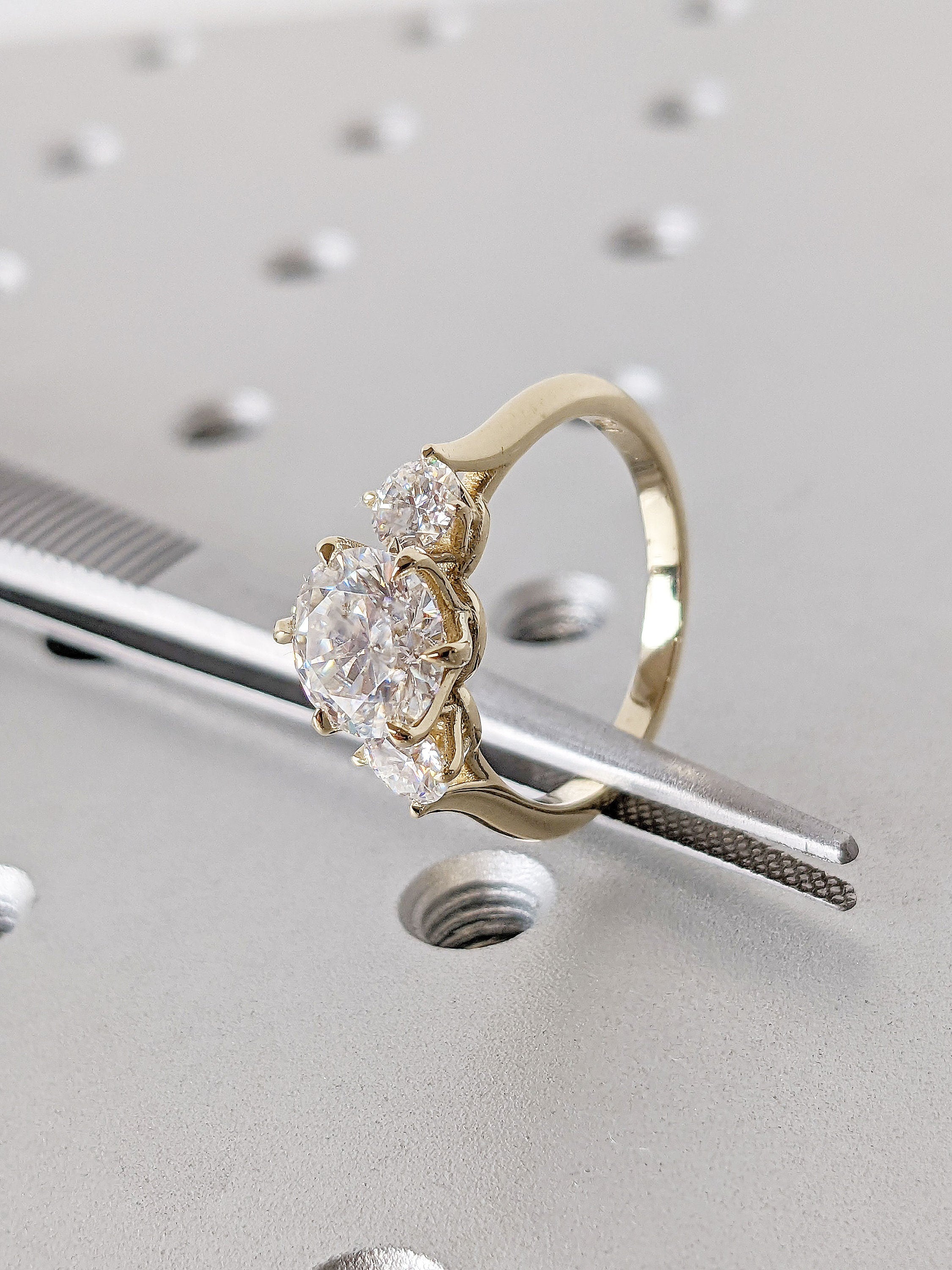 1.5ct Round Moissanite Multi Stone Women Wedding Anniversary Ring | Solid Gold, Platinum Jewelry | 3 Gemstone Personalized Commitment Ring