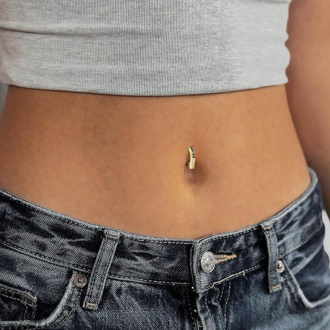 18K Gold Naval Ring, Ombre Curved Diamond Belly Button Clicker, Body Piercing, Women's Jewelry