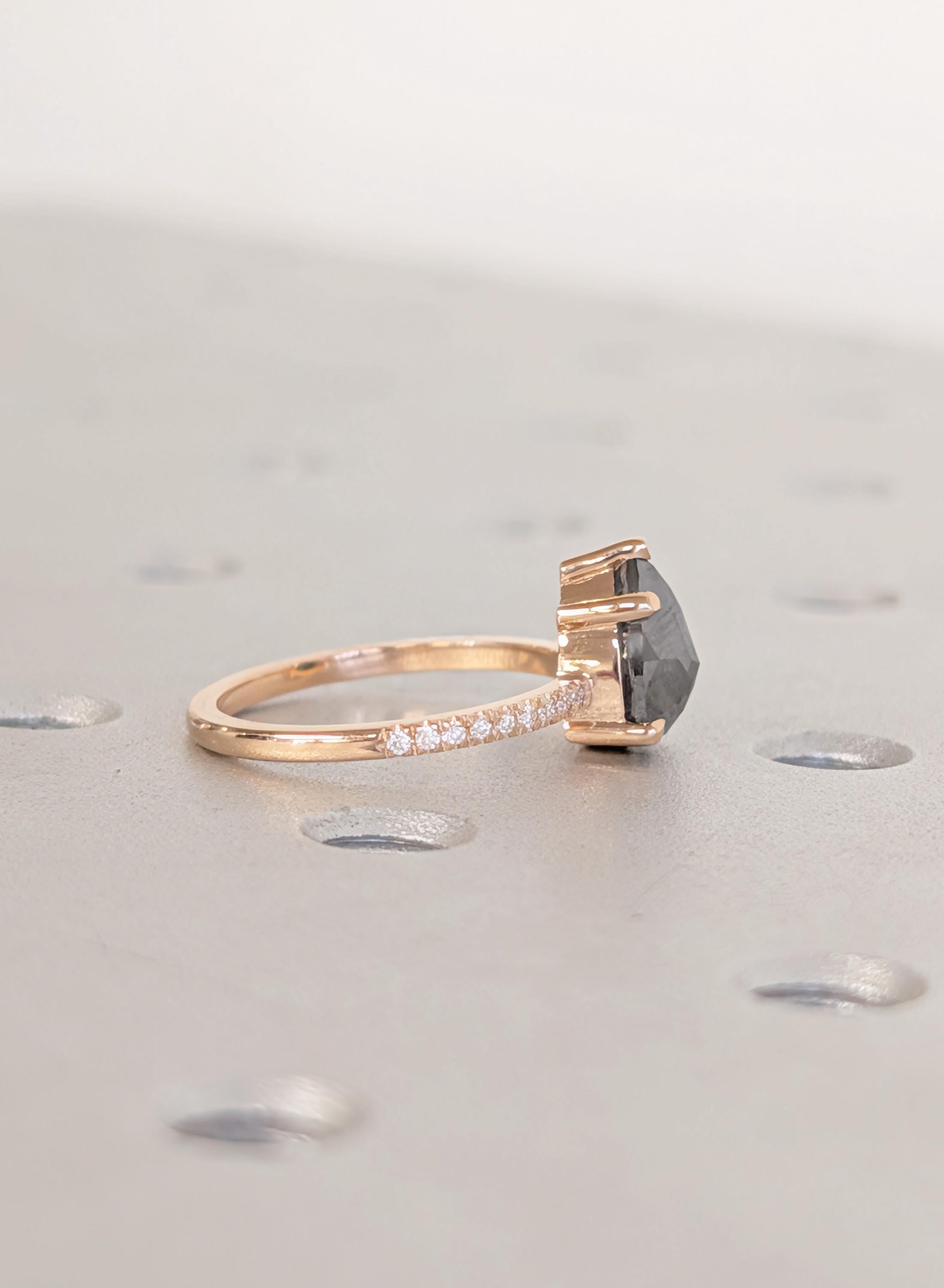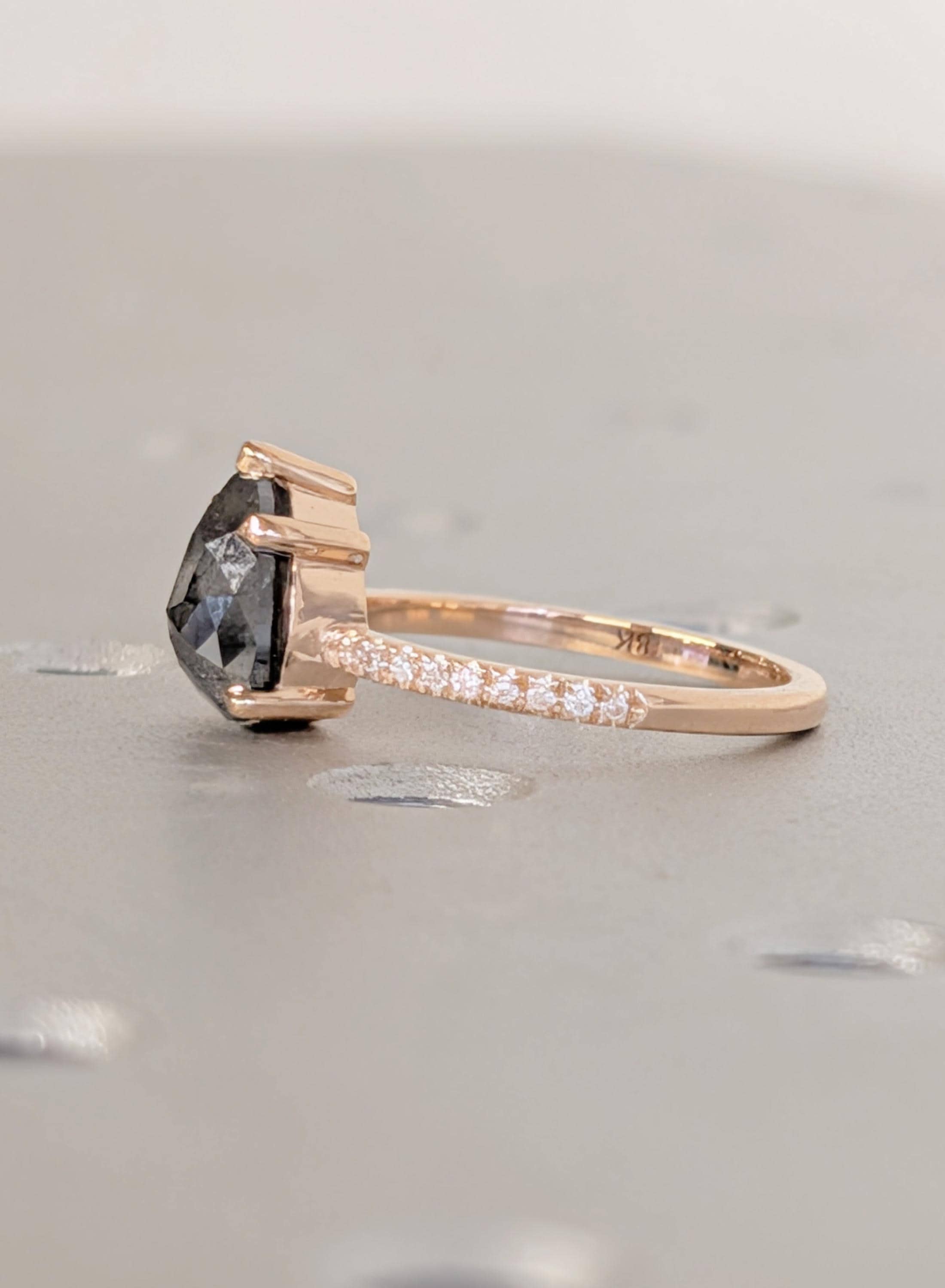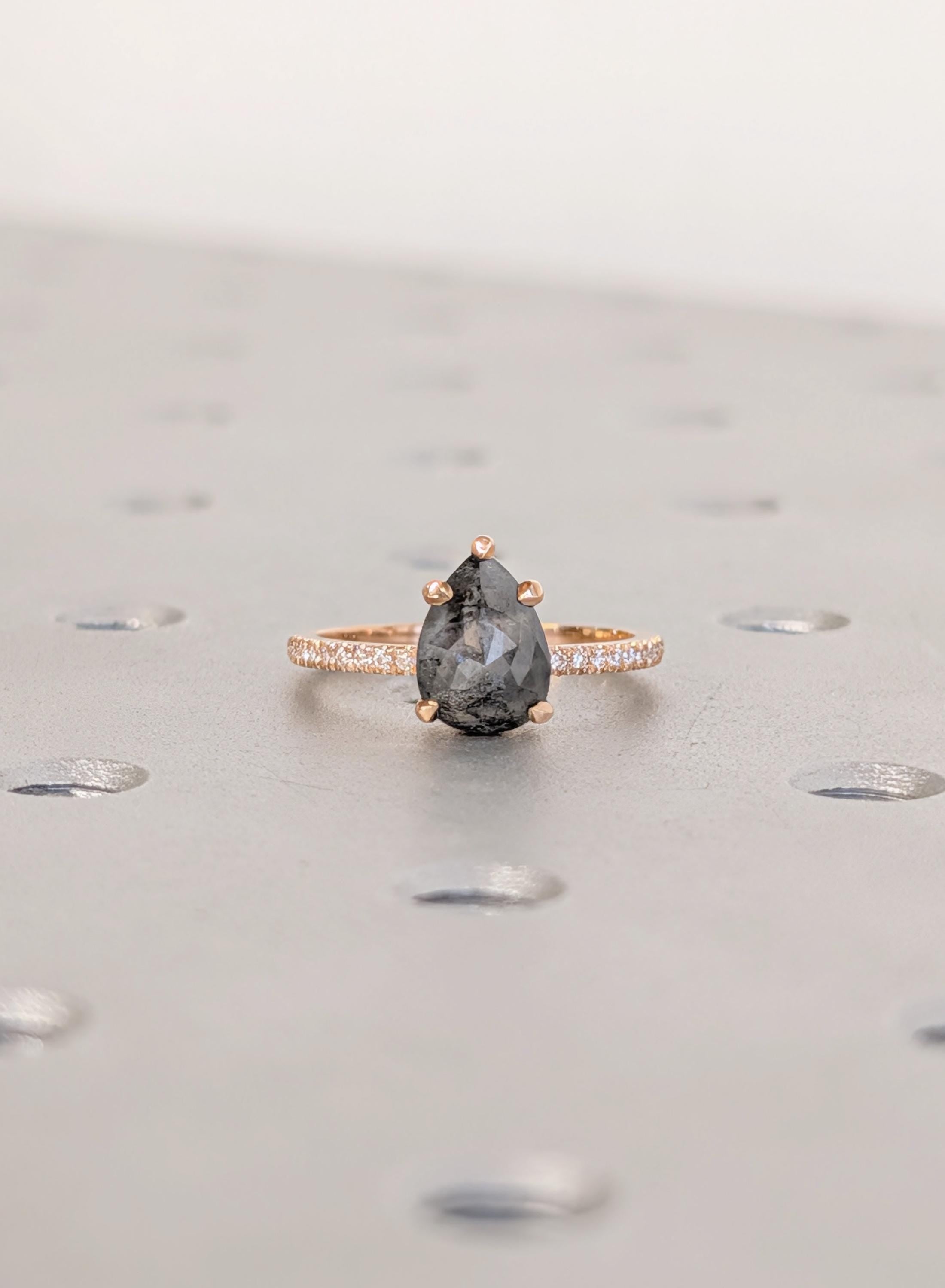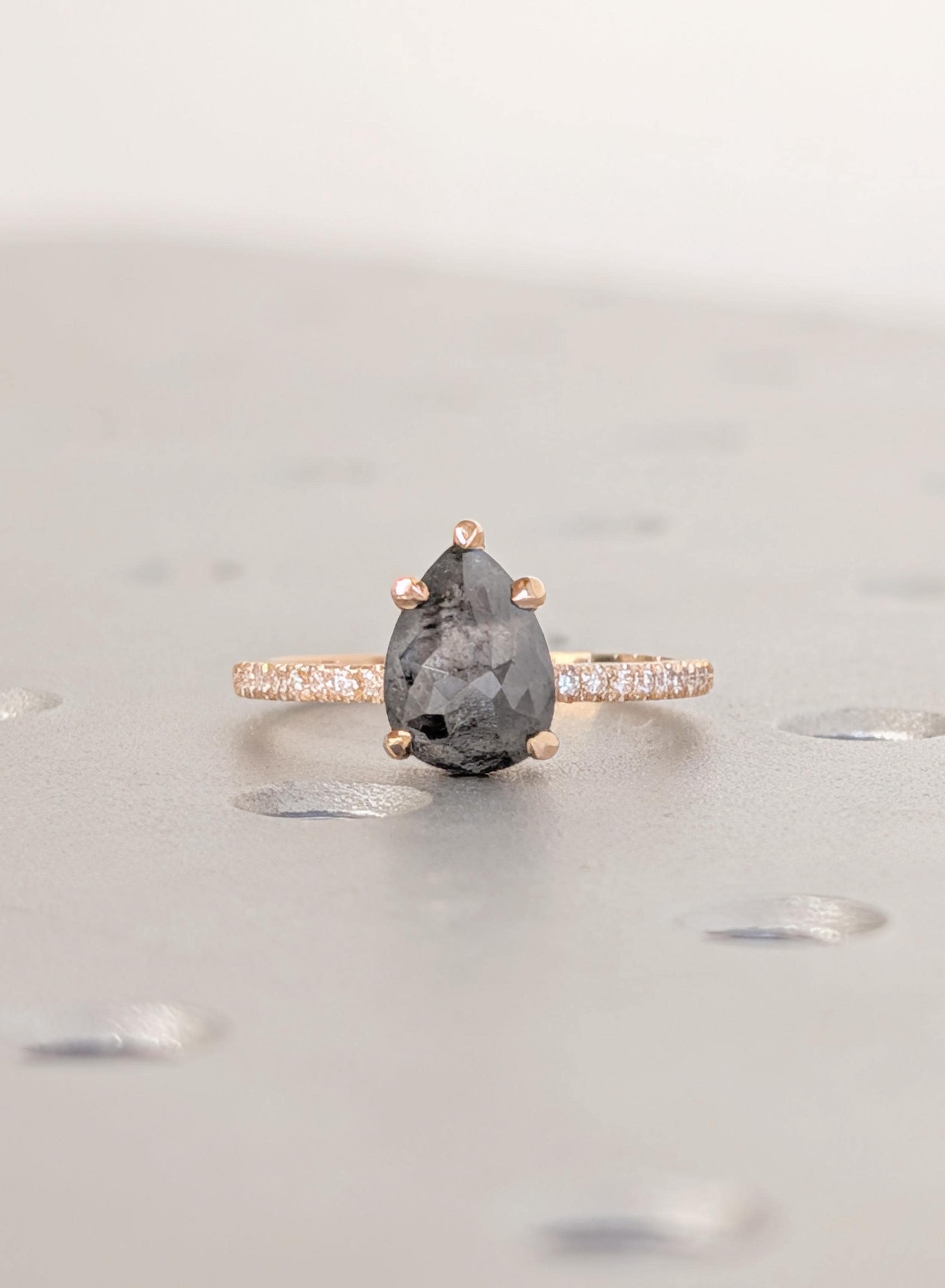 18K Rose Gold Engagement Ring, Pear Cut Salt and Pepper Diamond Ring, Dainty Pave Side Diamond Ring, Promise Ring, Woman's Ring, Custom Ring