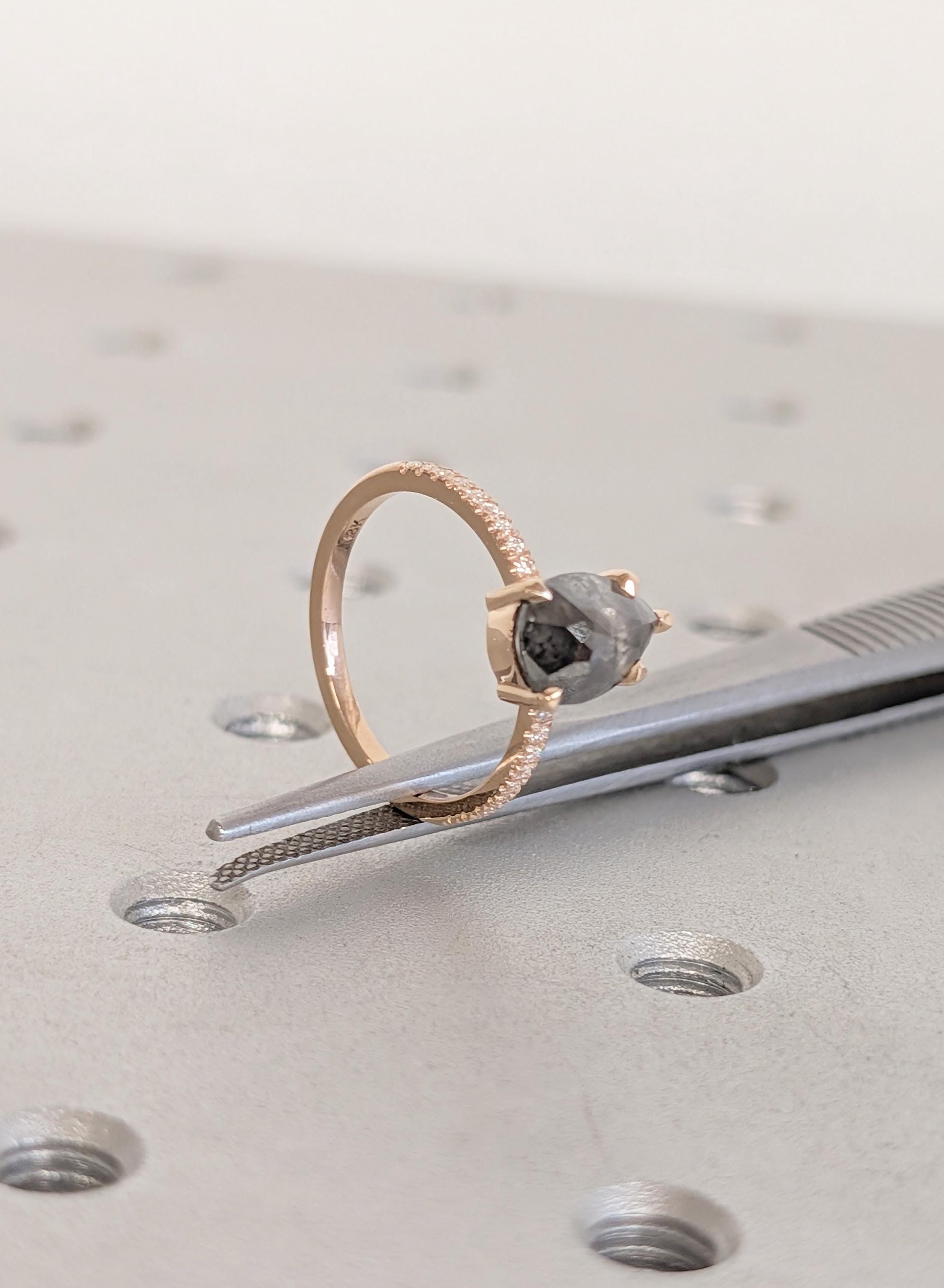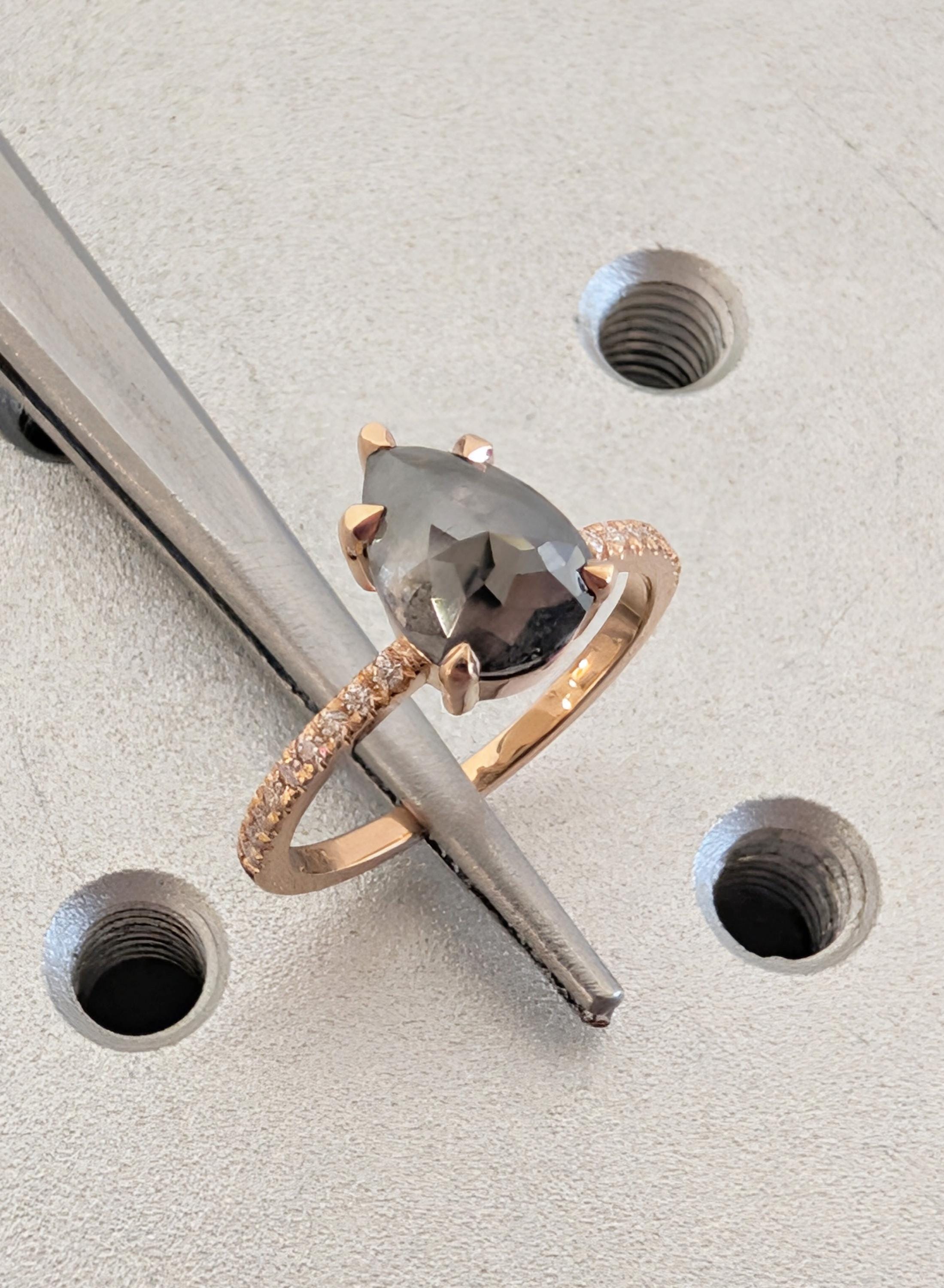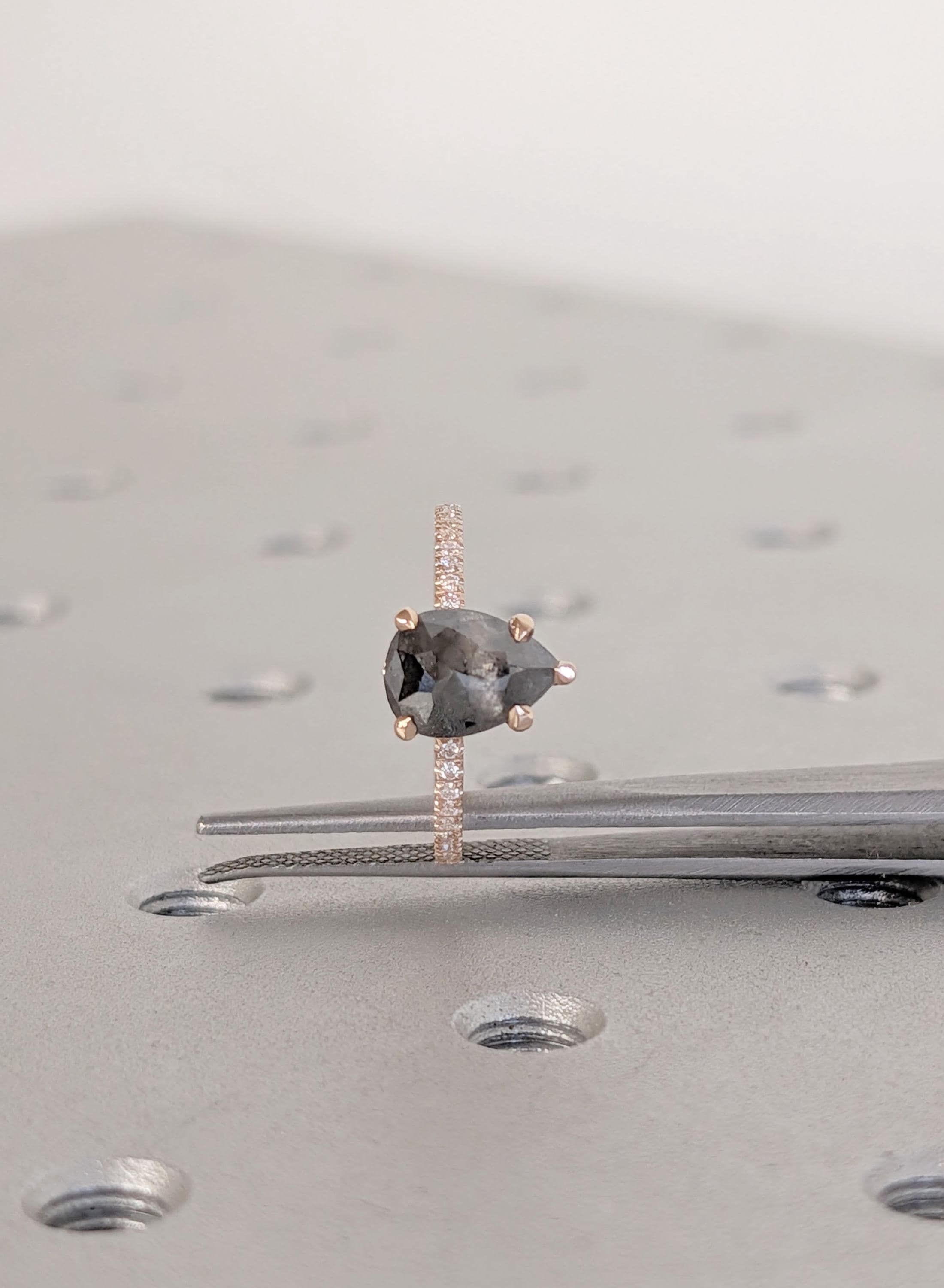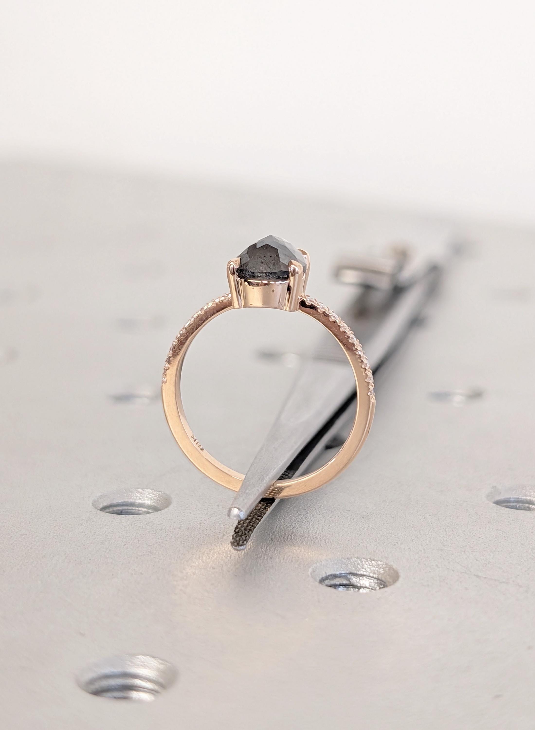 18K Rose Gold Engagement Ring, Pear Cut Salt and Pepper Diamond Ring, Dainty Pave Side Diamond Ring, Promise Ring, Woman's Ring, Custom Ring