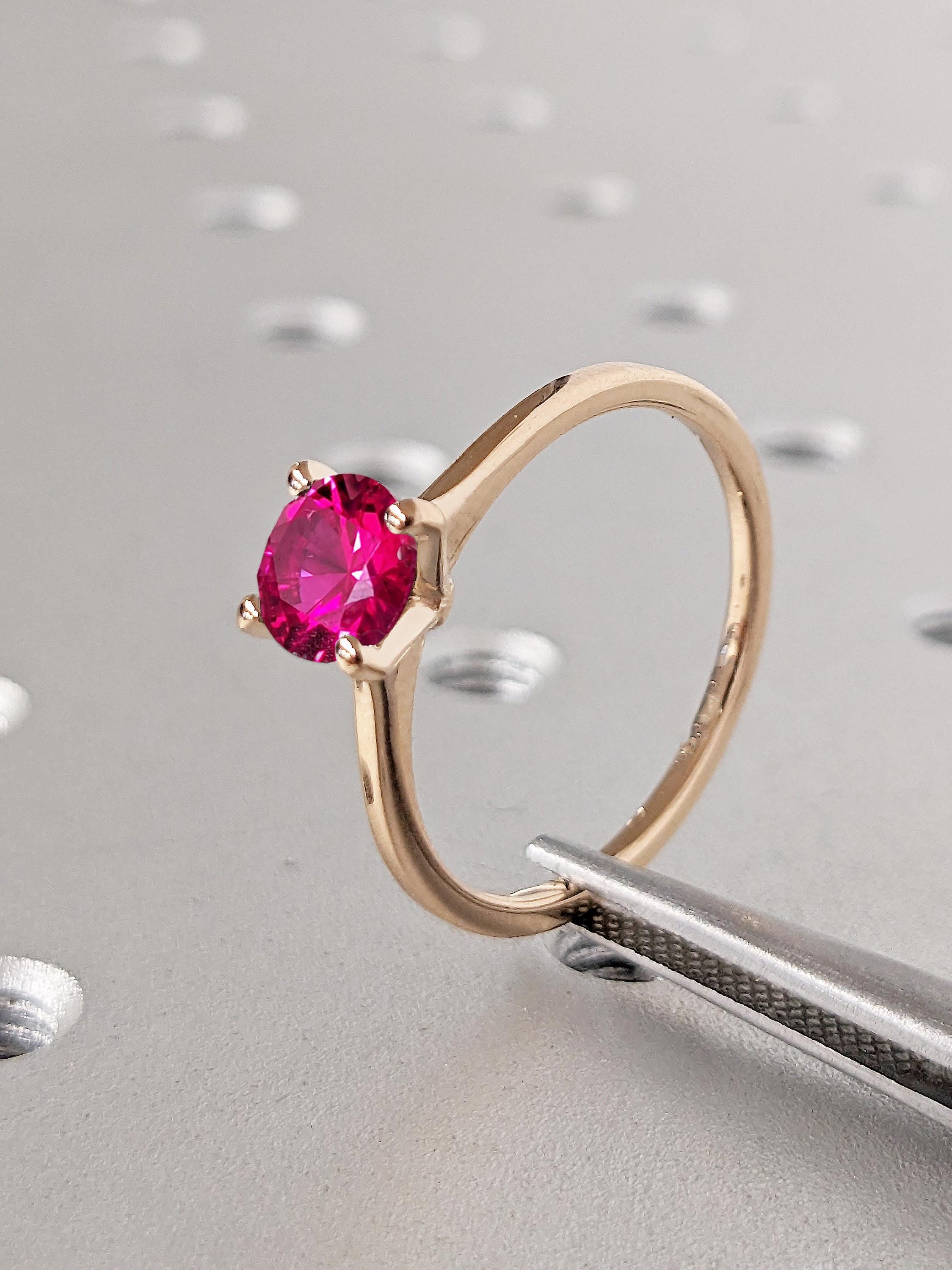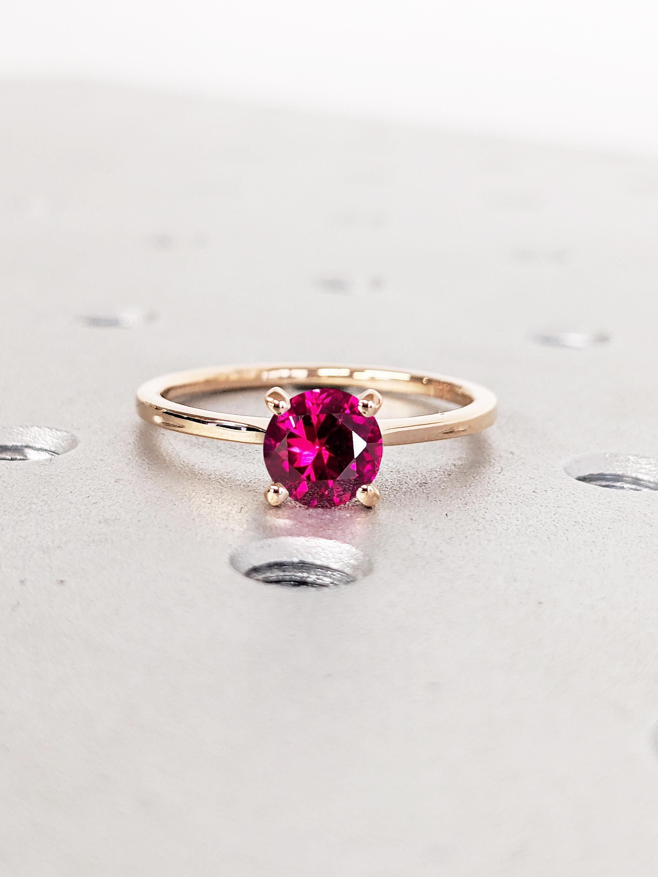 18k Rose Gold Solitaire Ring, Simple Ruby Ring, Minimalist Engagement Ring, Ruby Jewelry