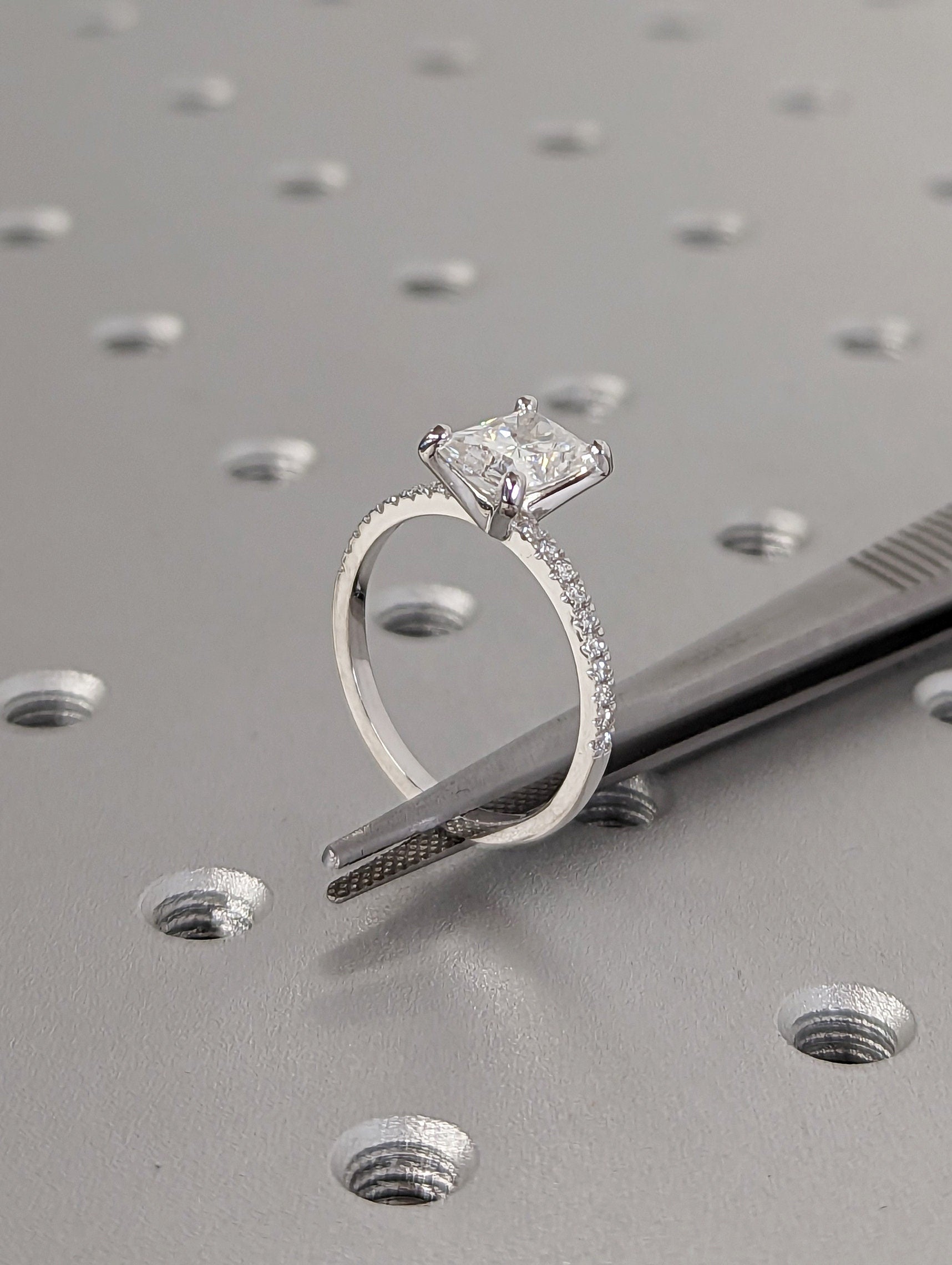 18K Solid Gold Engagement Ring /1.5CT Radiant Moissanite Diamond Wedding Ring/Moissanite Engagement Ring/Stack Ring/Promise ring/White gold