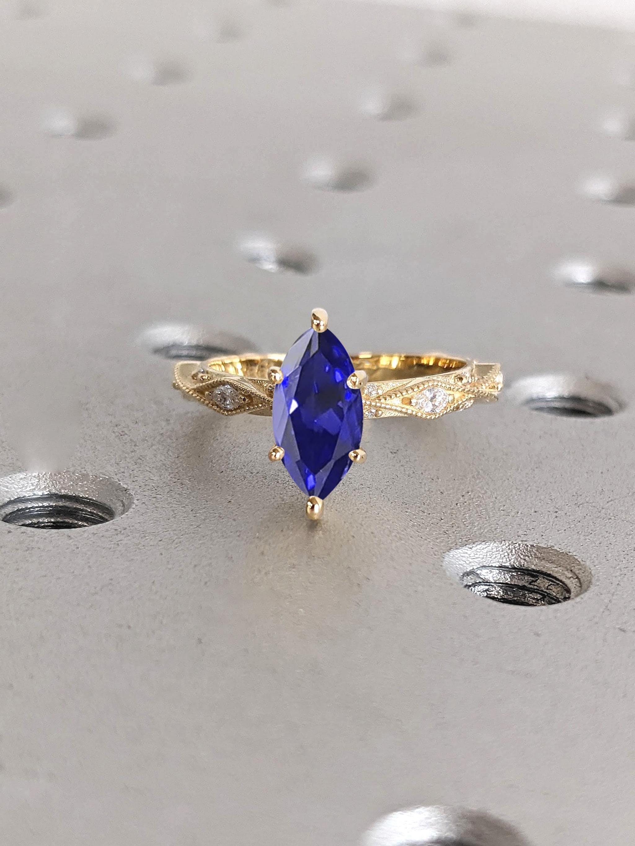 18k Solid Gold Sapphire Ring | Marquise cut Sapphire Engagement Ring | Blue Sapphire Ring | Women Sapphire Jewelry | Sapphire Promise Ring