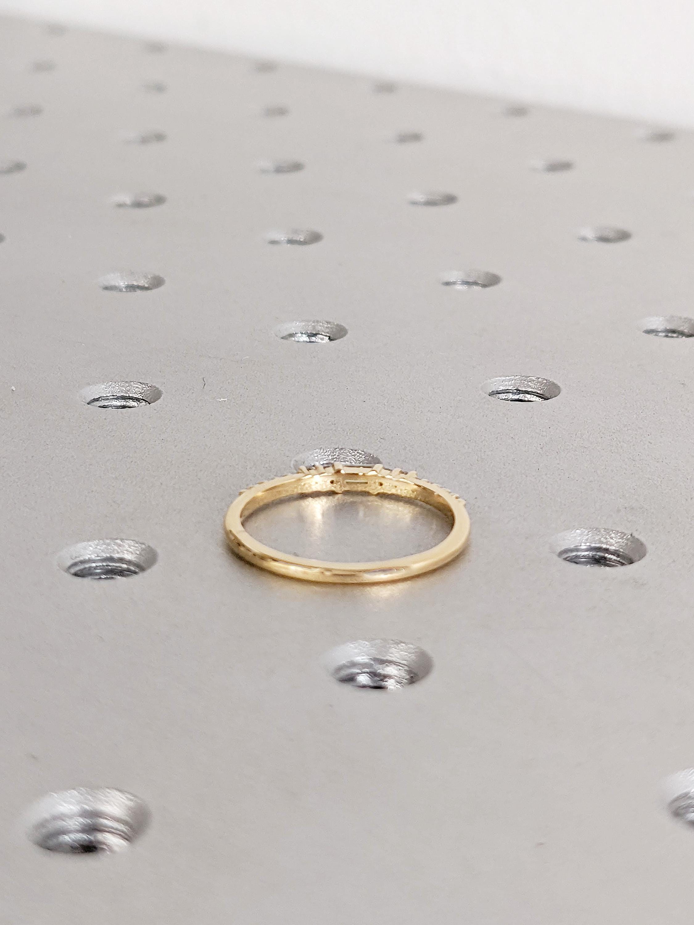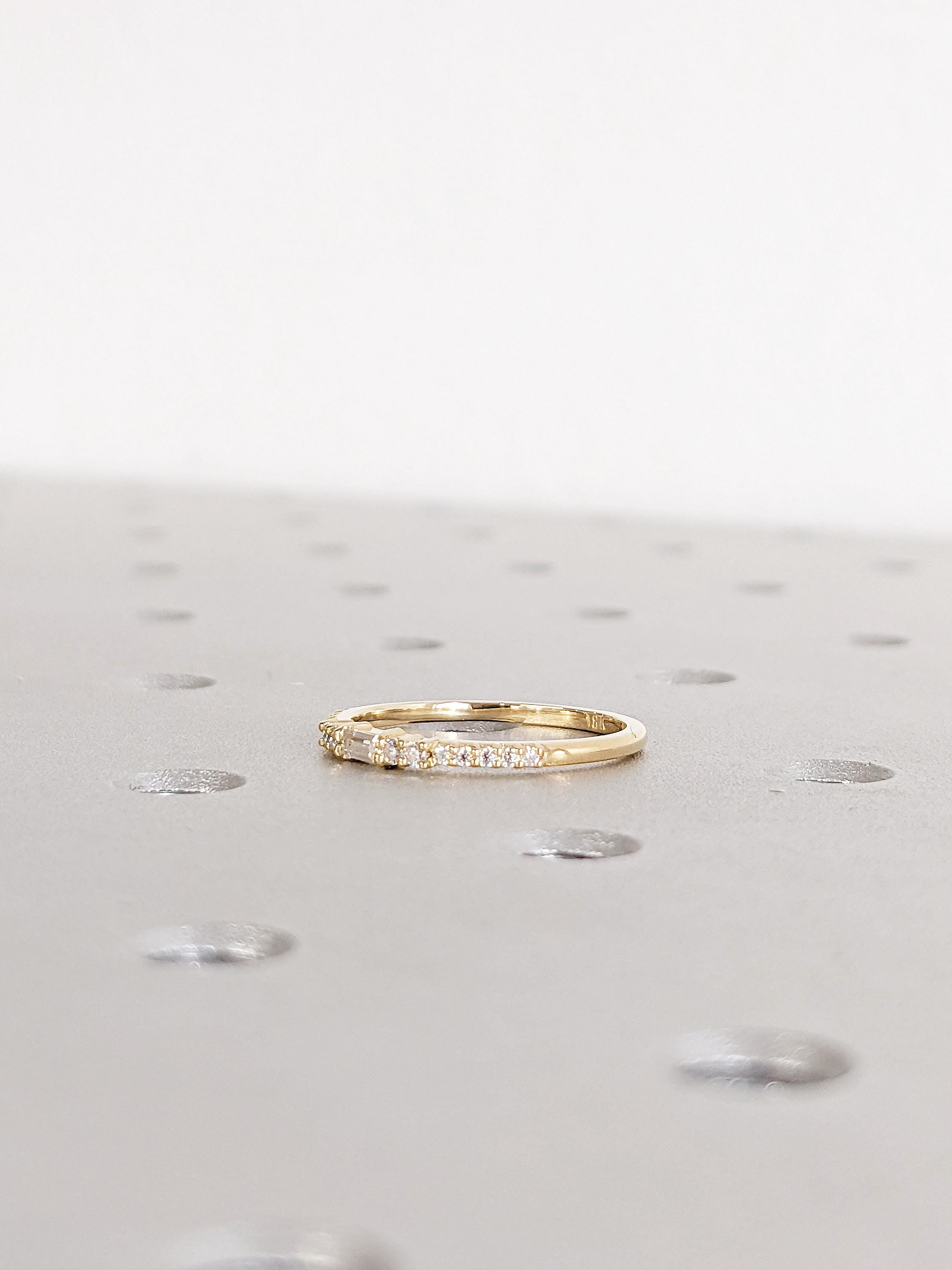 18K Yellow Gold Matching Ring | Dainty Diamond Wedding Band | Baguette and Round Prong Setting Diamond Band | Classic Stacking Bridal Ring