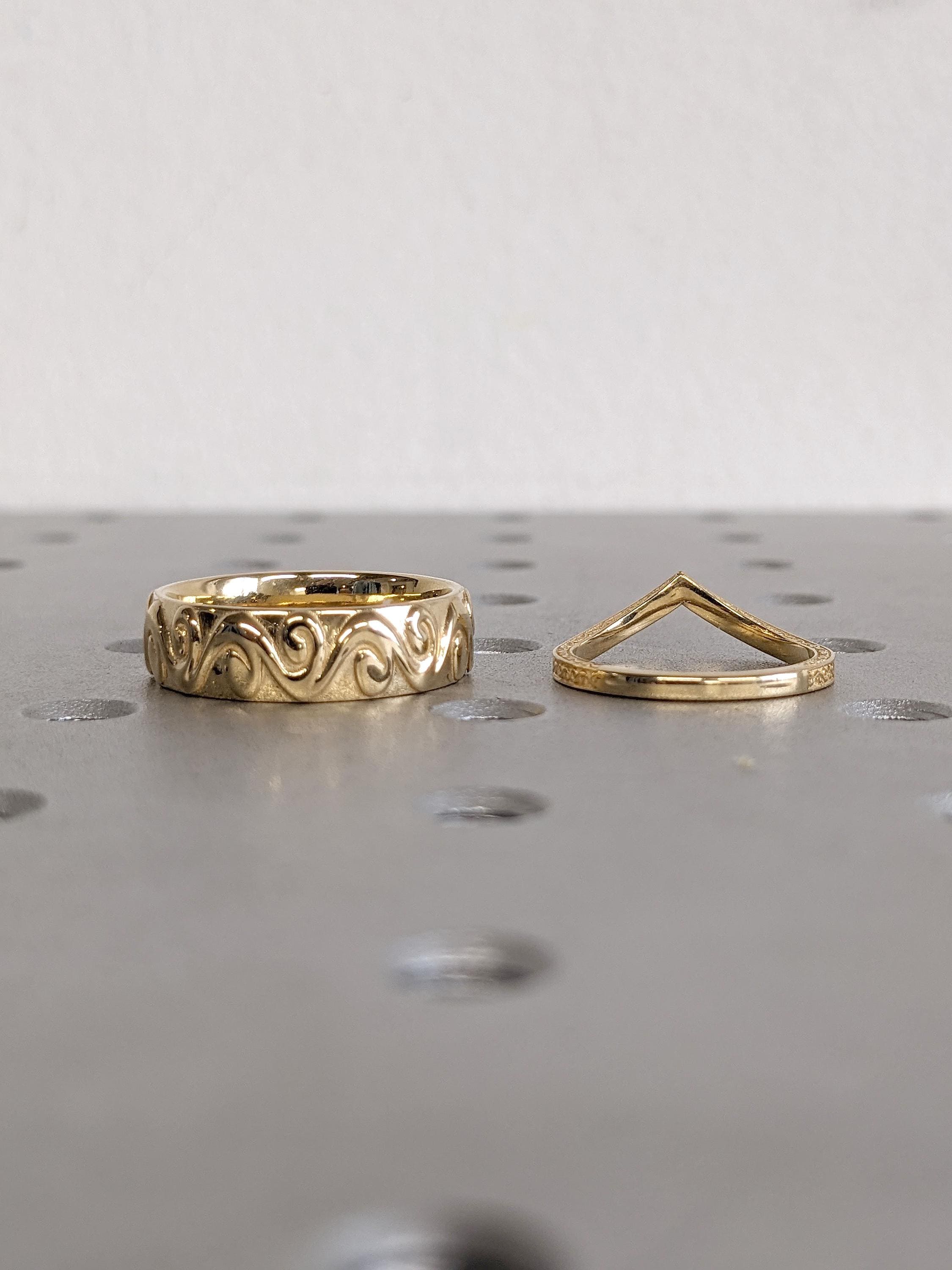 18k Yellow Gold Vintage Wedding Band | His and Hers Wedding Ring Set | Hand Engrave Filigree Couples Ring | Commitment Ring | 6mm Mens Band
