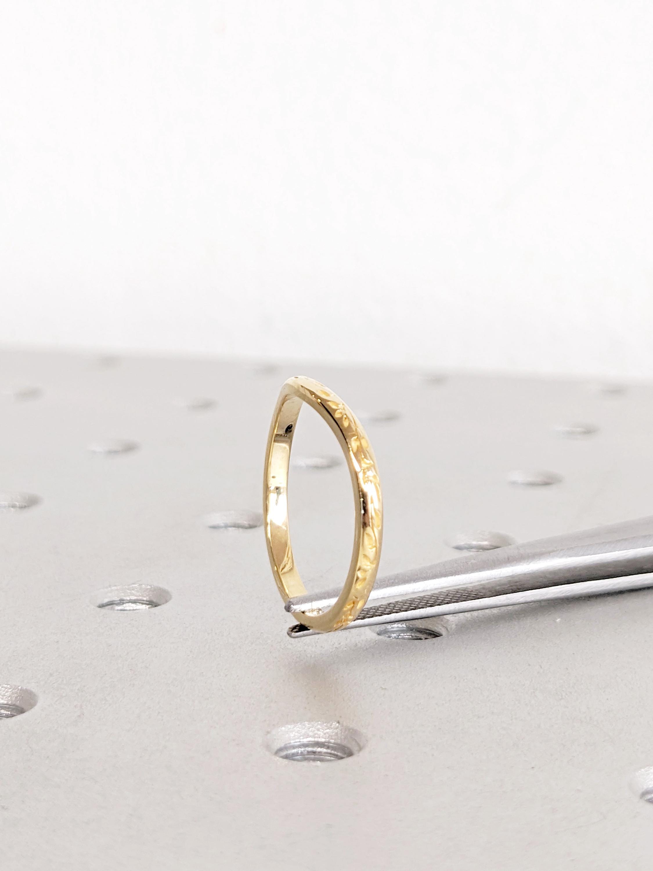 This Curved Wedding Band for Women has a graceful leaf motif design that symbolizes love, growth, and harmony. The gentle curve makes it a perfect stackable ring to pair with engagement rings or wear alone. A beautiful wedding band, promise ring, or anniversary gift for her; elegant, meaningful, and timeless.
