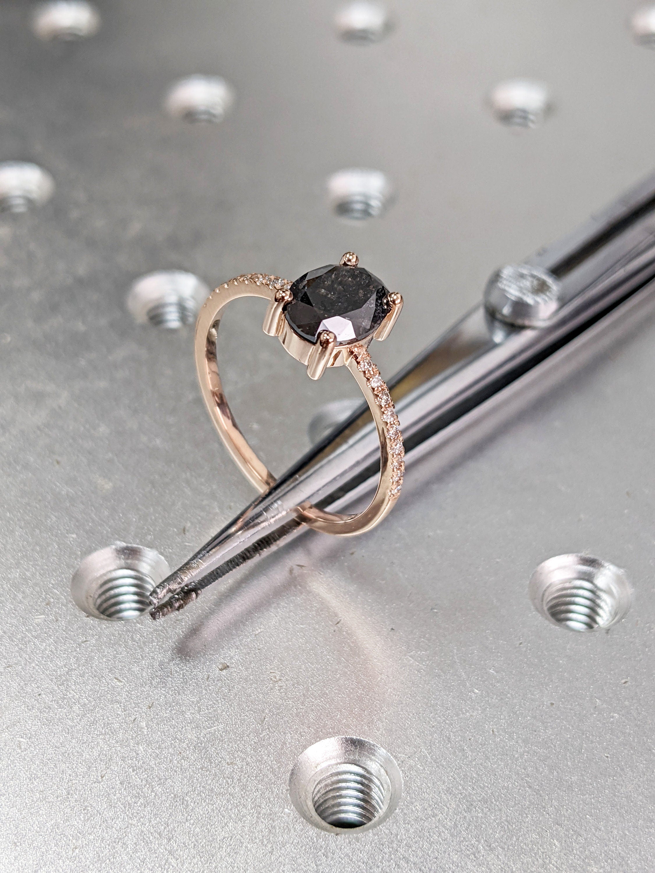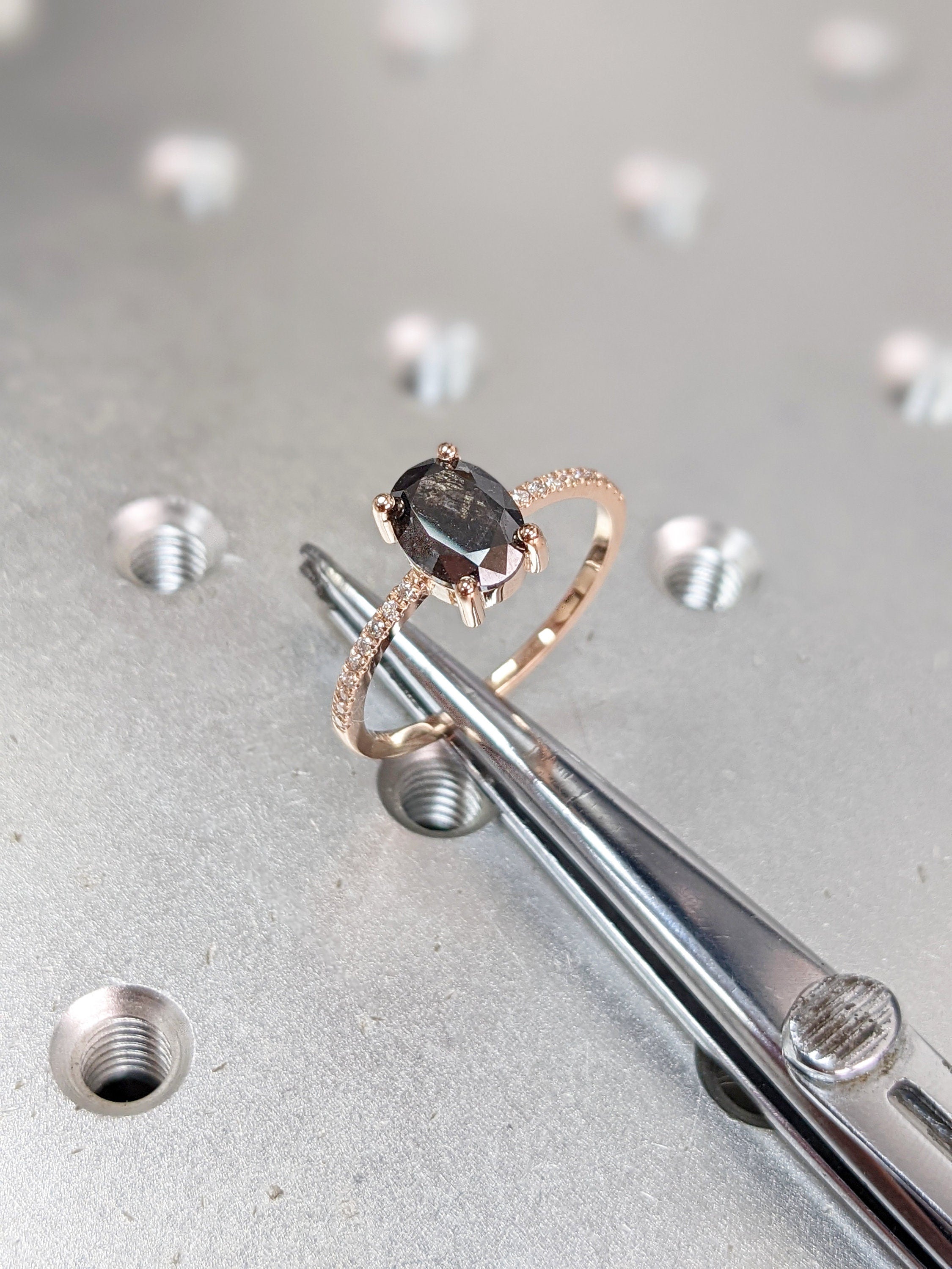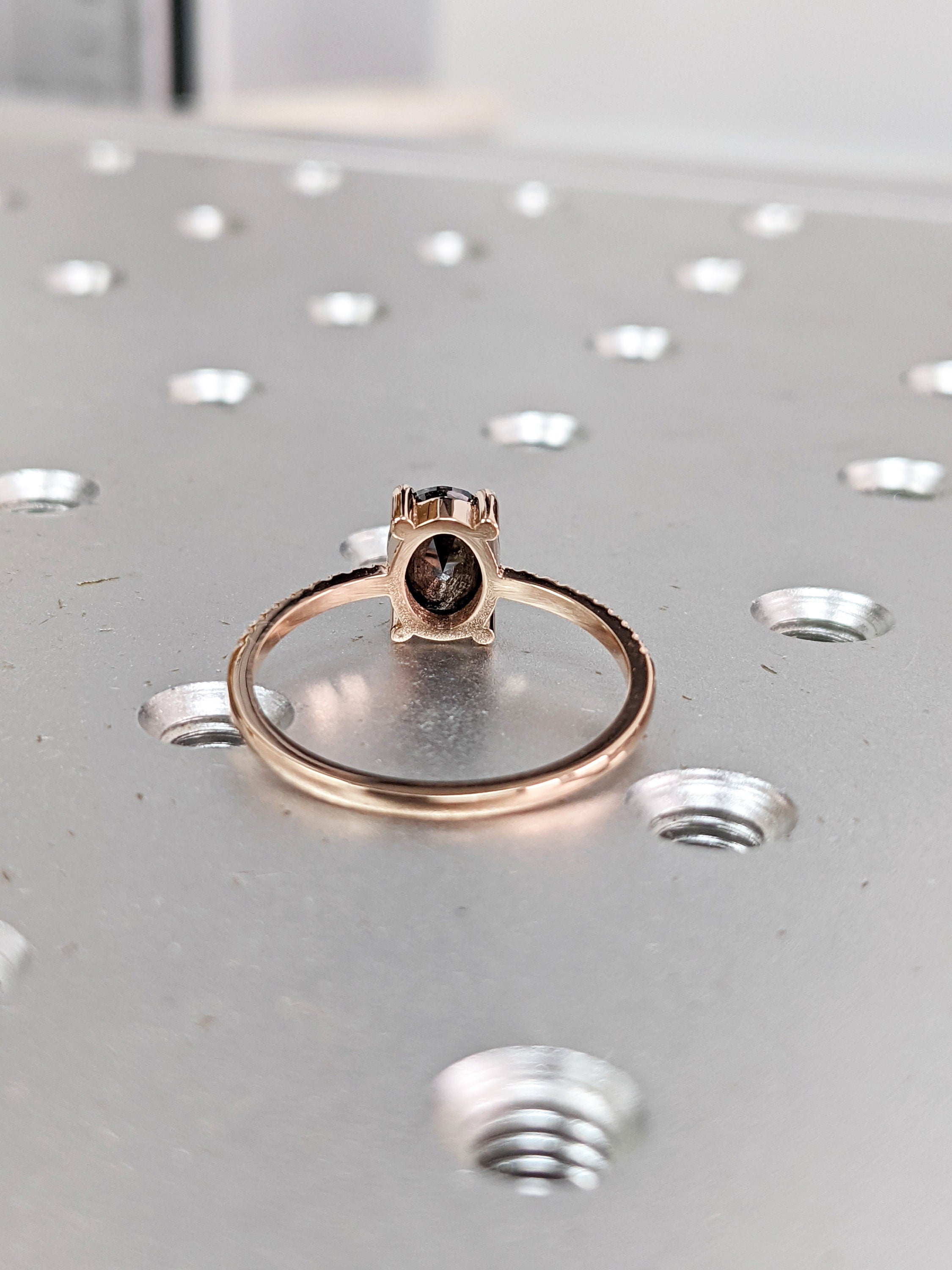 1920's Raw Salt and Pepper Diamond, Oval Diamond Ring, Unique Engagement Bridal Set, Black, Gray Oval, 14k Yellow, Rose, or White Gold