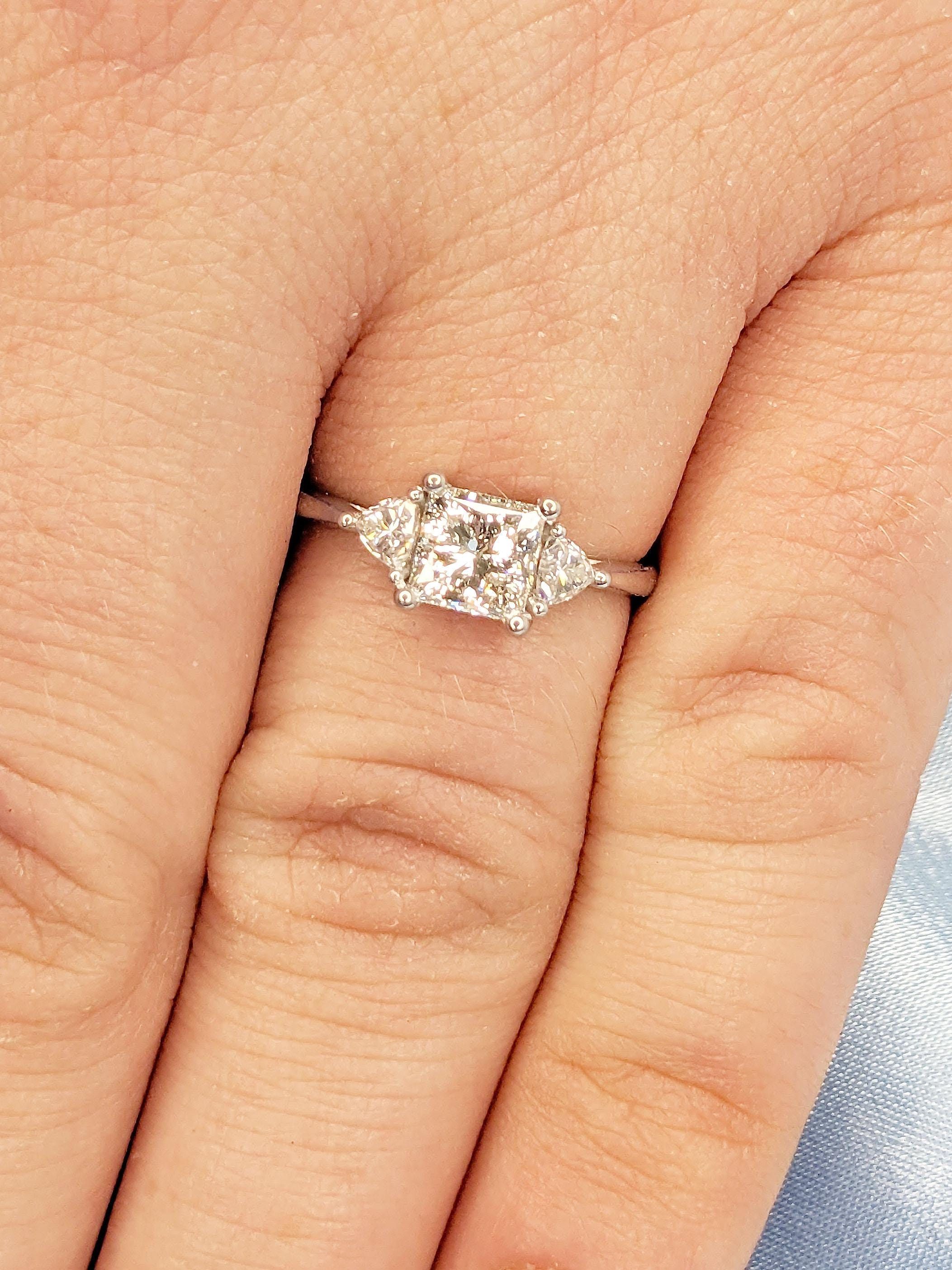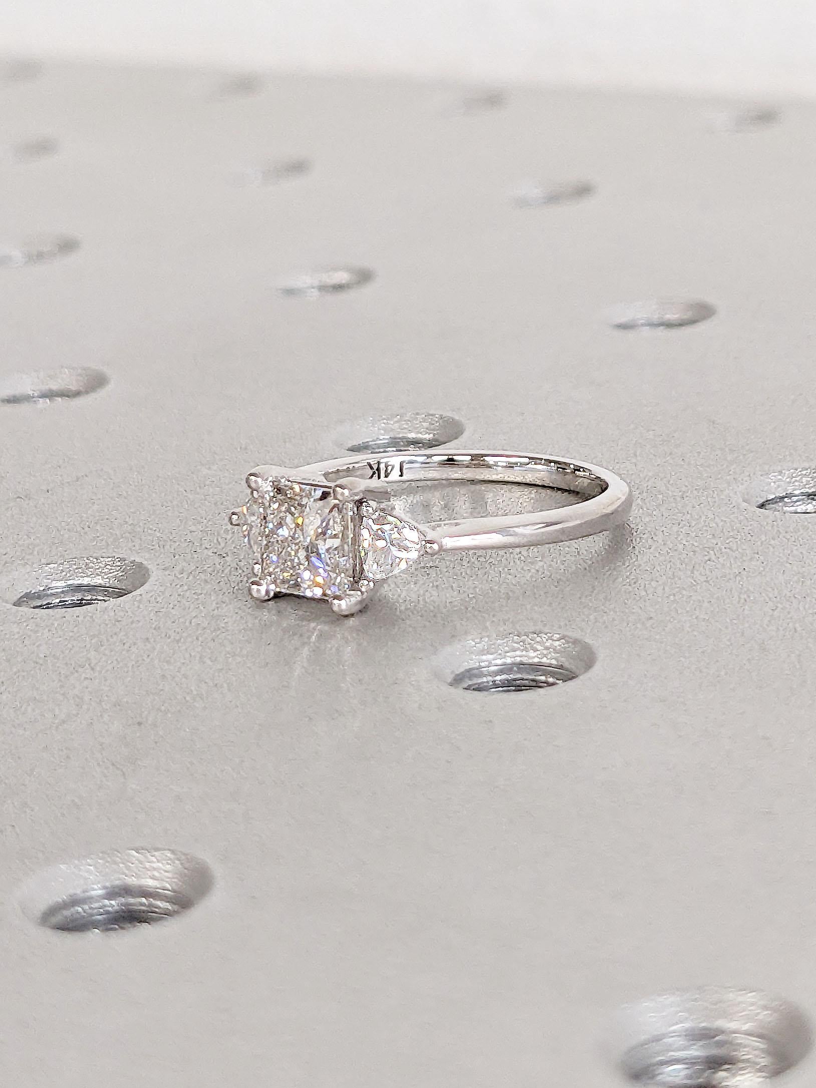 1ct, 1.5ct Certified Man Made Diamond Princess cut Engagement Ring | 14k Solid White Gold Ring | Unique Triangle Diamond and Moissanite Ring