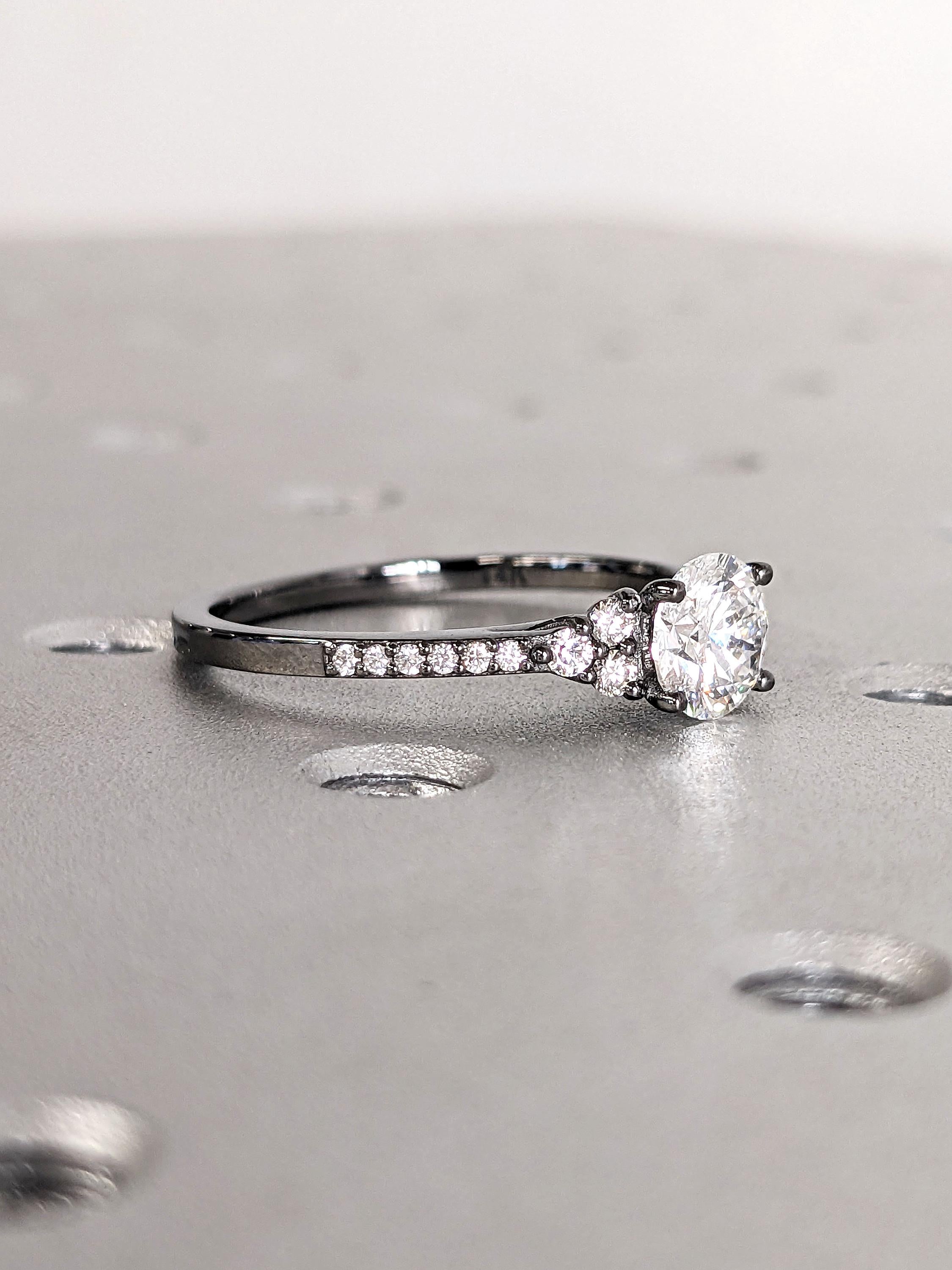 1ct, 2 Carat Round cut VVS Moissanite and Diamond Engagement Ring | 14k Solid Gold Thin Engagement Ring | Black Gold Gothic Wedding Ring