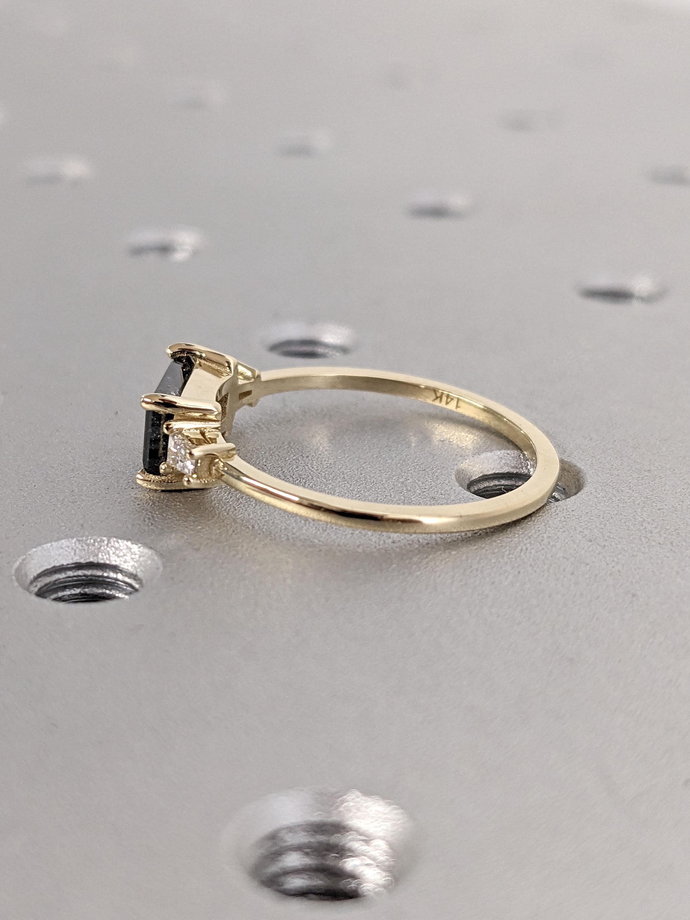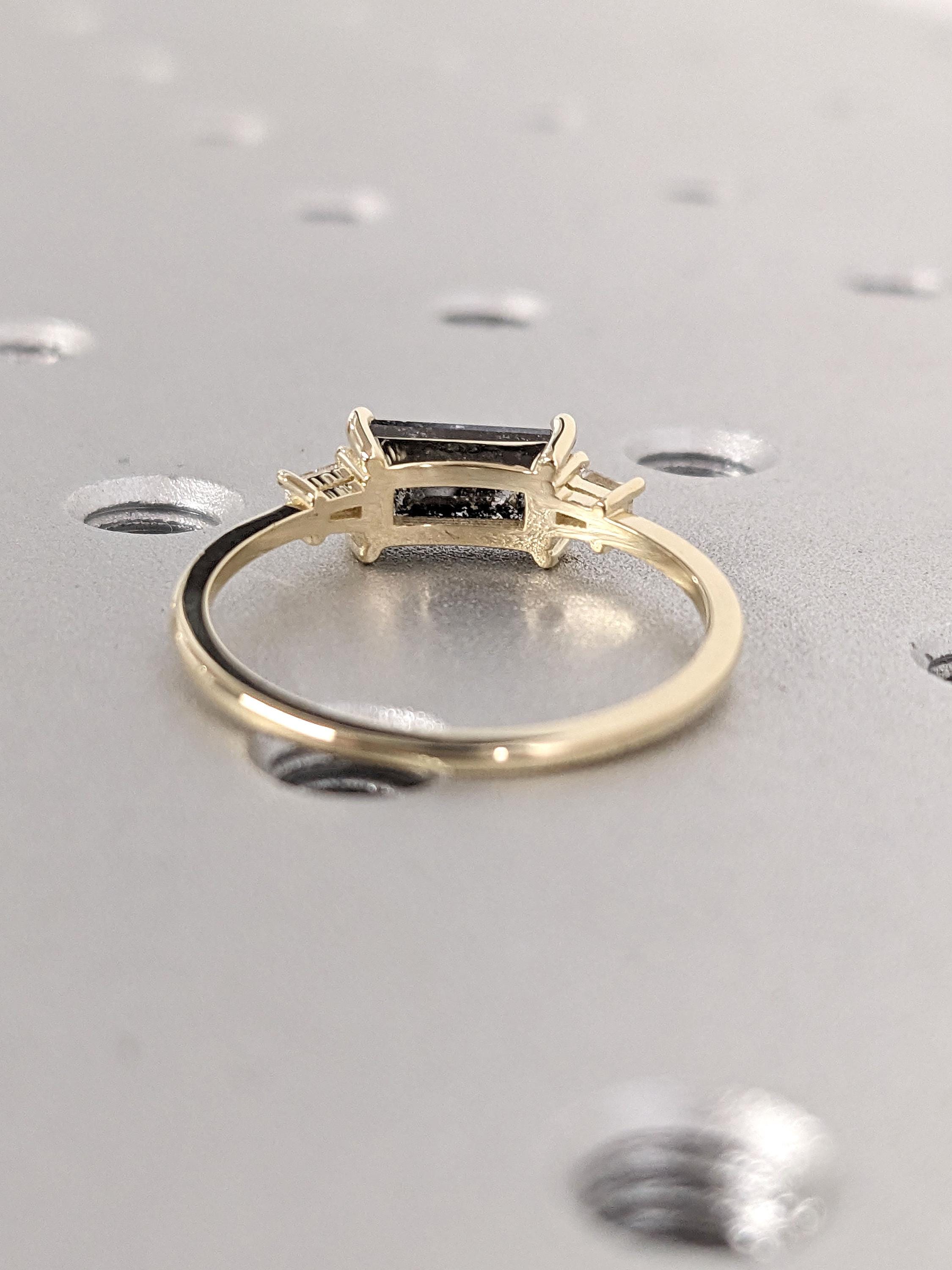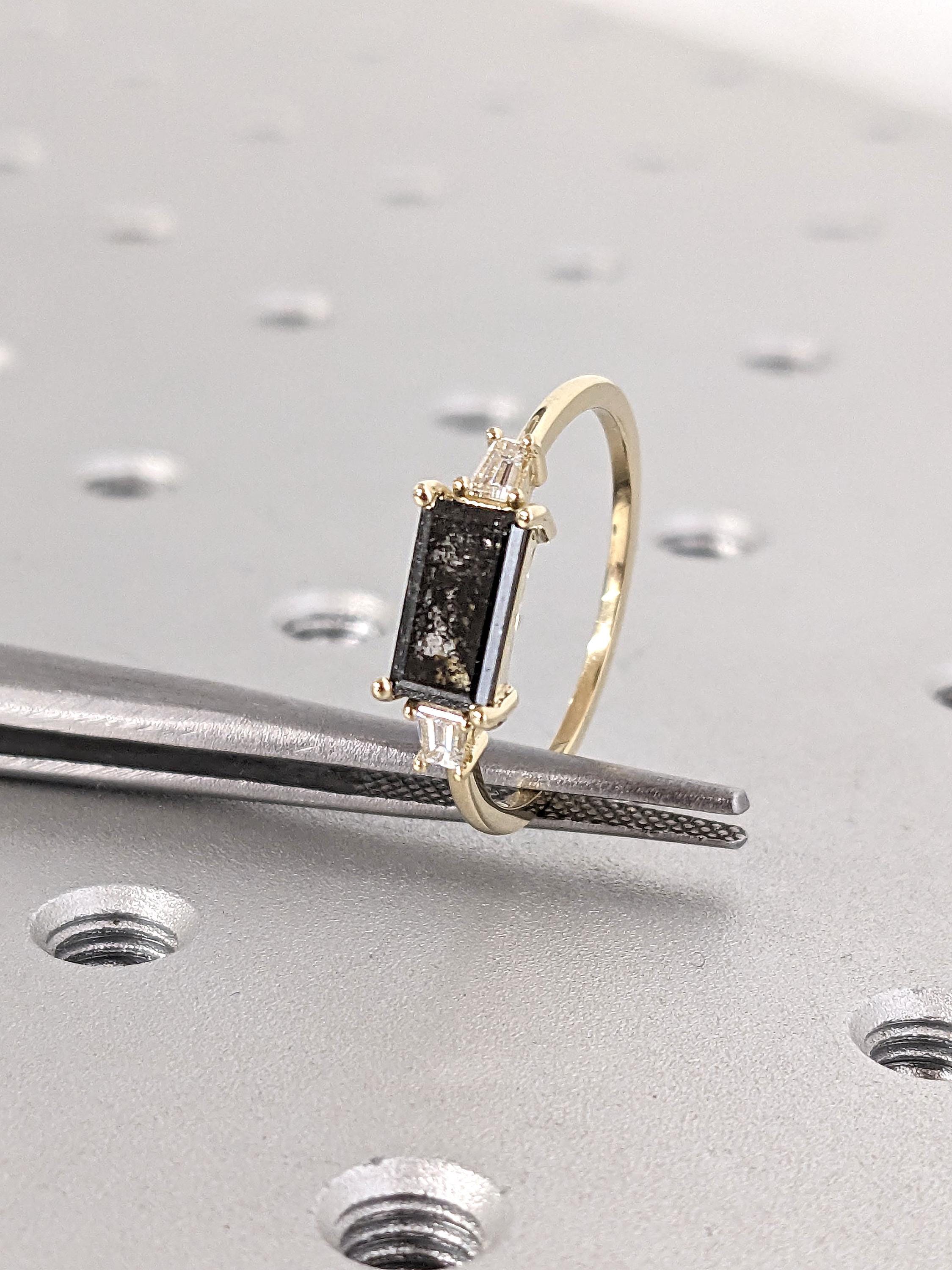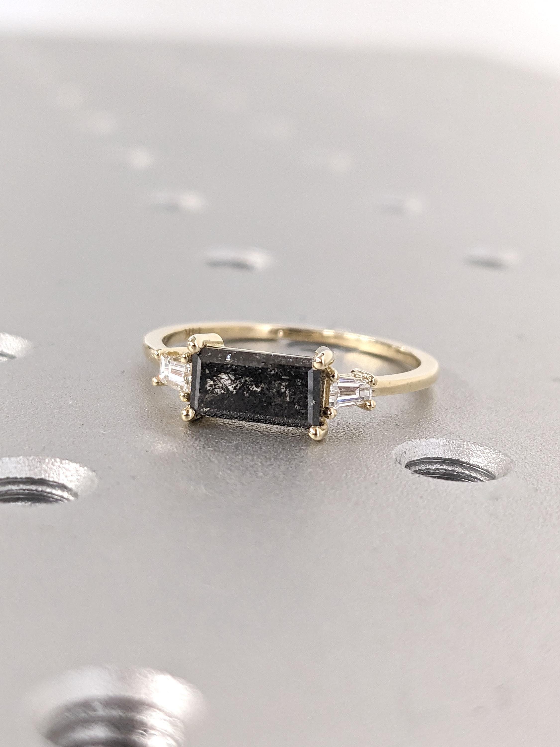 1ct-2ct Natural Black Diamond Delicate Engagement Ring | 14k Gold Baguette cut Rings for Women | Salt and Pepper Diamond Ring | Promise Ring