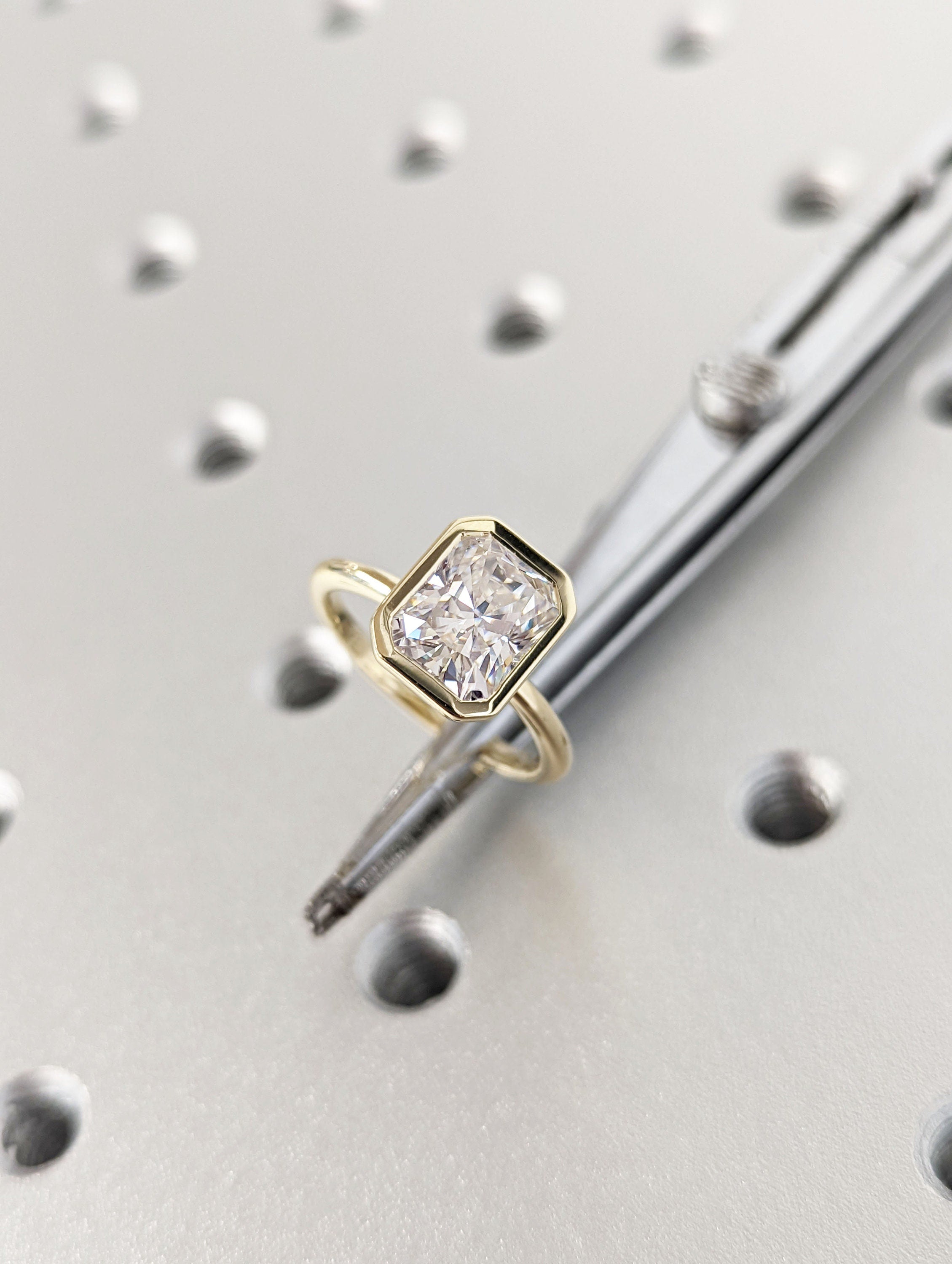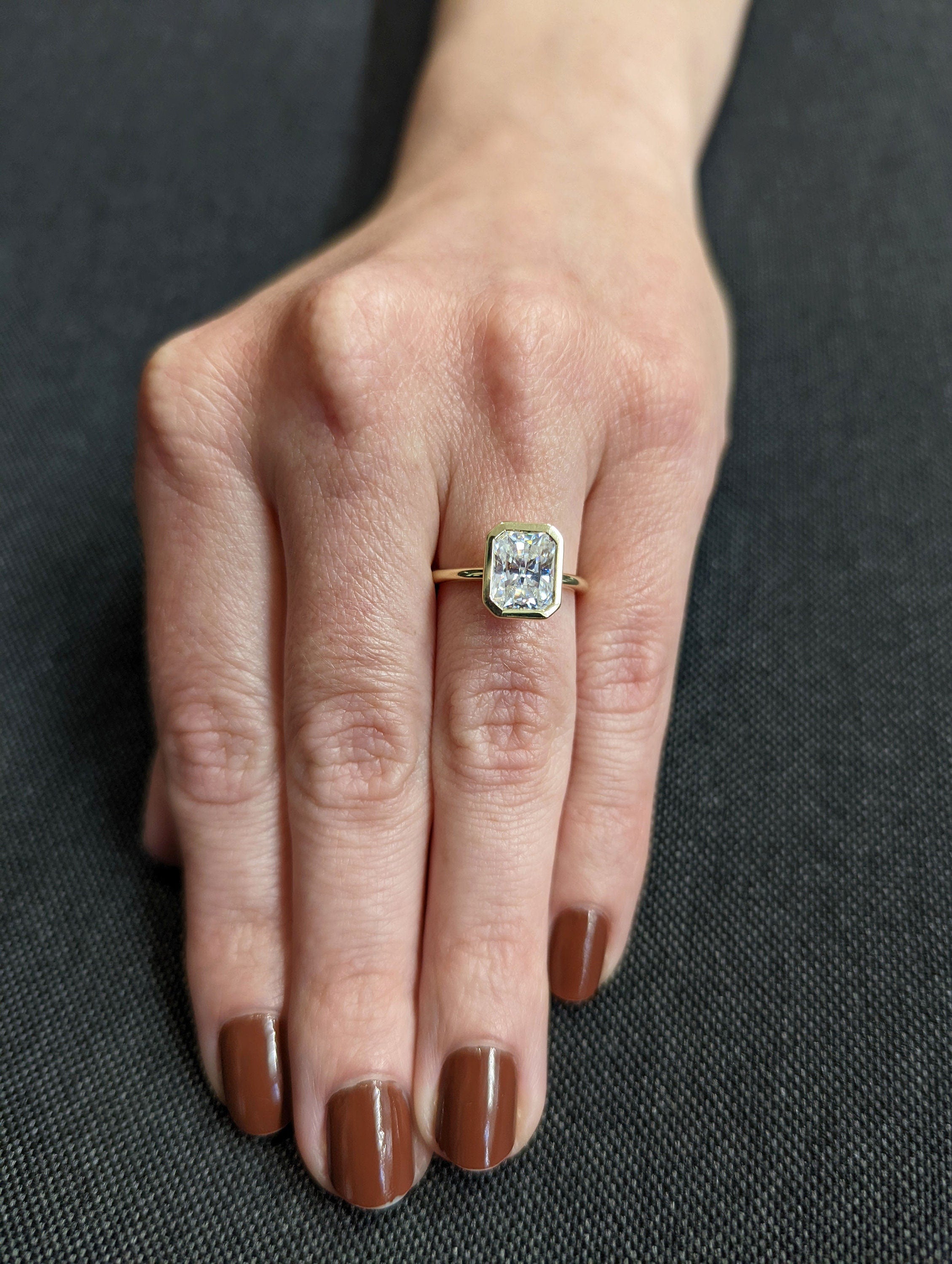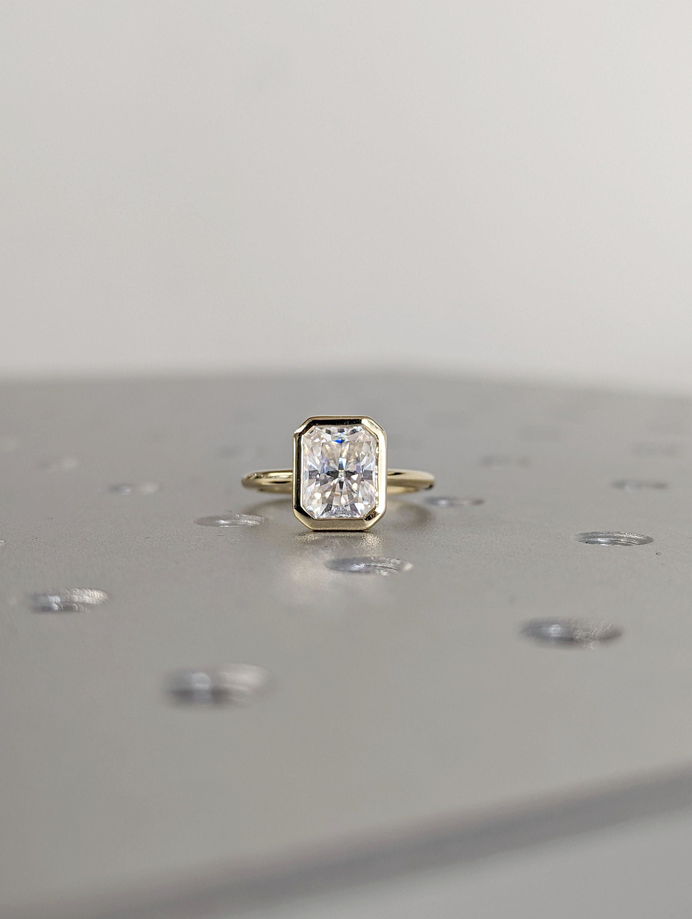 1ct, 2CT Radiant Cut Moissanite Solitaire Ring | 14K Yellow Gold Bezel Set Engagement Ring | Statement Ring | Anniversary Ring Gift For Her