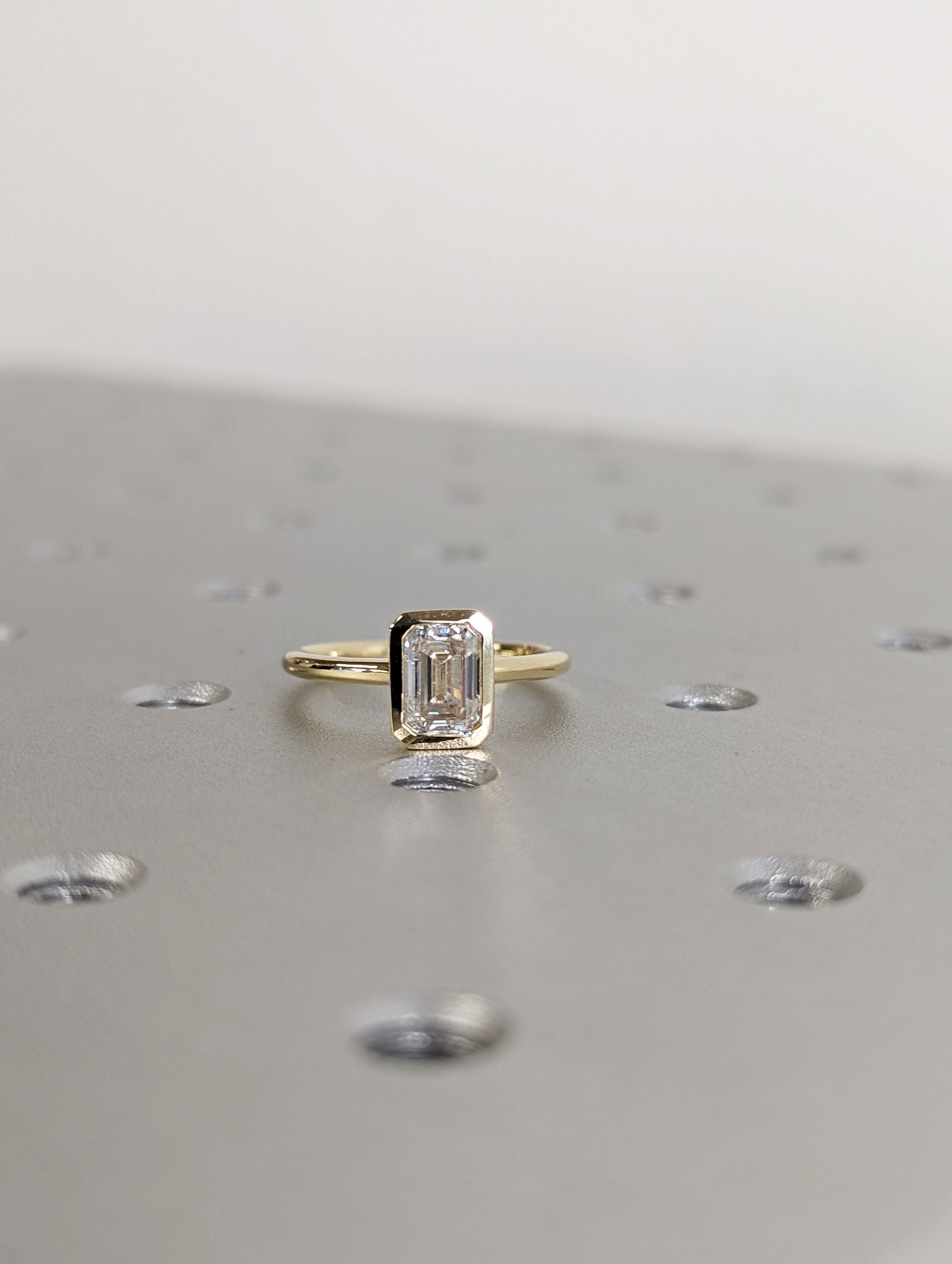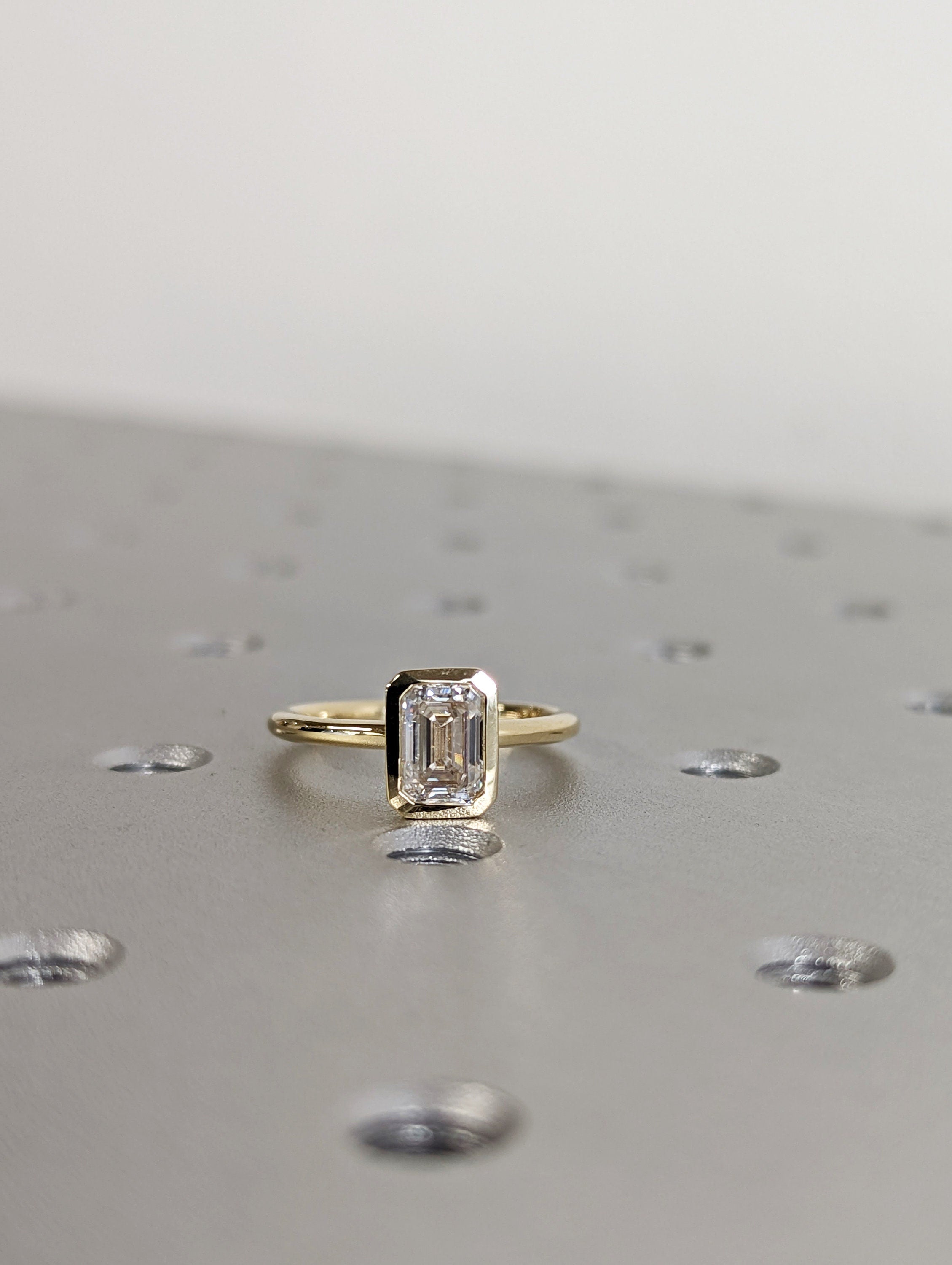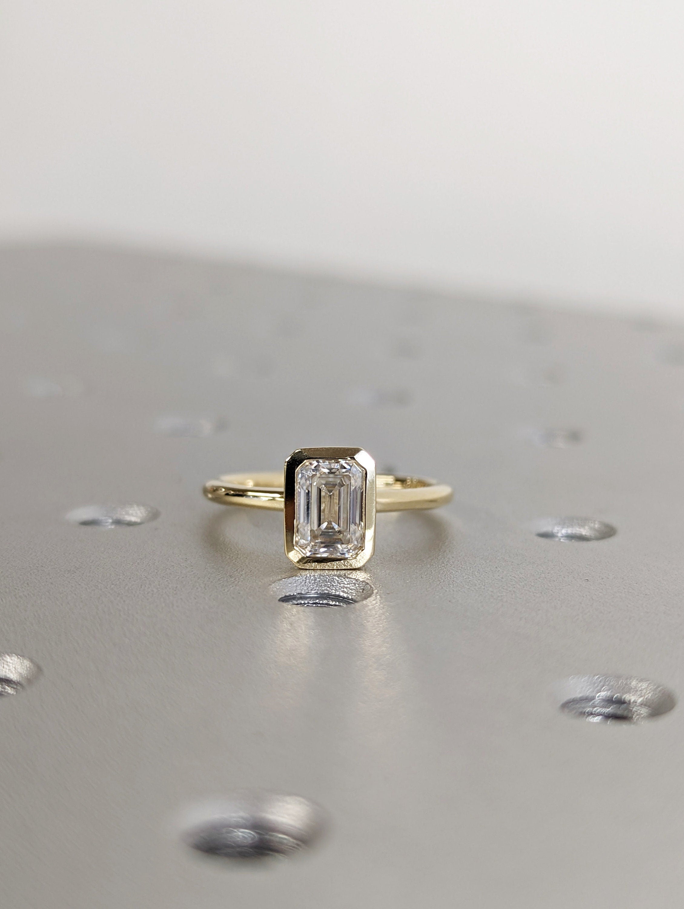 1CT Emerald Cut Moissanite Solitaire Ring, 14K Yellow Gold Engagement Ring, Bezel Setting, Statement Ring, Gift For Her, Bridal Set