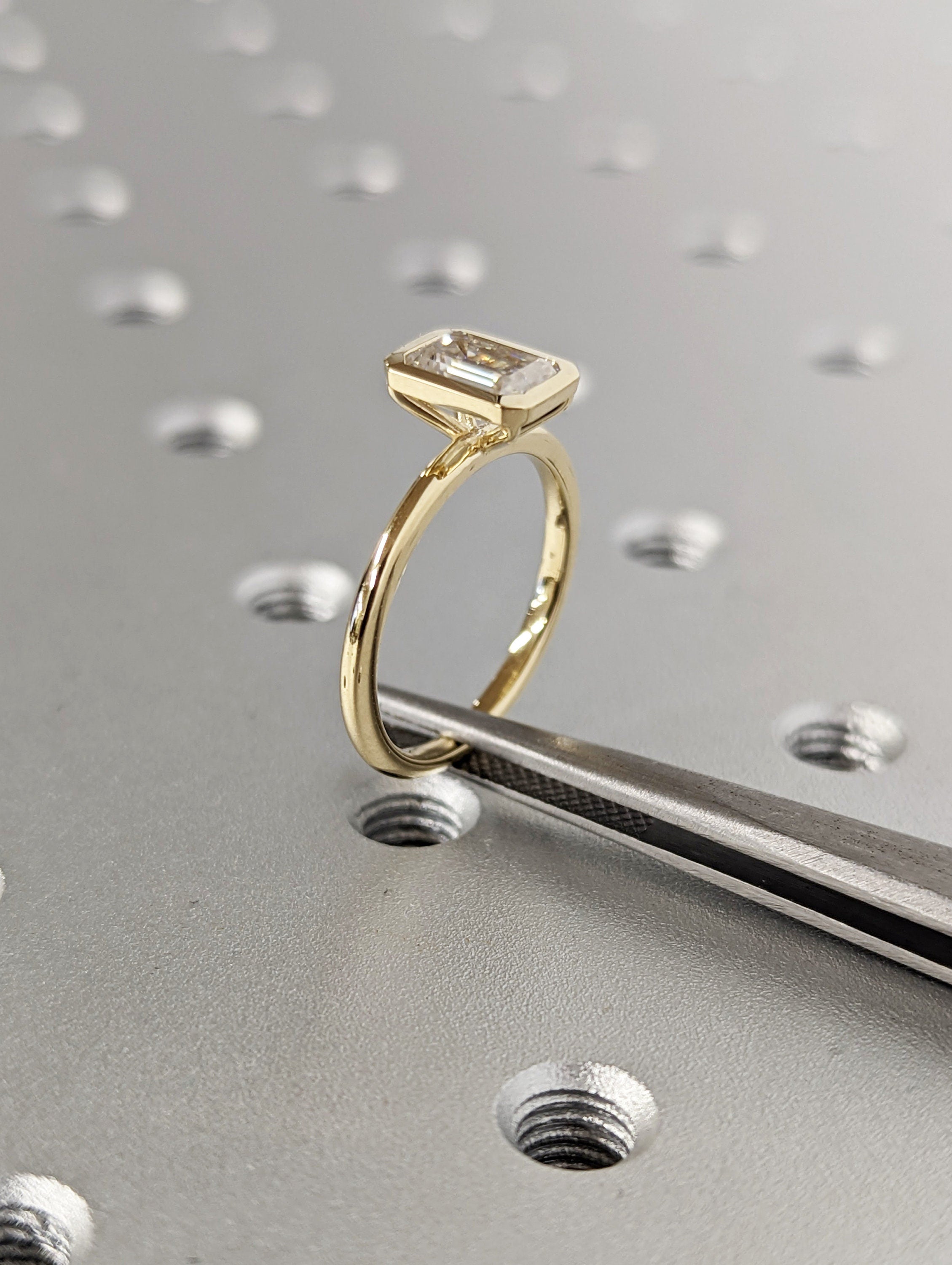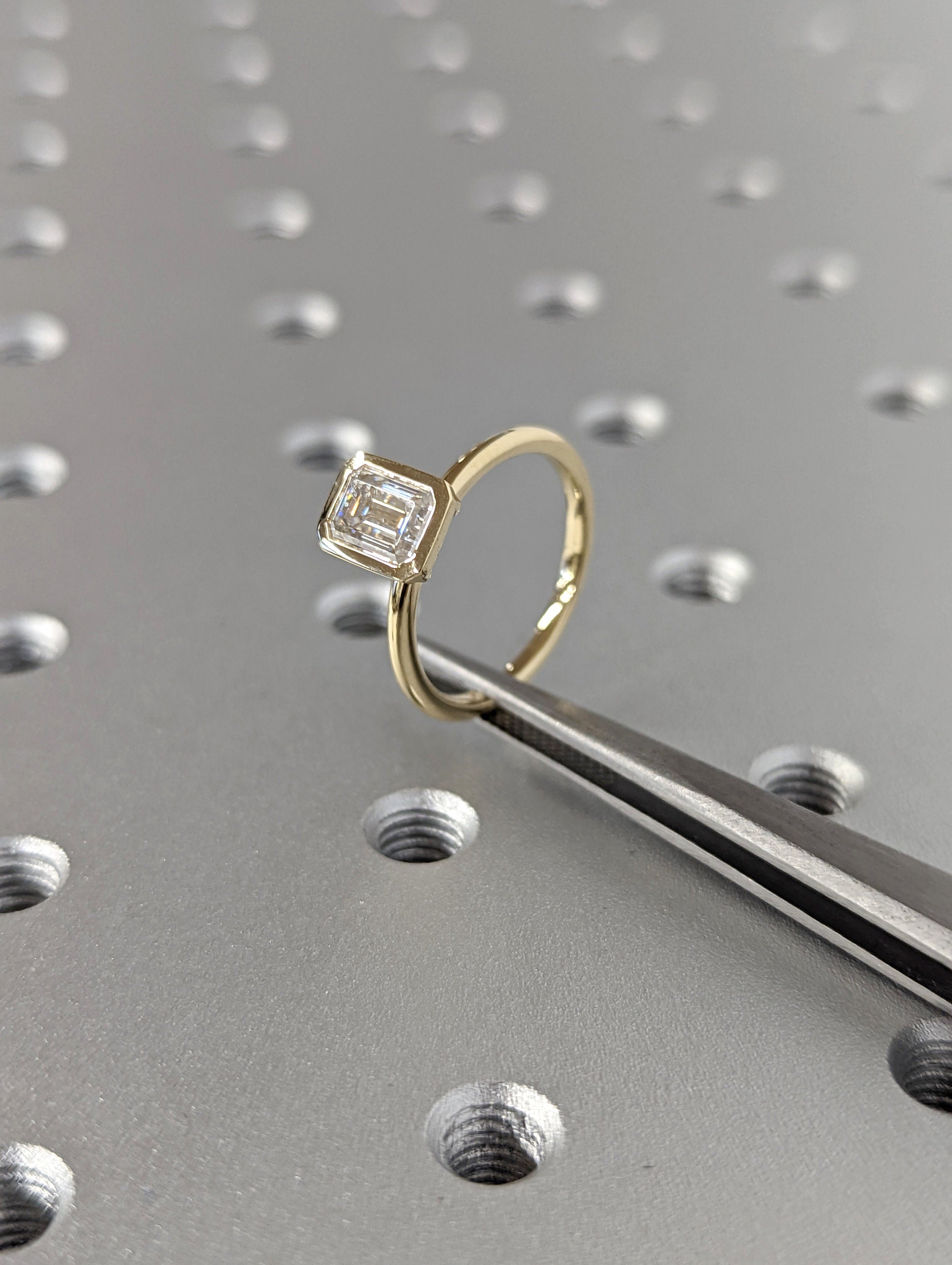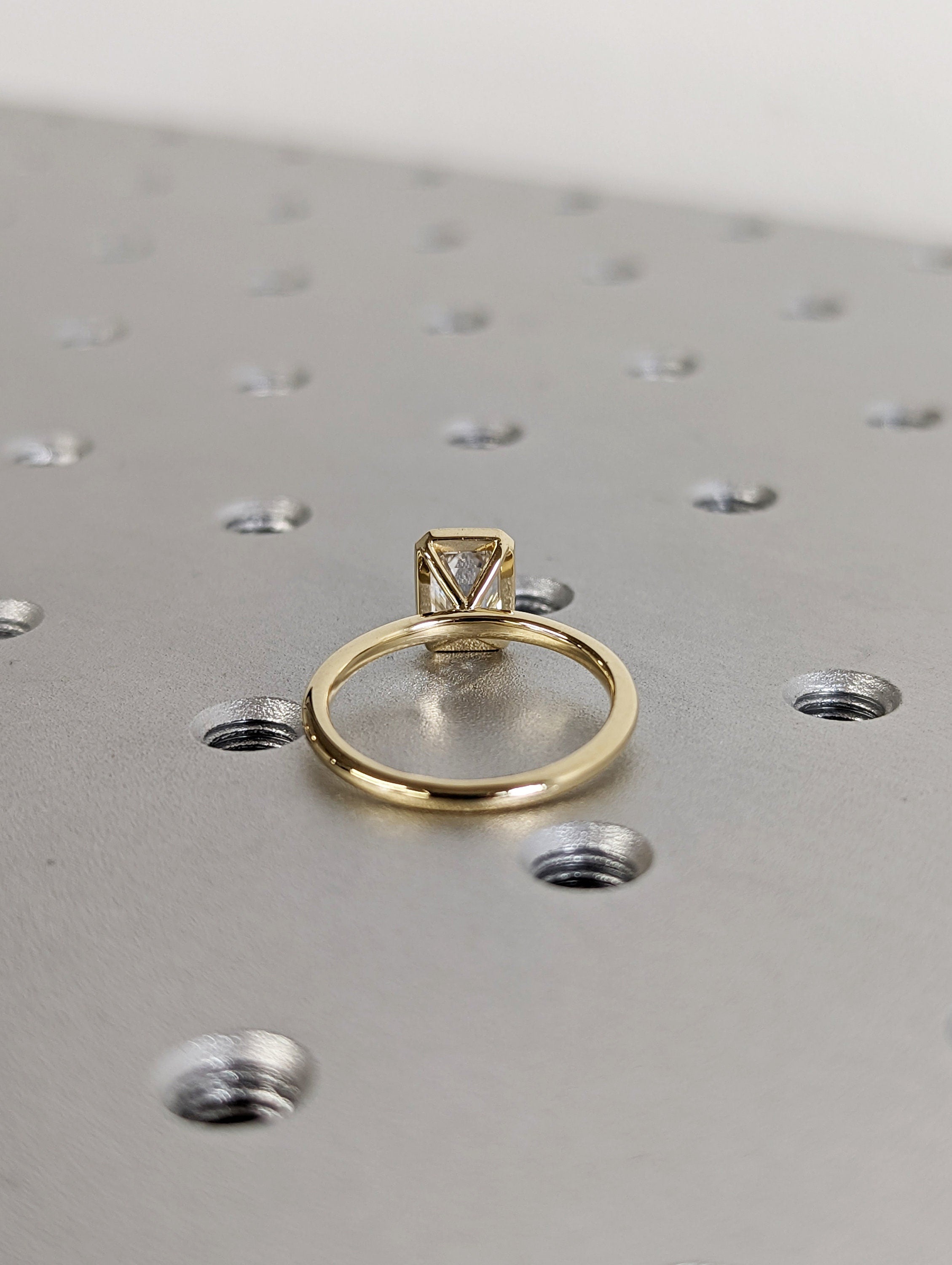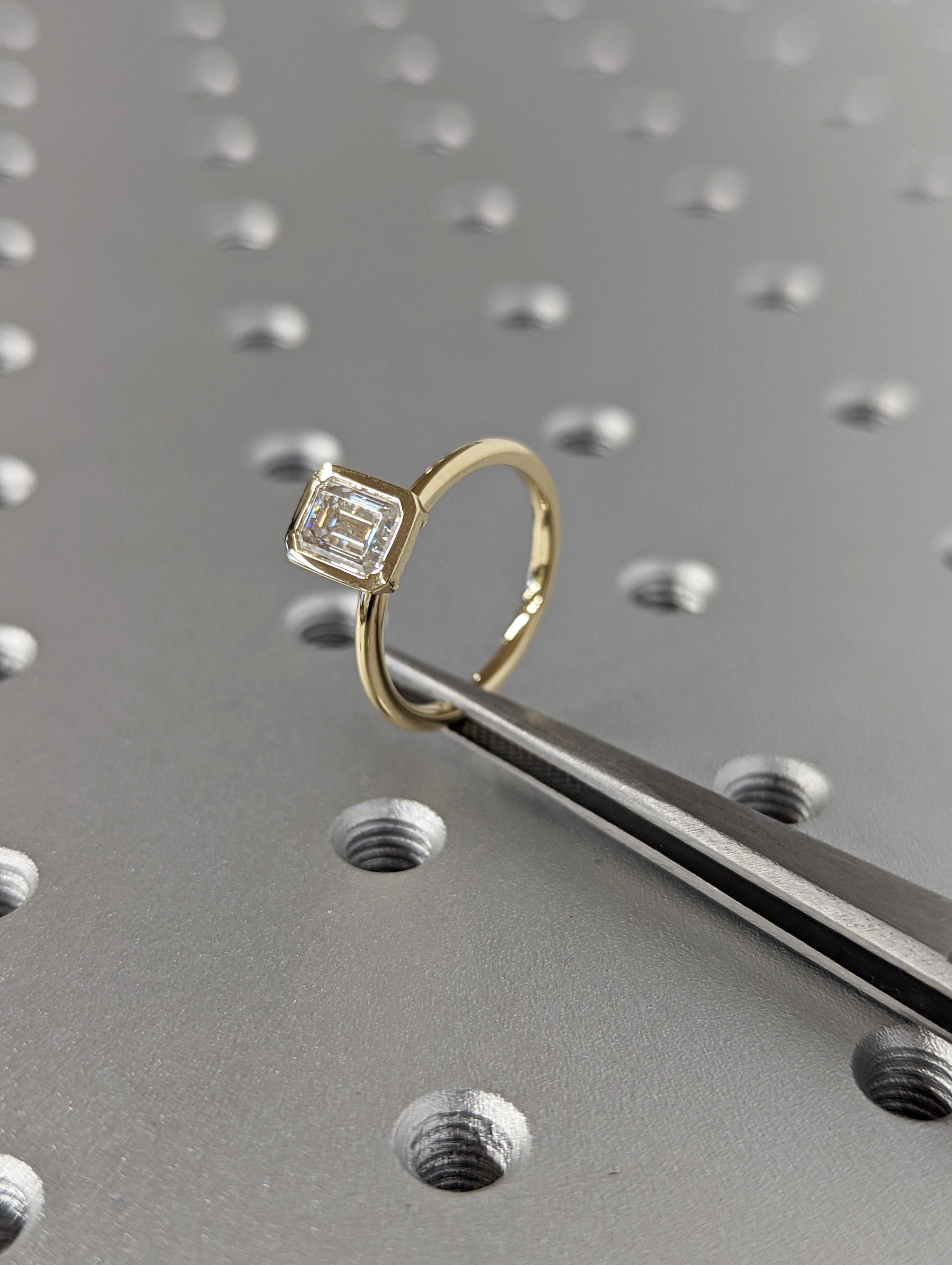 1CT Emerald Cut Moissanite Solitaire Ring, 14K Yellow Gold Engagement Ring, Bezel Setting, Statement Ring, Gift For Her, Bridal Set