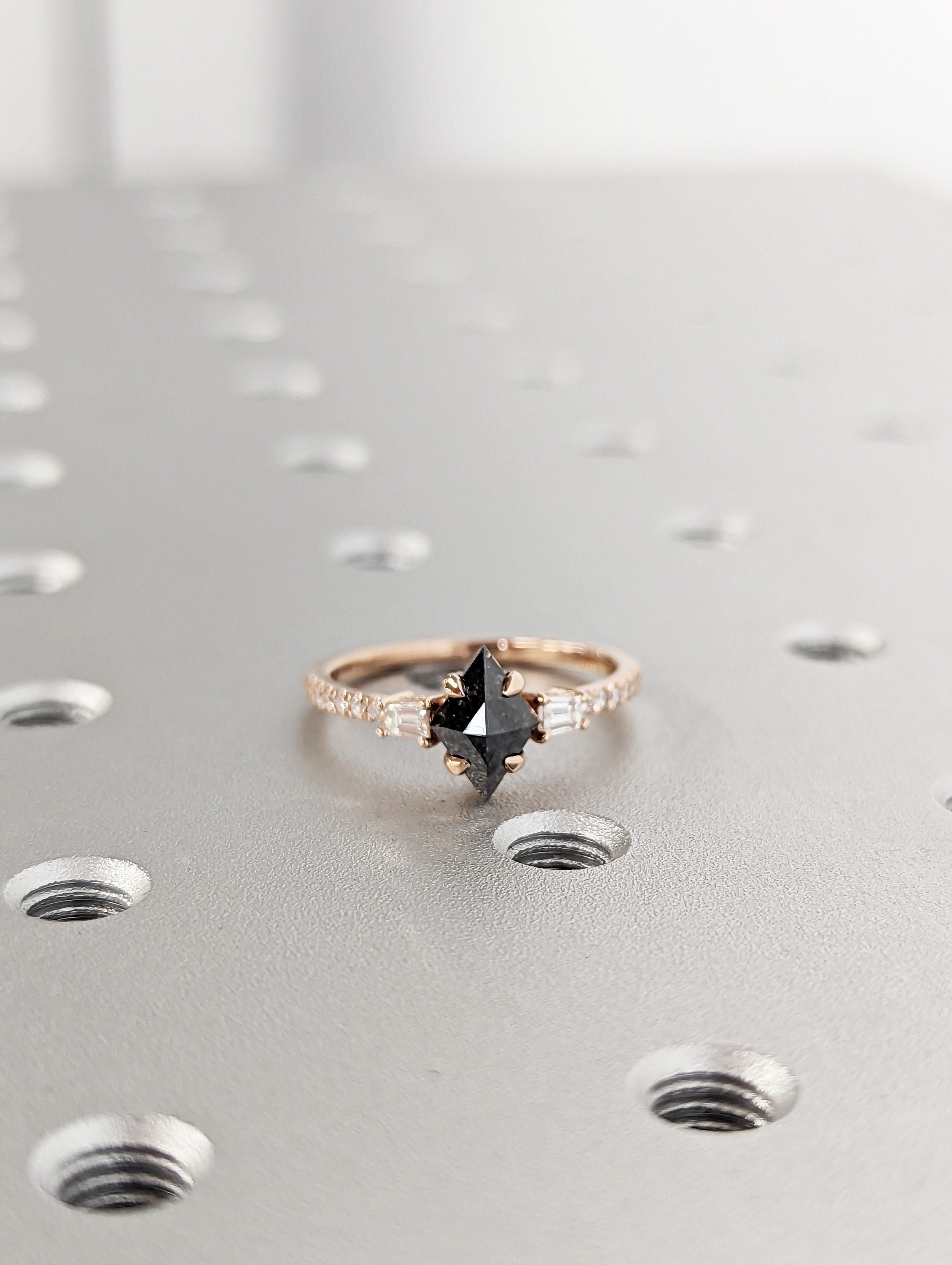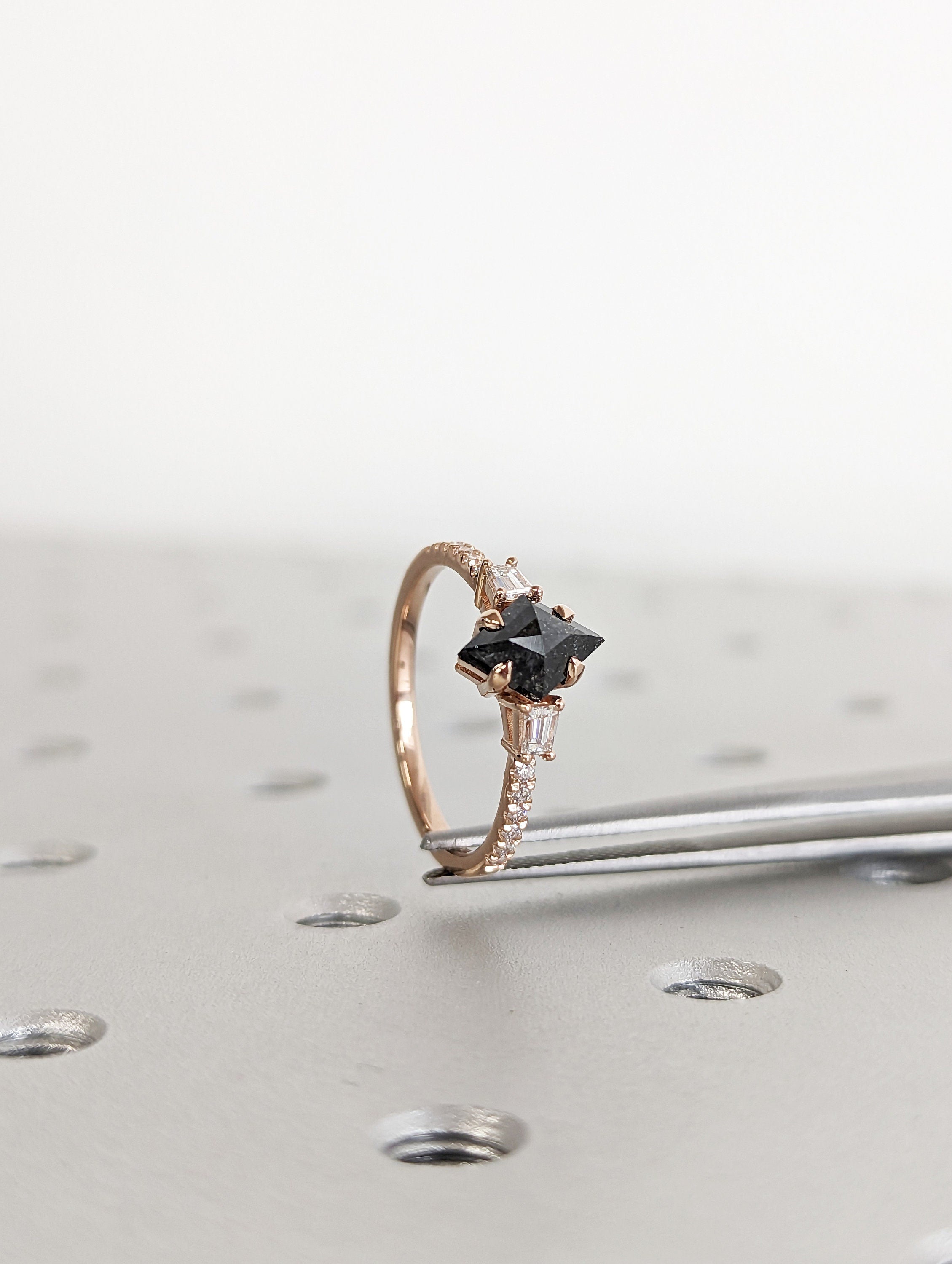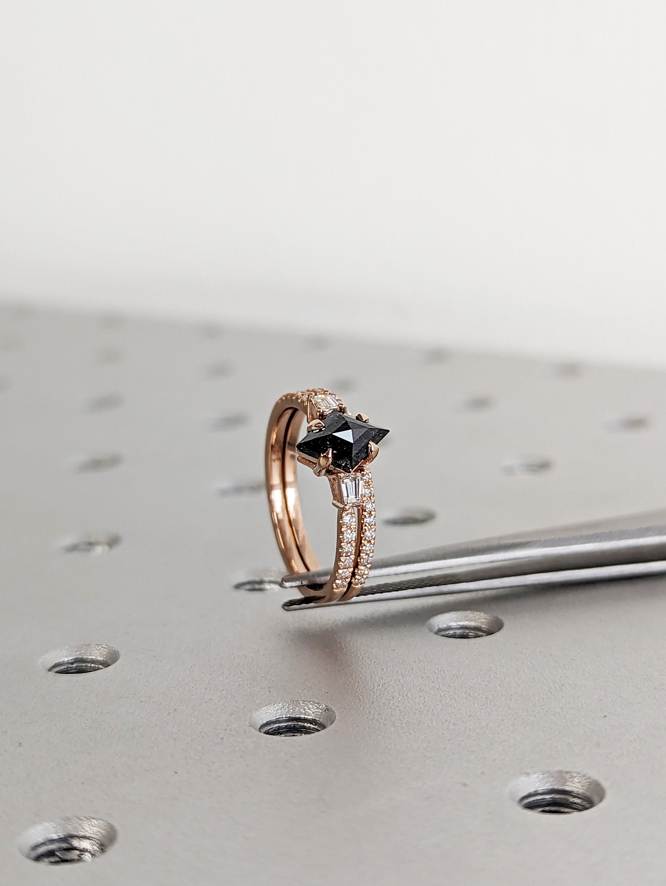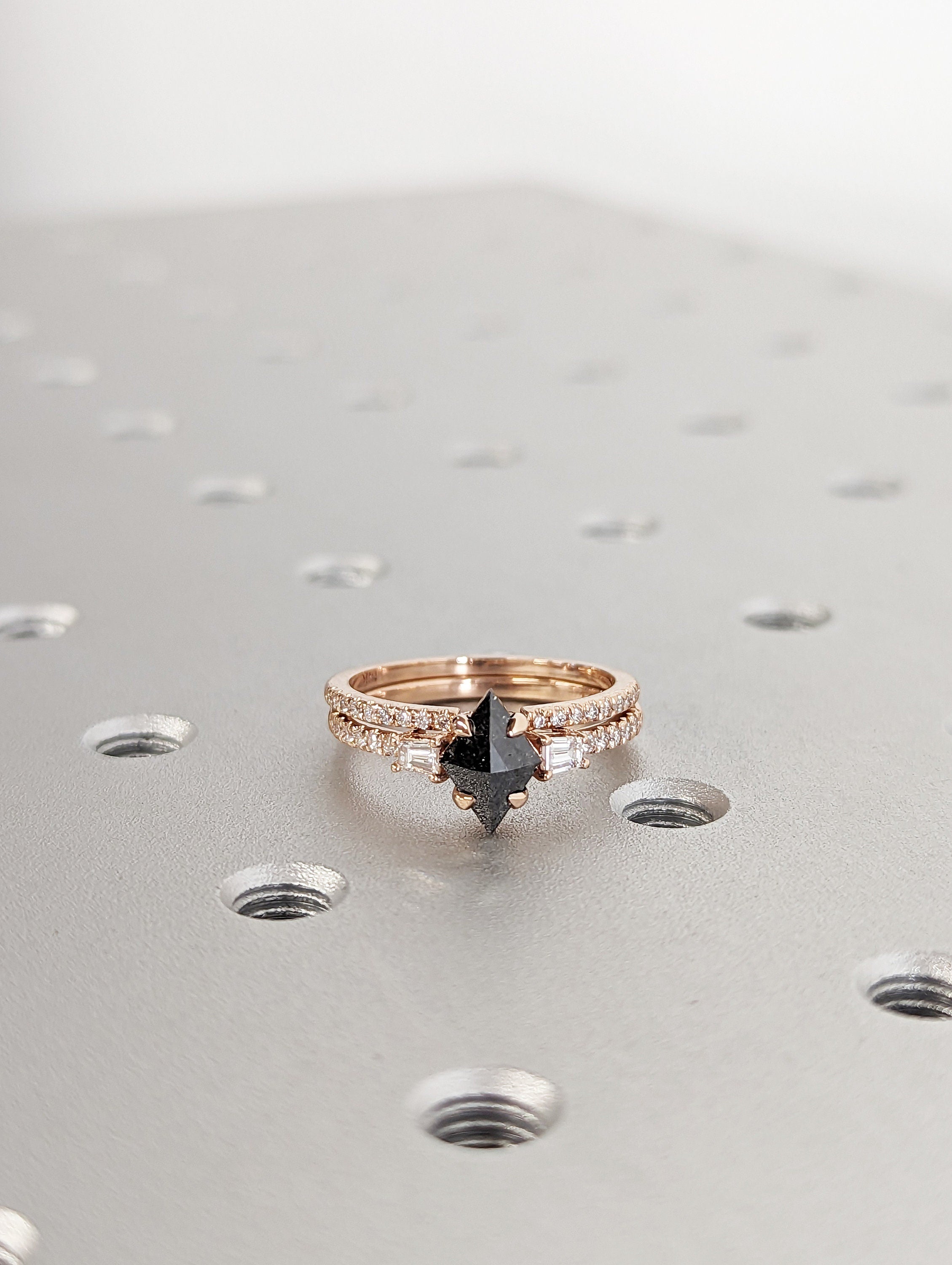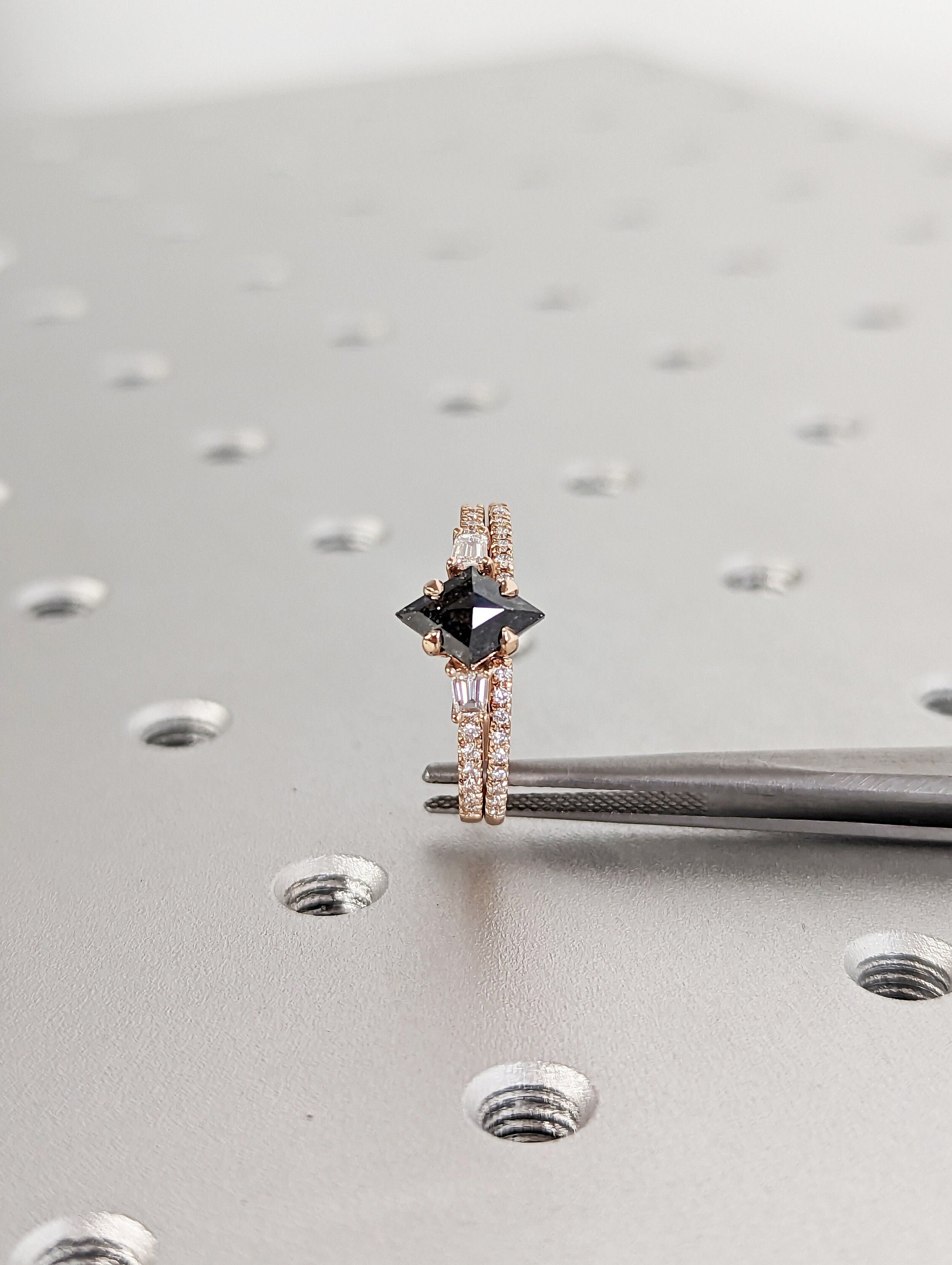 1Ct Kite Rhombus Cut Wedding Set in Rose Gold , Salt and Pepper Bridal Set, Salt and pepper Kite Cut Bridal Set, Vintage Diamond bridal Set