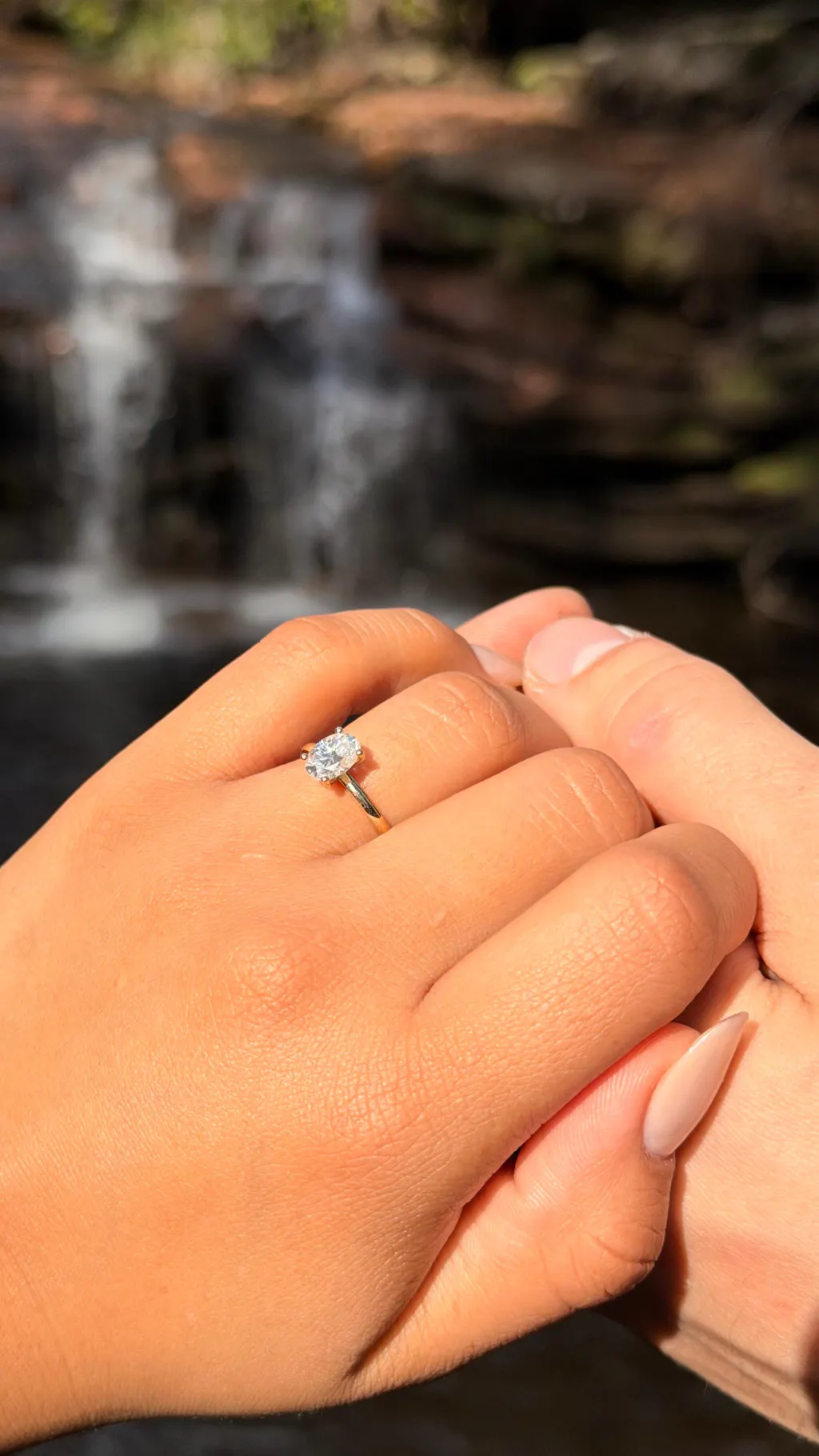 A beautiful oval shaped moissanite, set with a super delicate and thin setting, a thin band of 1.6mm width, make this ring a true stunner!