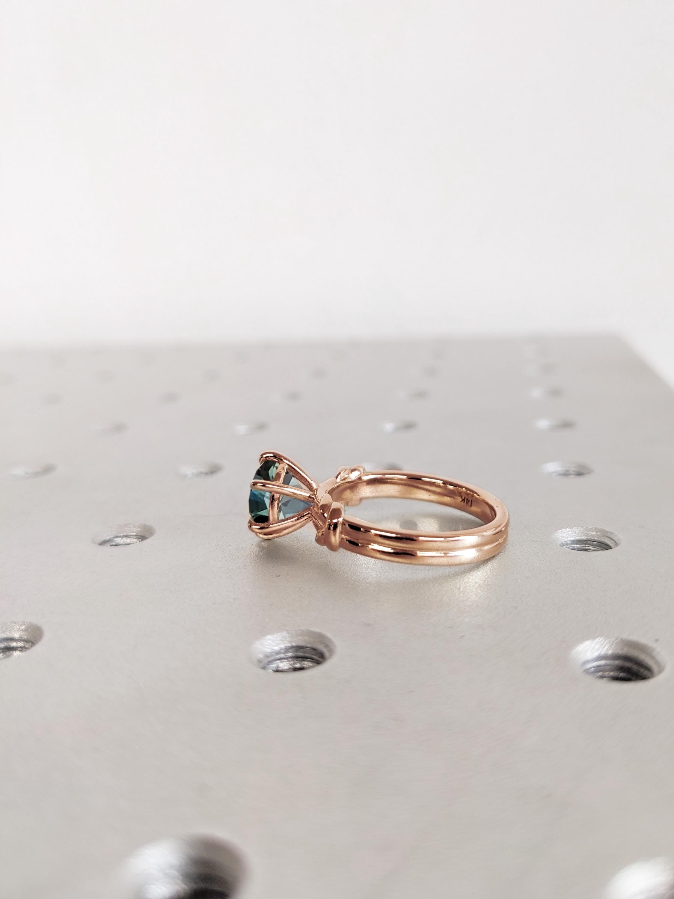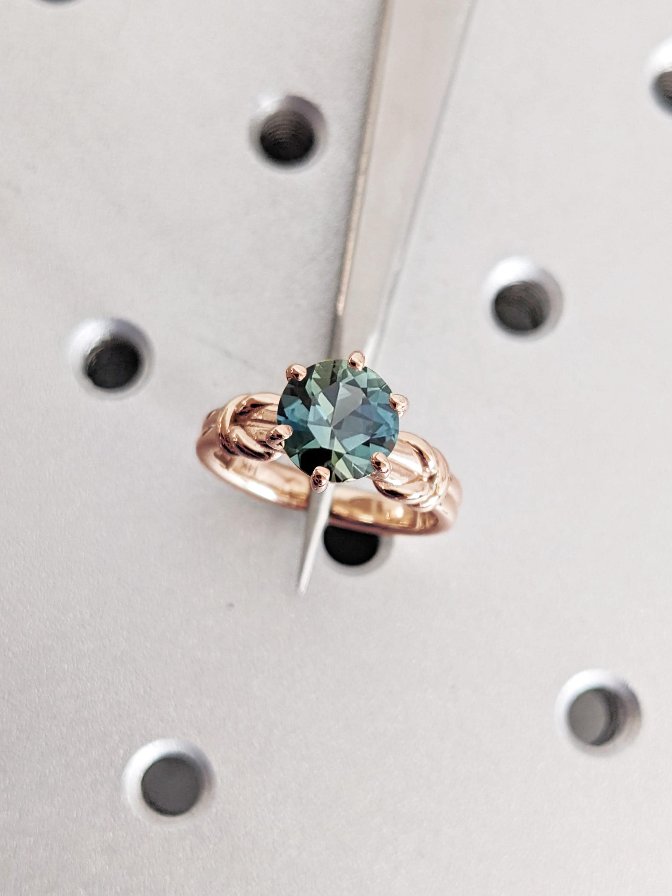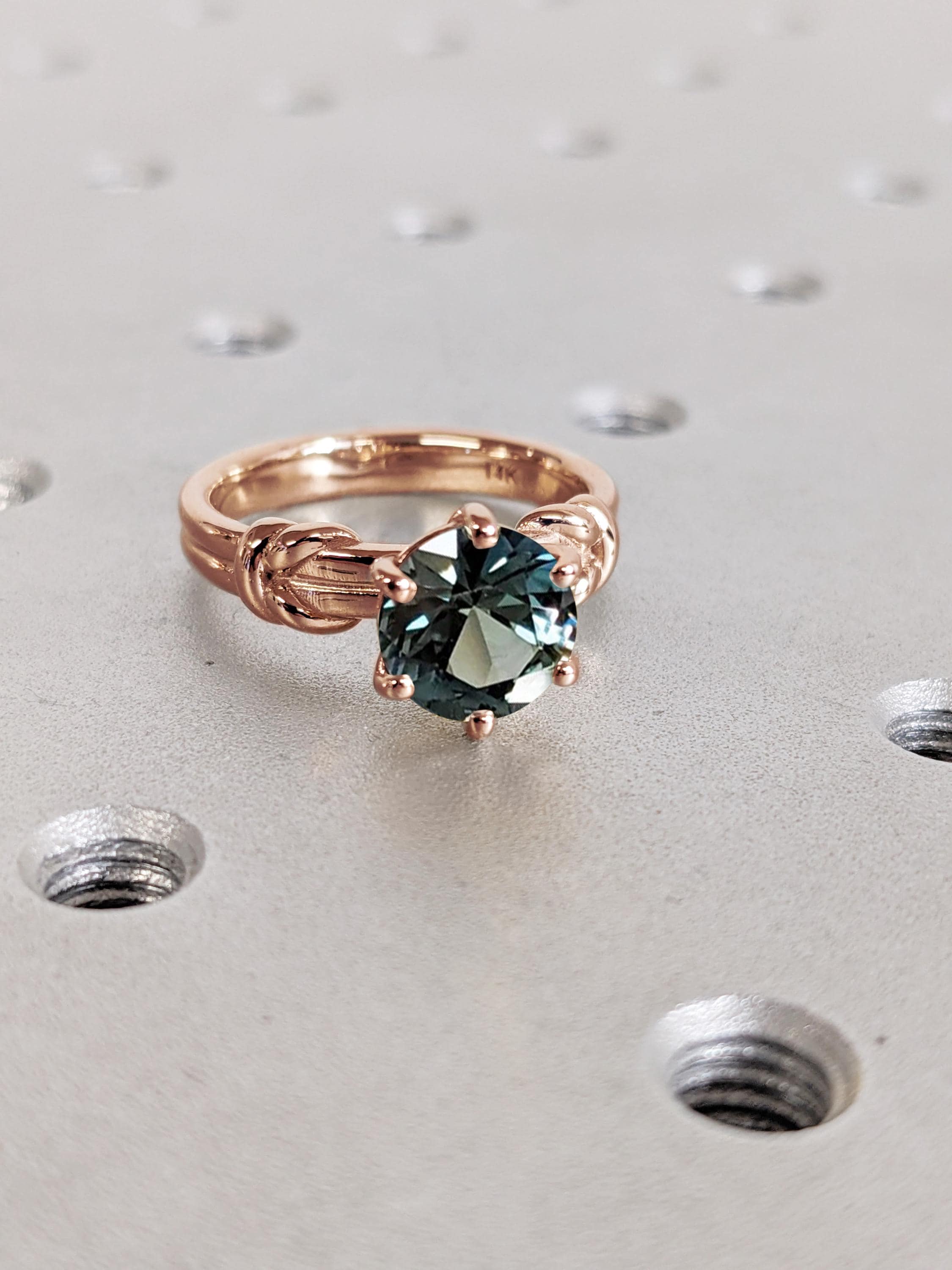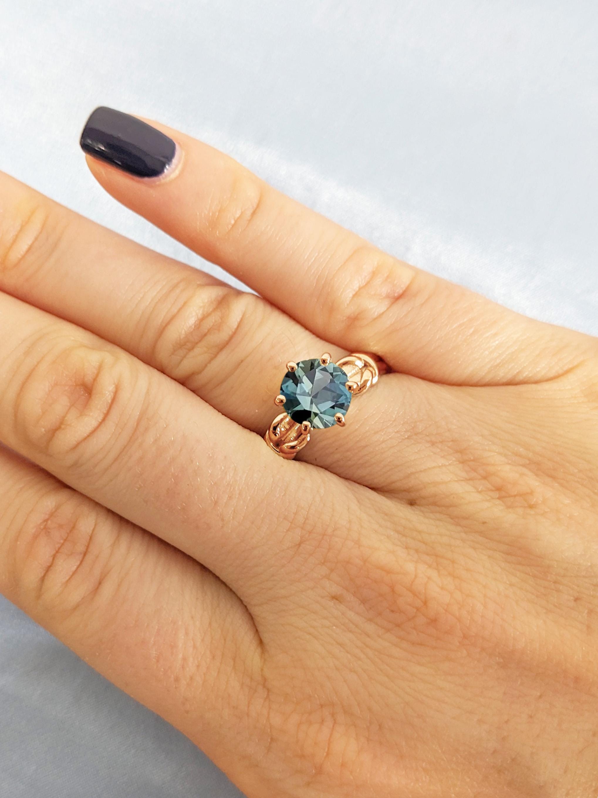 1ct Natural Peacock Sapphire Ring, 14K Rose Gold Twist Knot Band