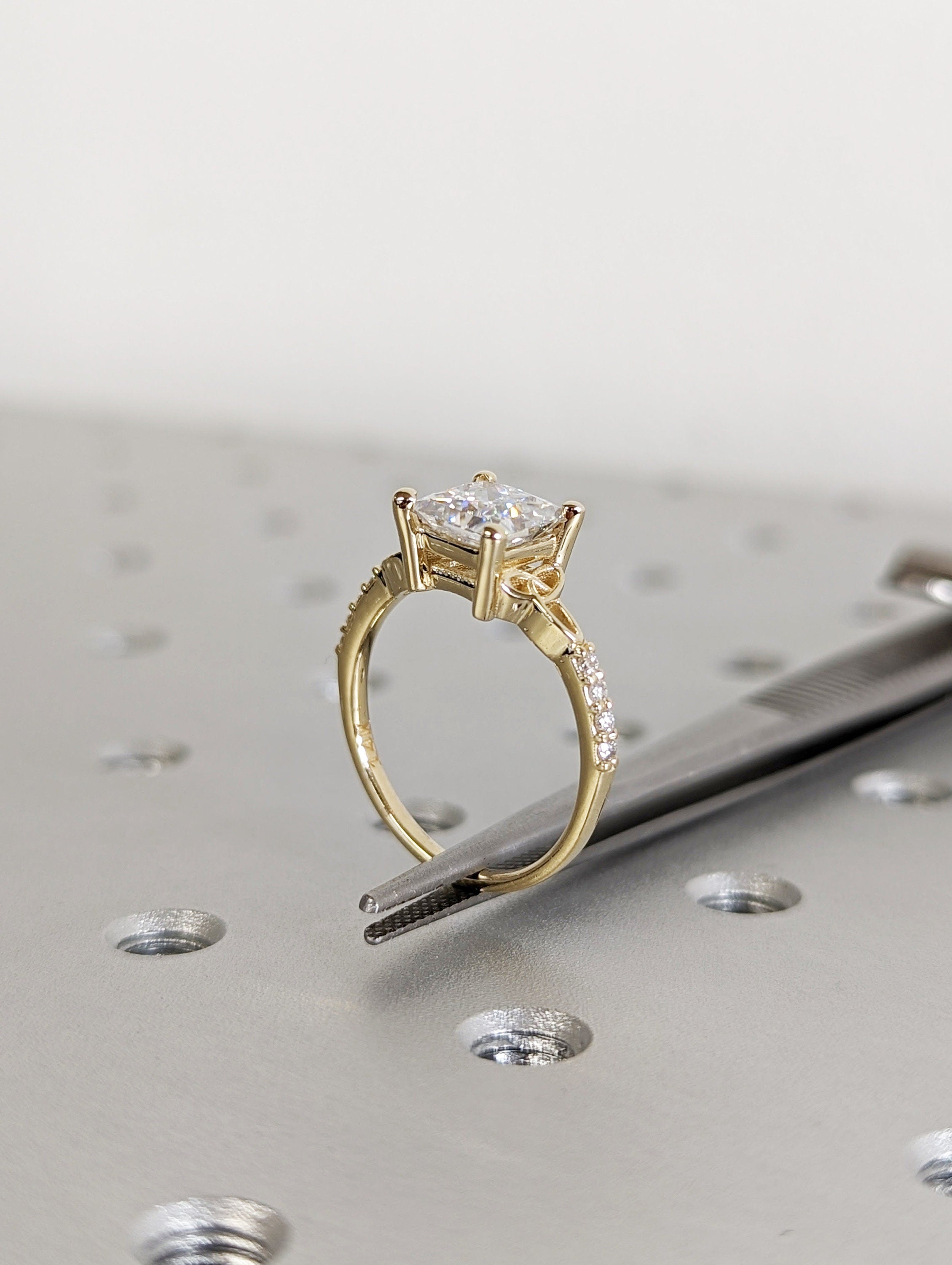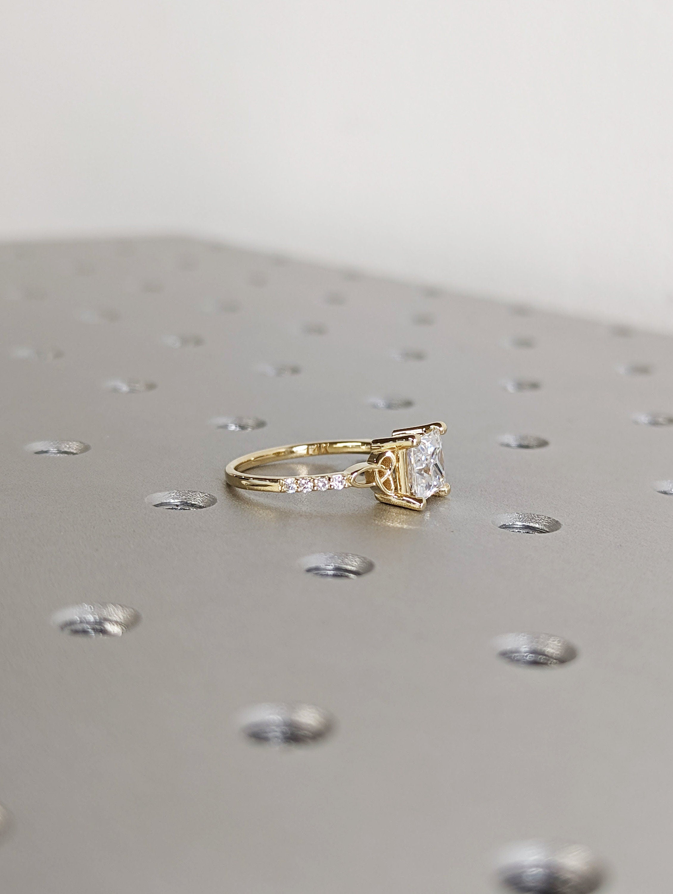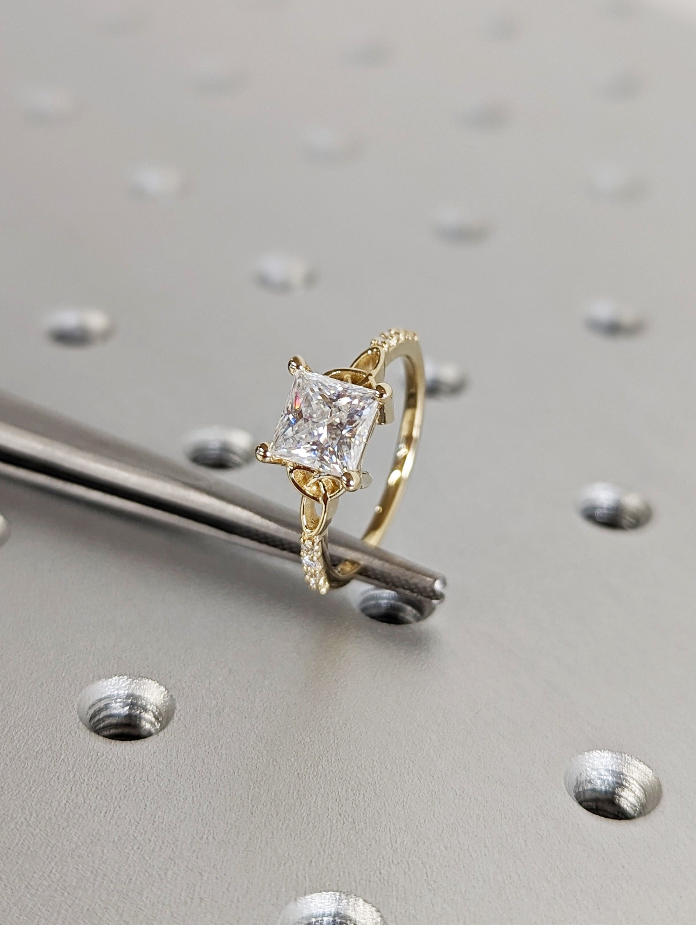 1ct Princess Celtic Cathedral Ring Gold Moissanite Diamond Celtic Engagement Ring Trinity Knot Irish Ring Triquetra Ring Moissanite Ring