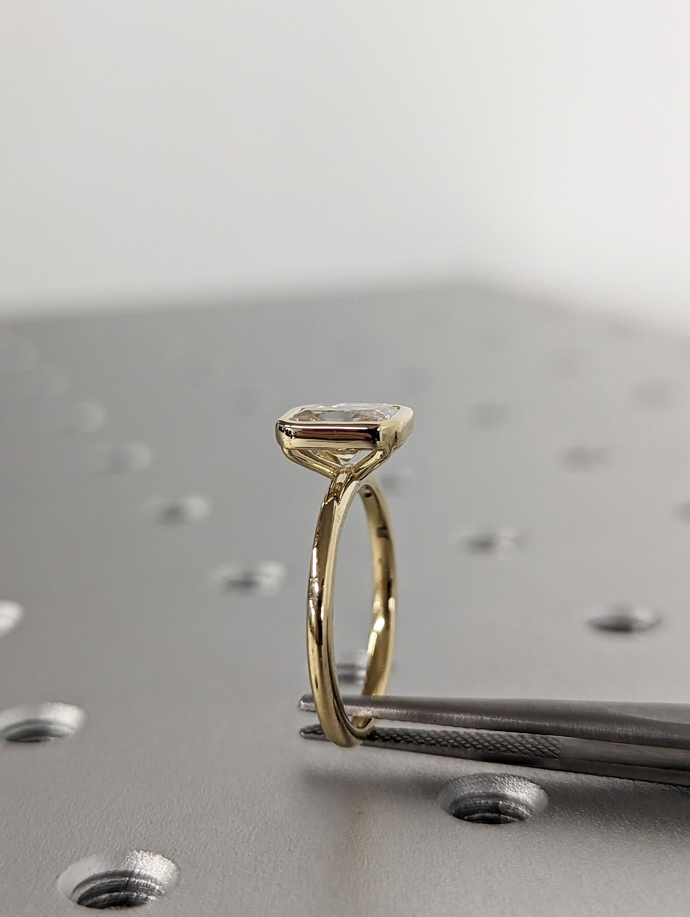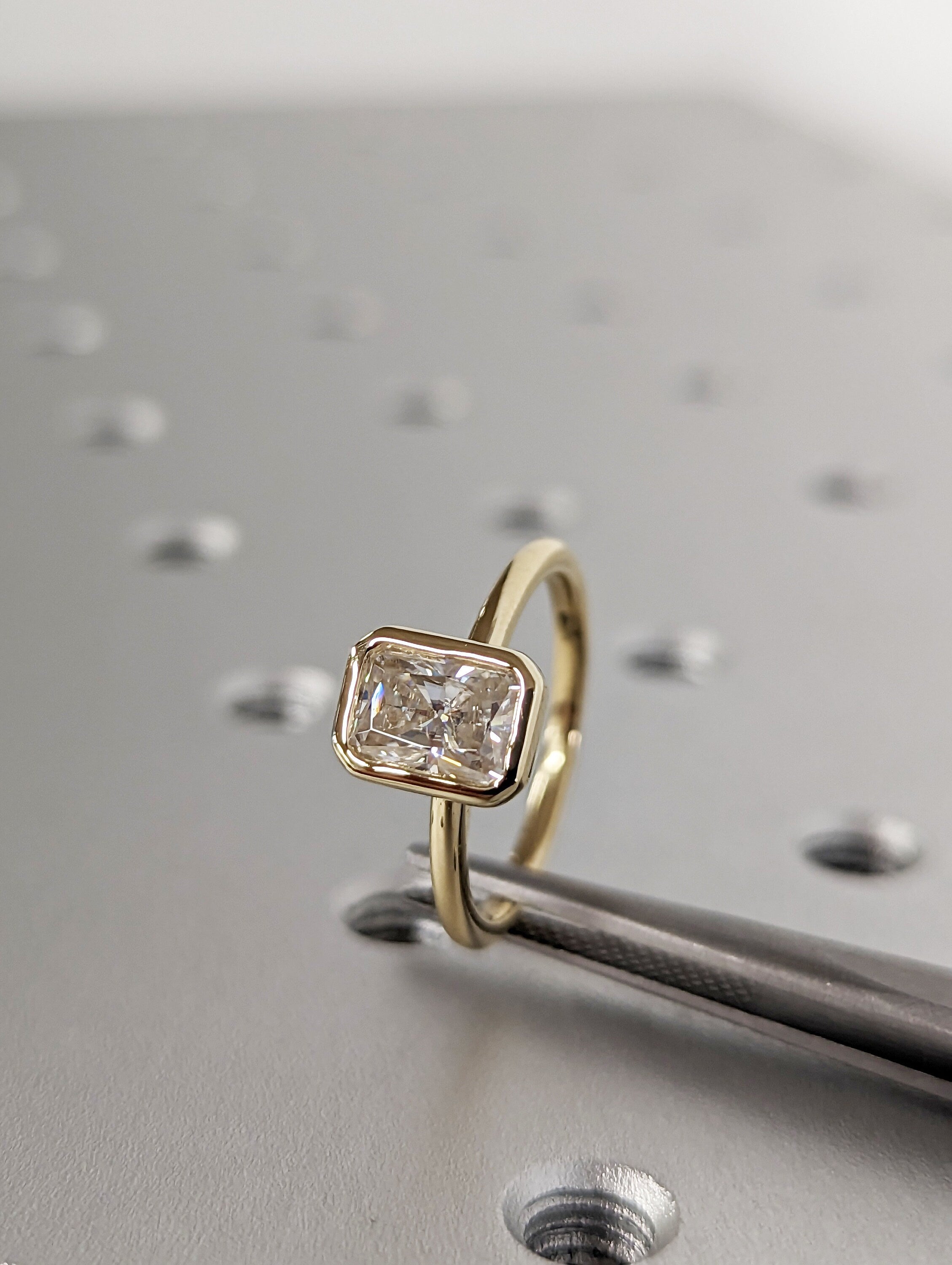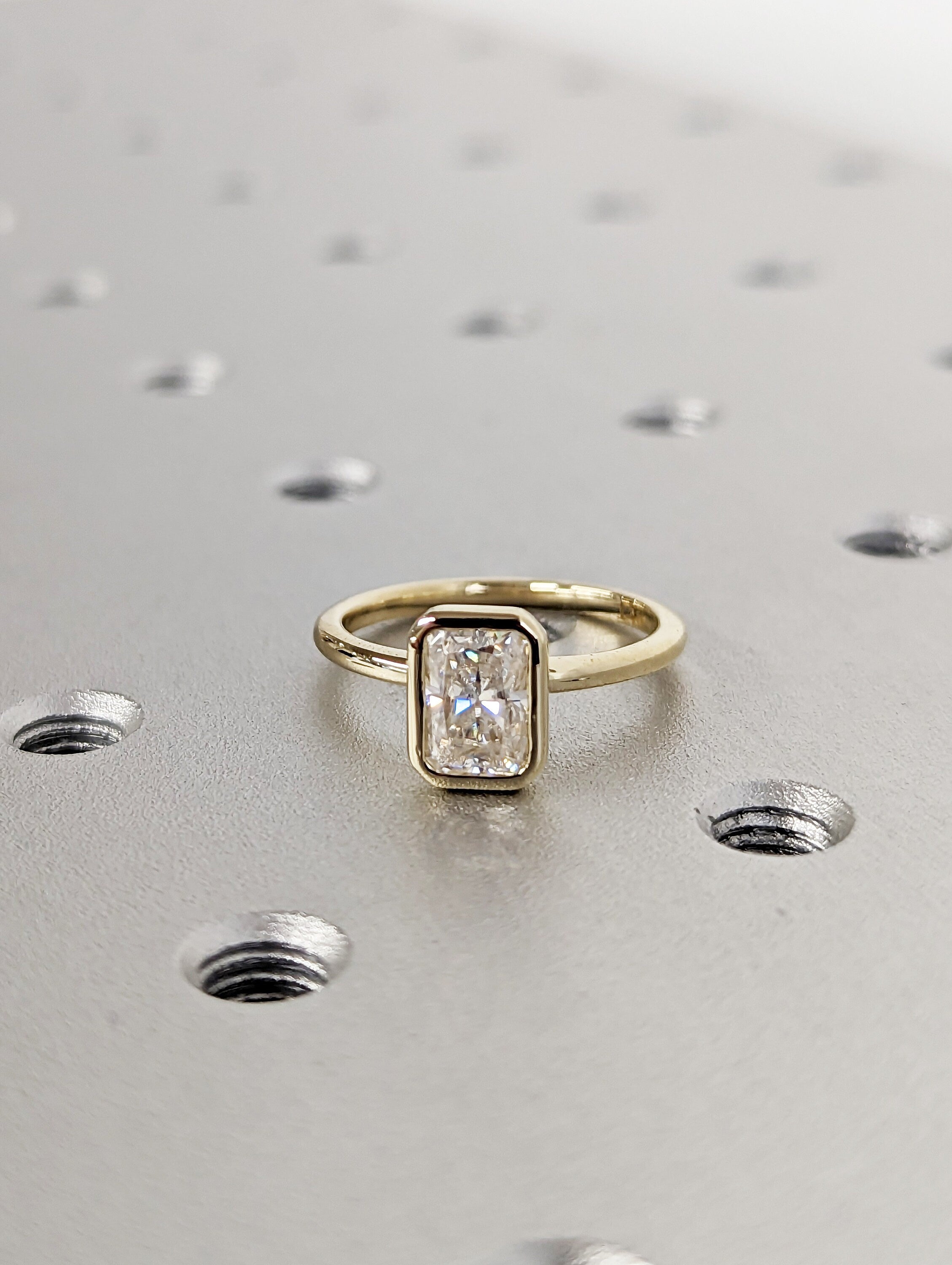 1CT Radiant Cut Moissanite Solitaire Ring, 14K Yellow Gold Engagement Ring, Bezel Setting, Statement Ring, Gift For Her, Anniversary Ring