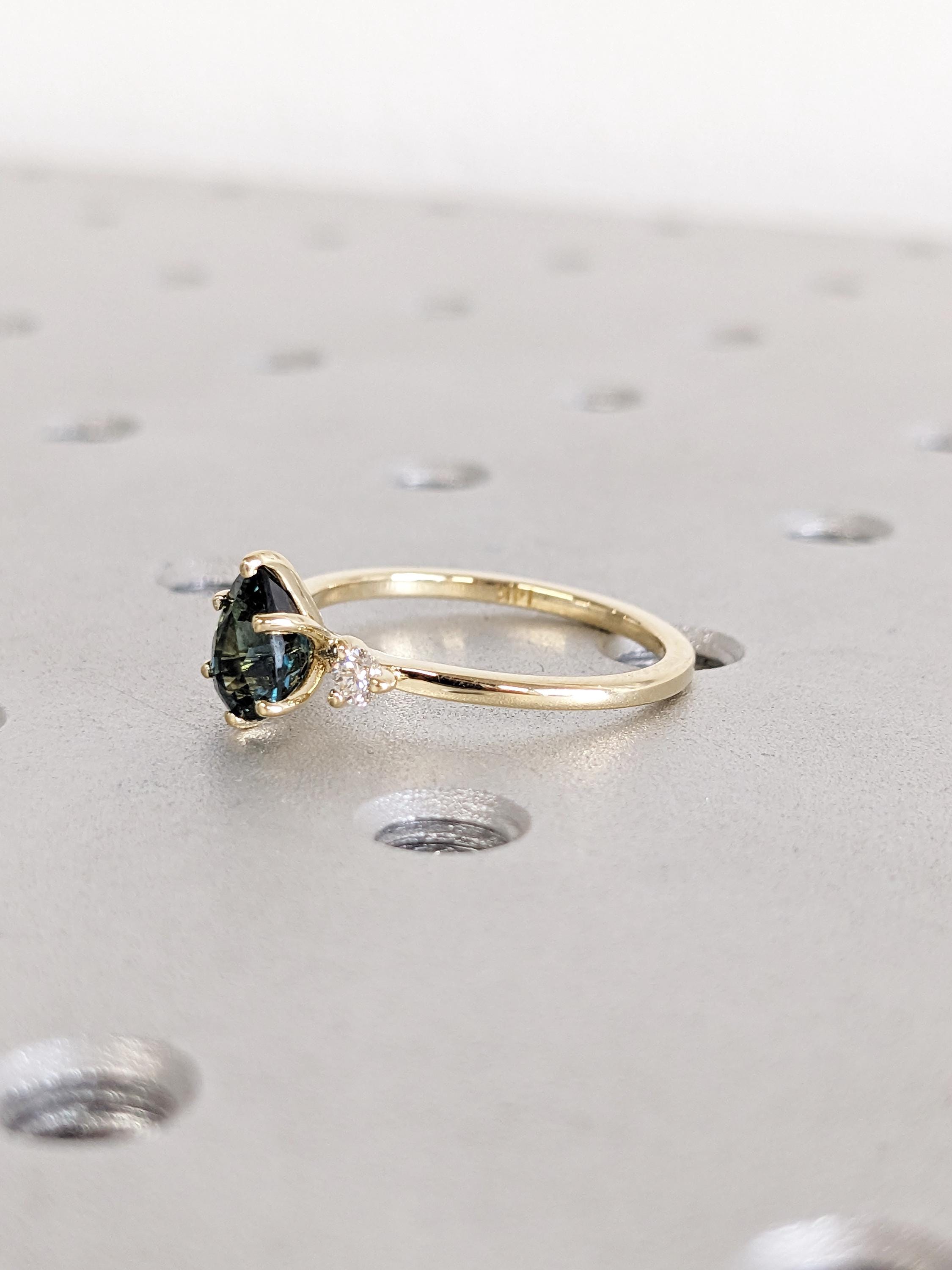1ct Teal Green Sapphire Engagement Ring, Vintage Peacock Pear Cut Wedding Band, Teardrop Sapphire Birthstone Jewelry