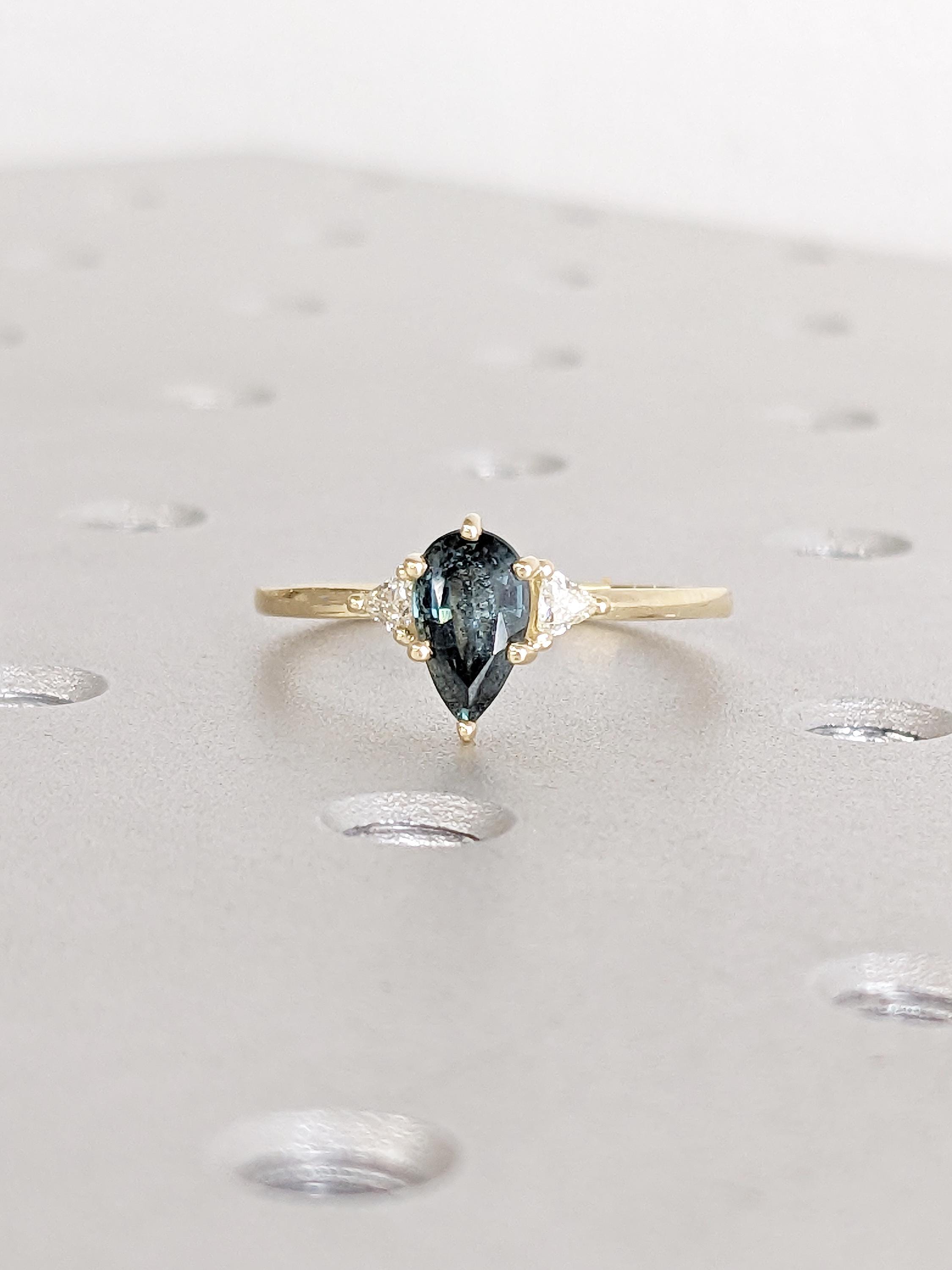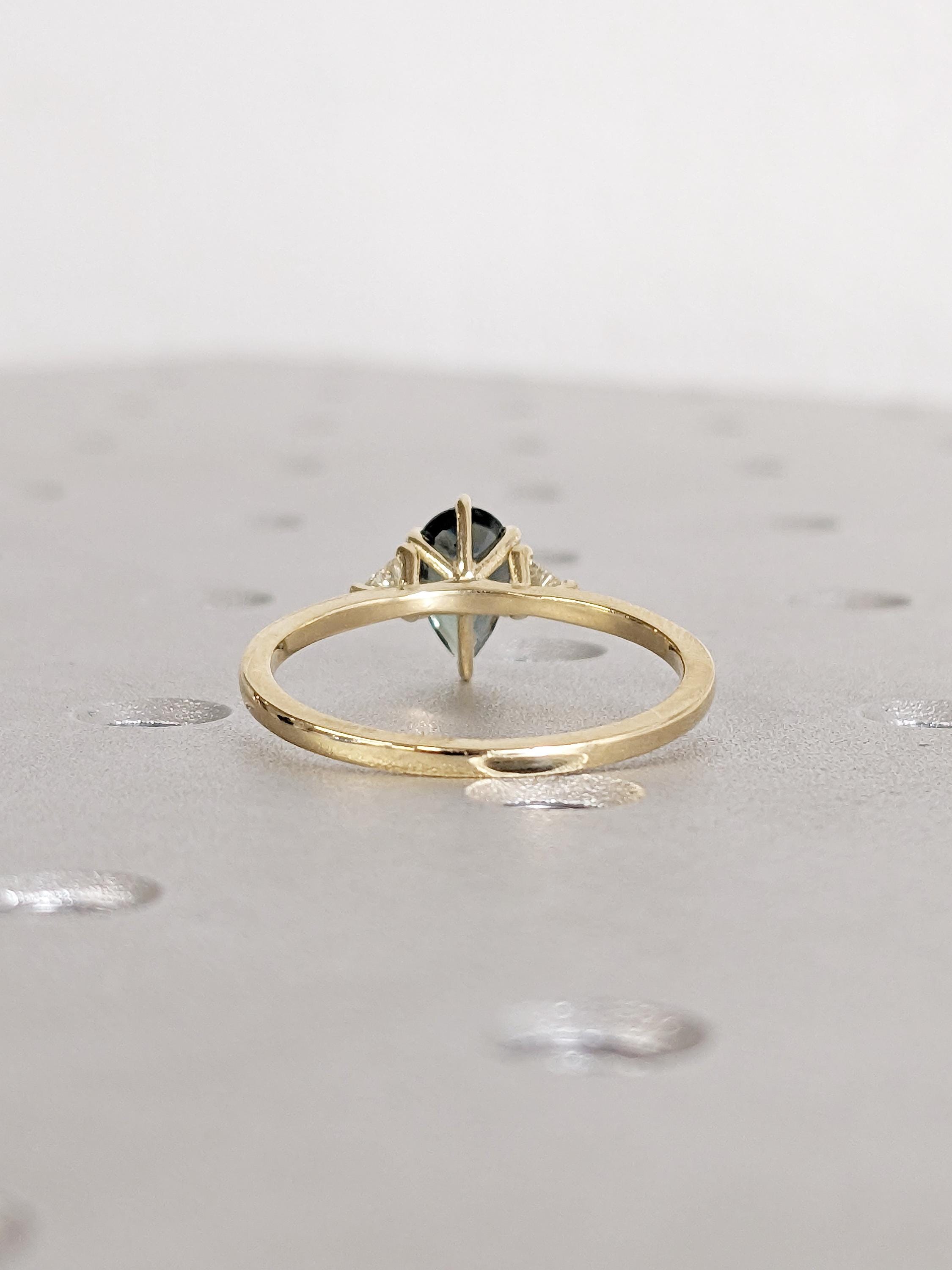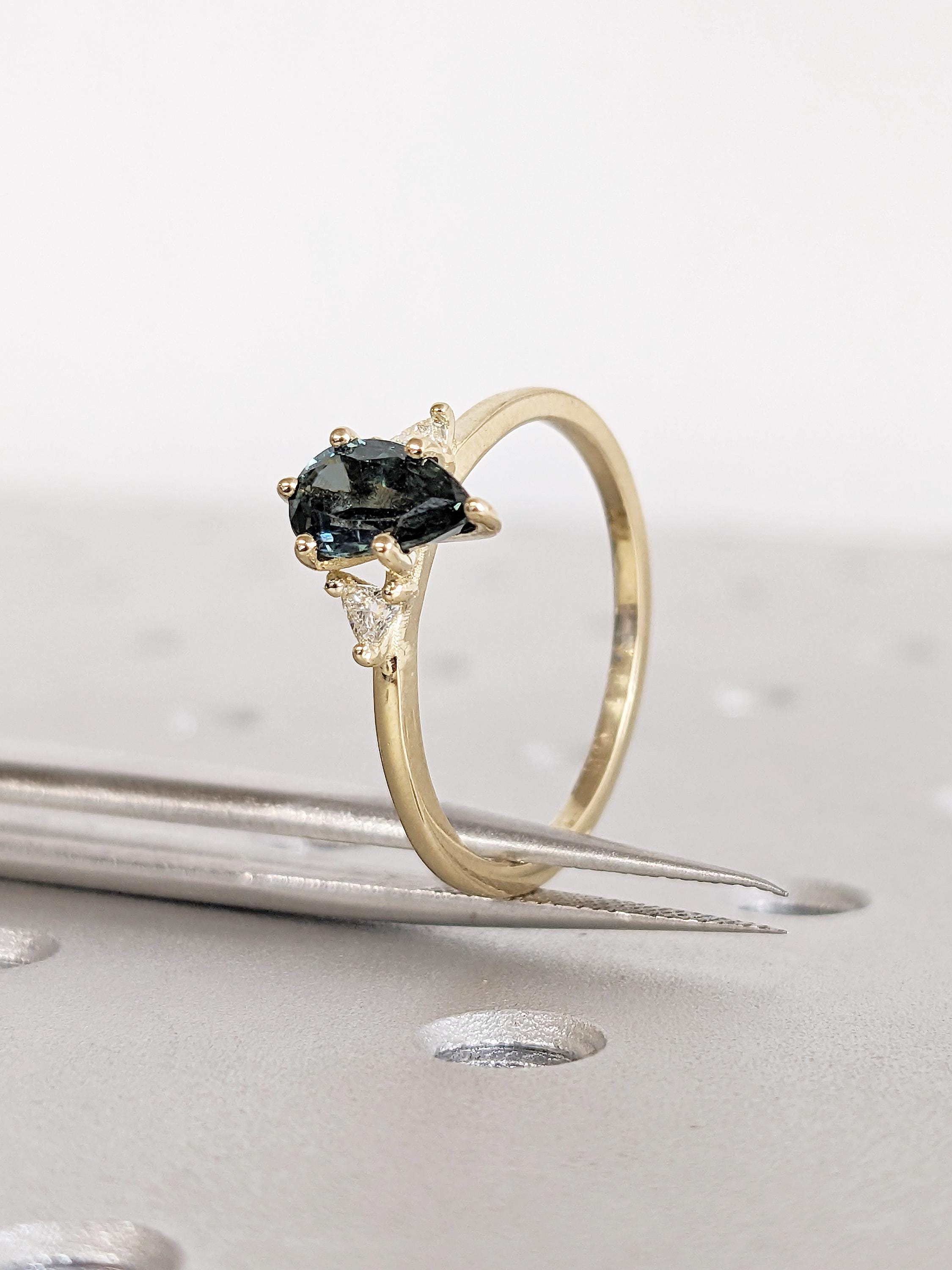 1ct Teal Sapphire Engagement Ring, 14k Solid Gold September Birthstone, Pear Shaped Ring
