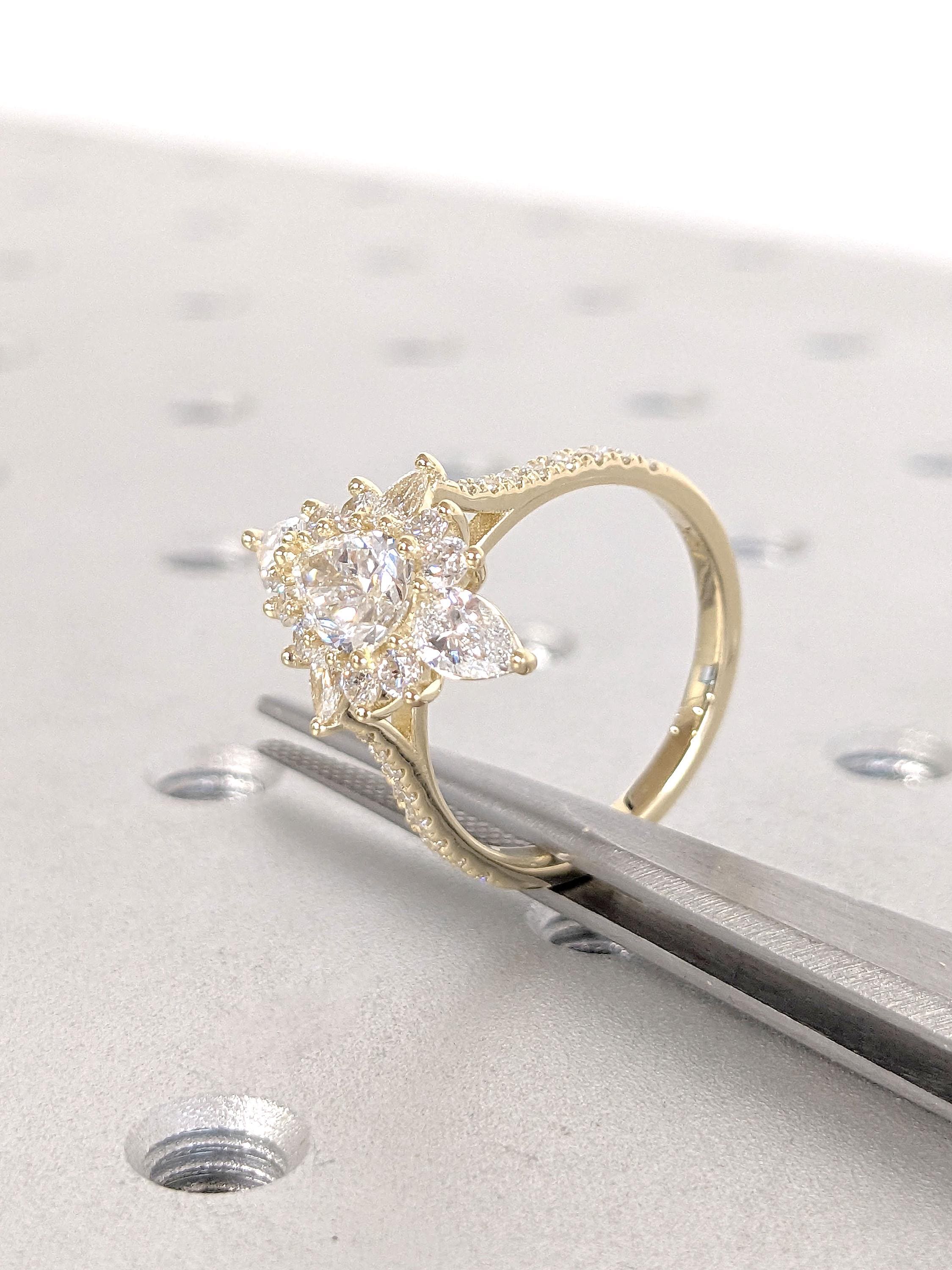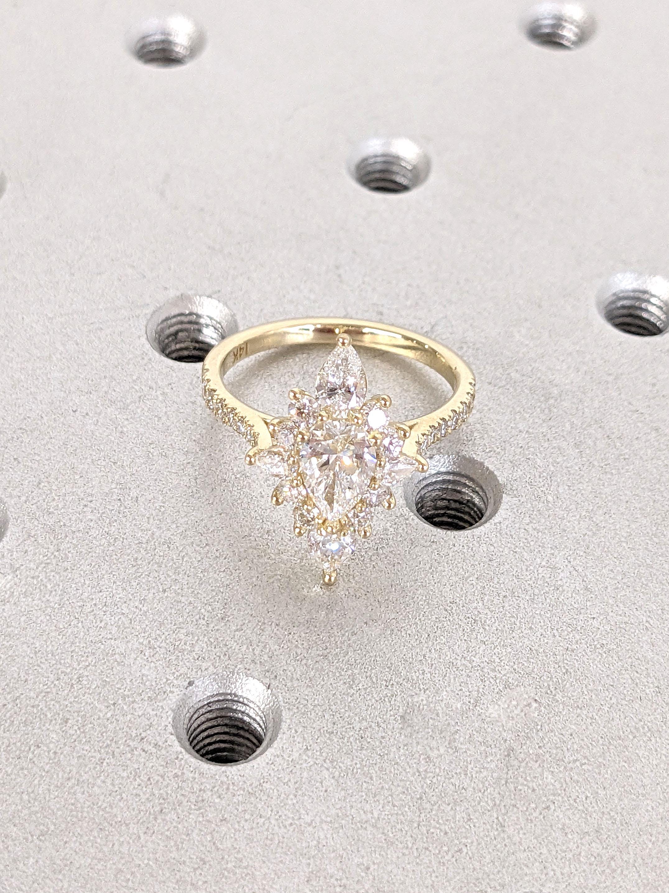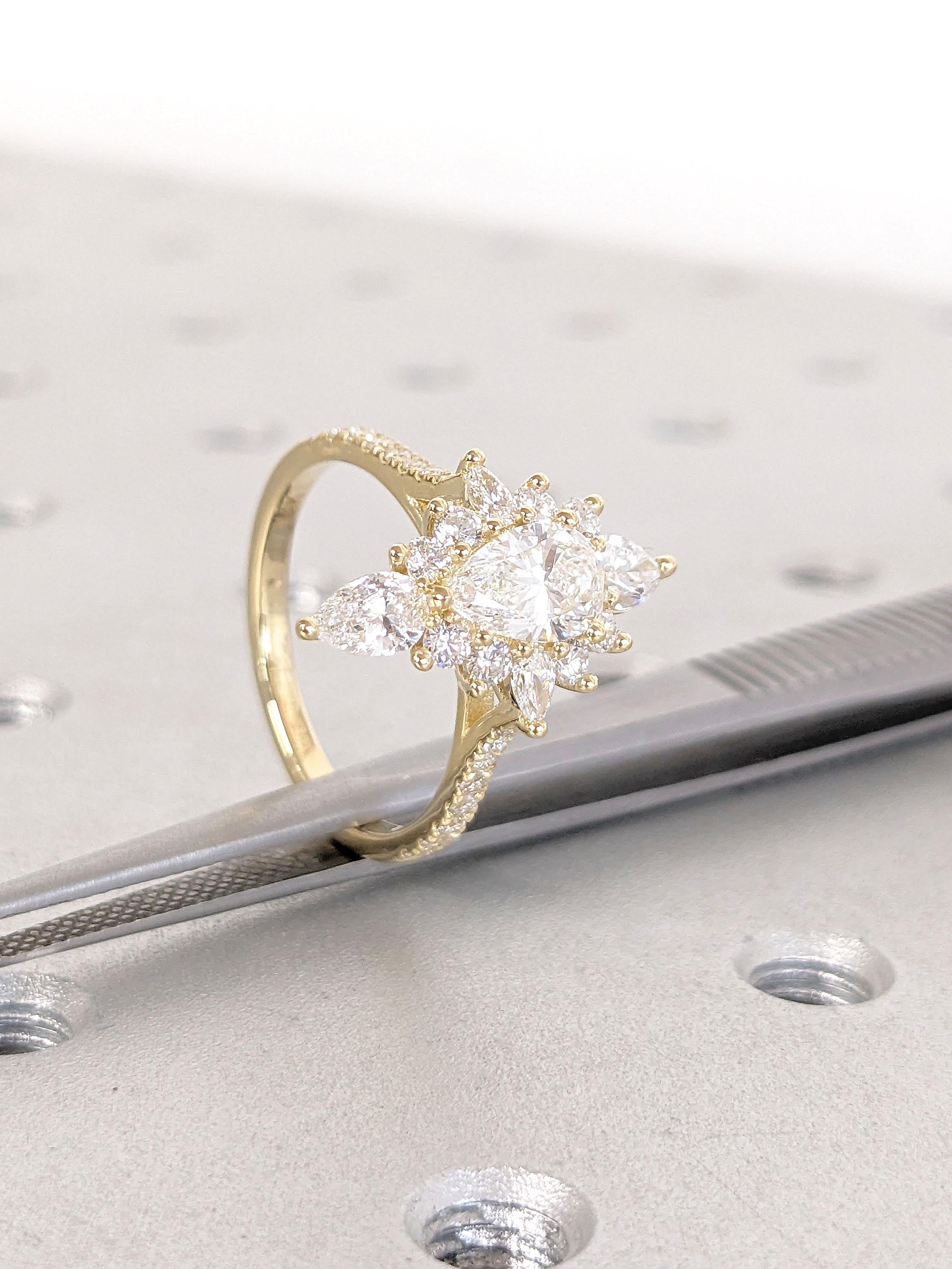 1ct VVS Colorless White Moissanite Ring | Pear cut Vintage Engagement Ring | Marquise Halo Ring | 14k Yellow Gold Promise Rings for Women