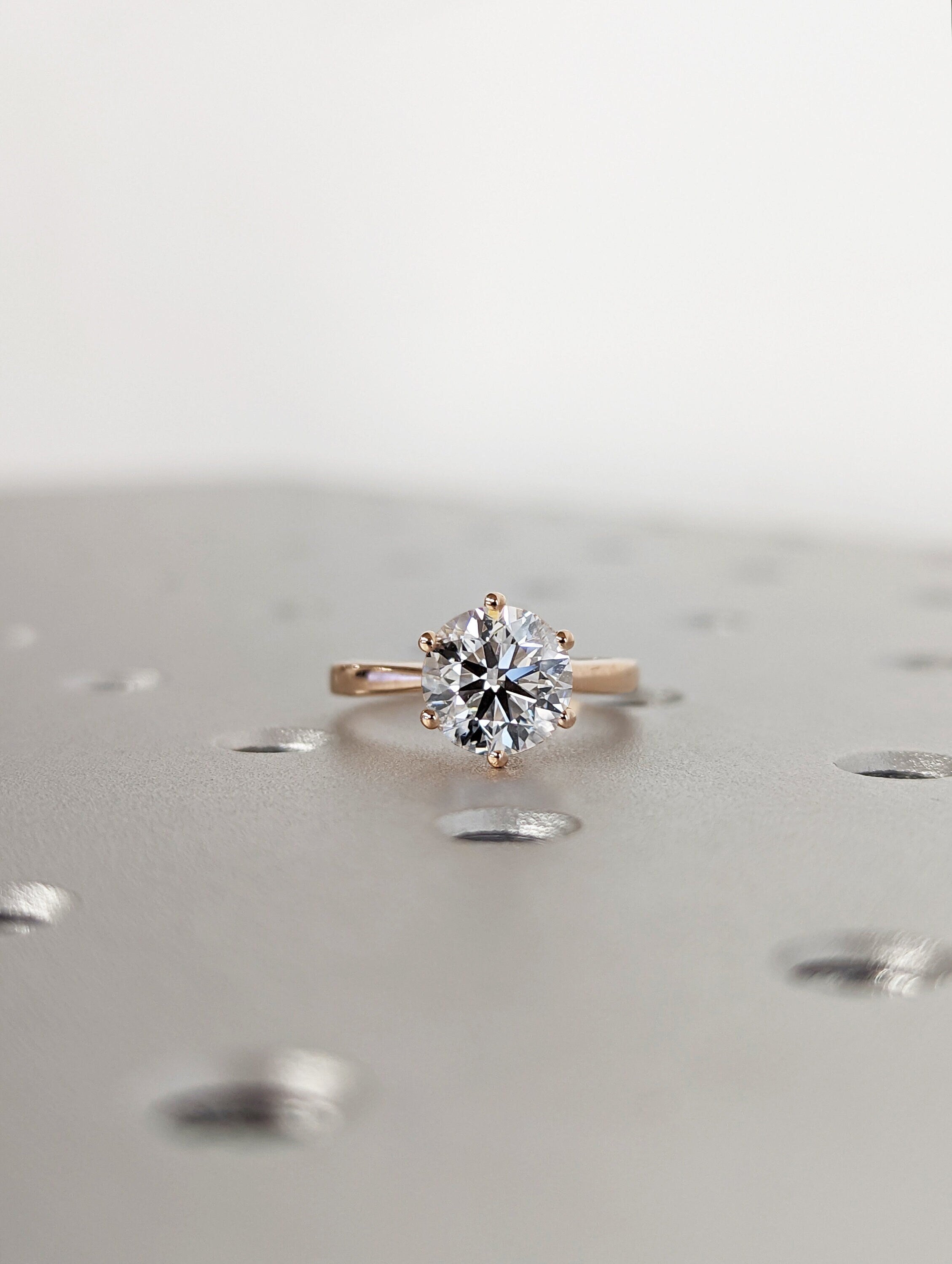 2 Carat 14K Gold Solitaire Ring/ Round Moissanite Ring / Rose Gold Moissanite Ring/ Wedding Engagement Ring/ Solitaire Moissanite Ring