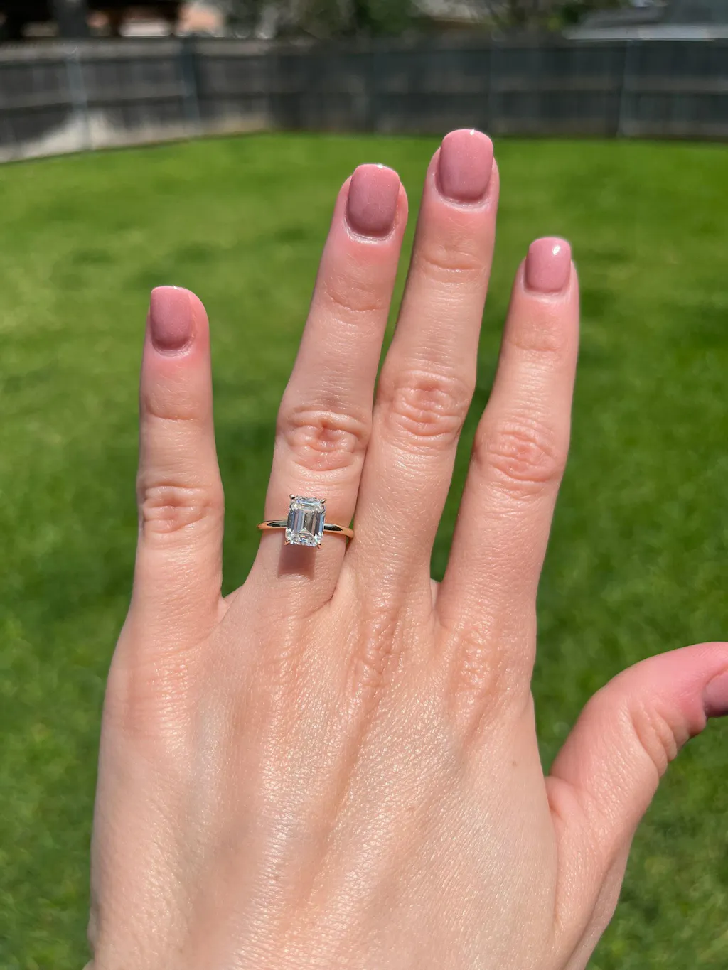 A beautiful emerald shaped moissanite, set with a super delicate and thin setting, a thin band of 1.6mm width, make this ring a true stunner!