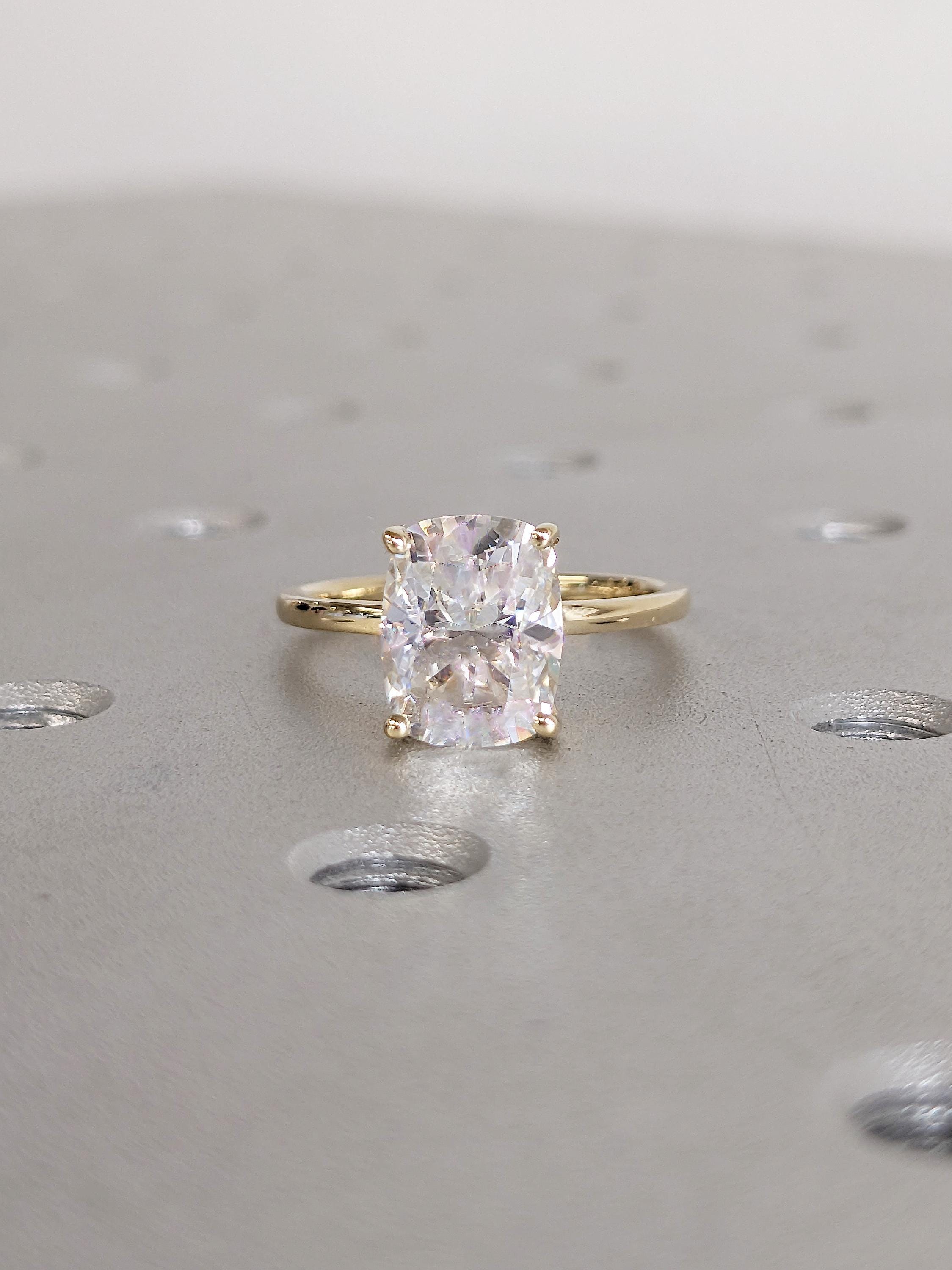 2.5ct Hidden Halo Engagement Ring, Elongated Cushion Lab Grown Diamond Ring, Unique Solitaire Ring, Dainty Solid Gold Ring, Anniversary Gift