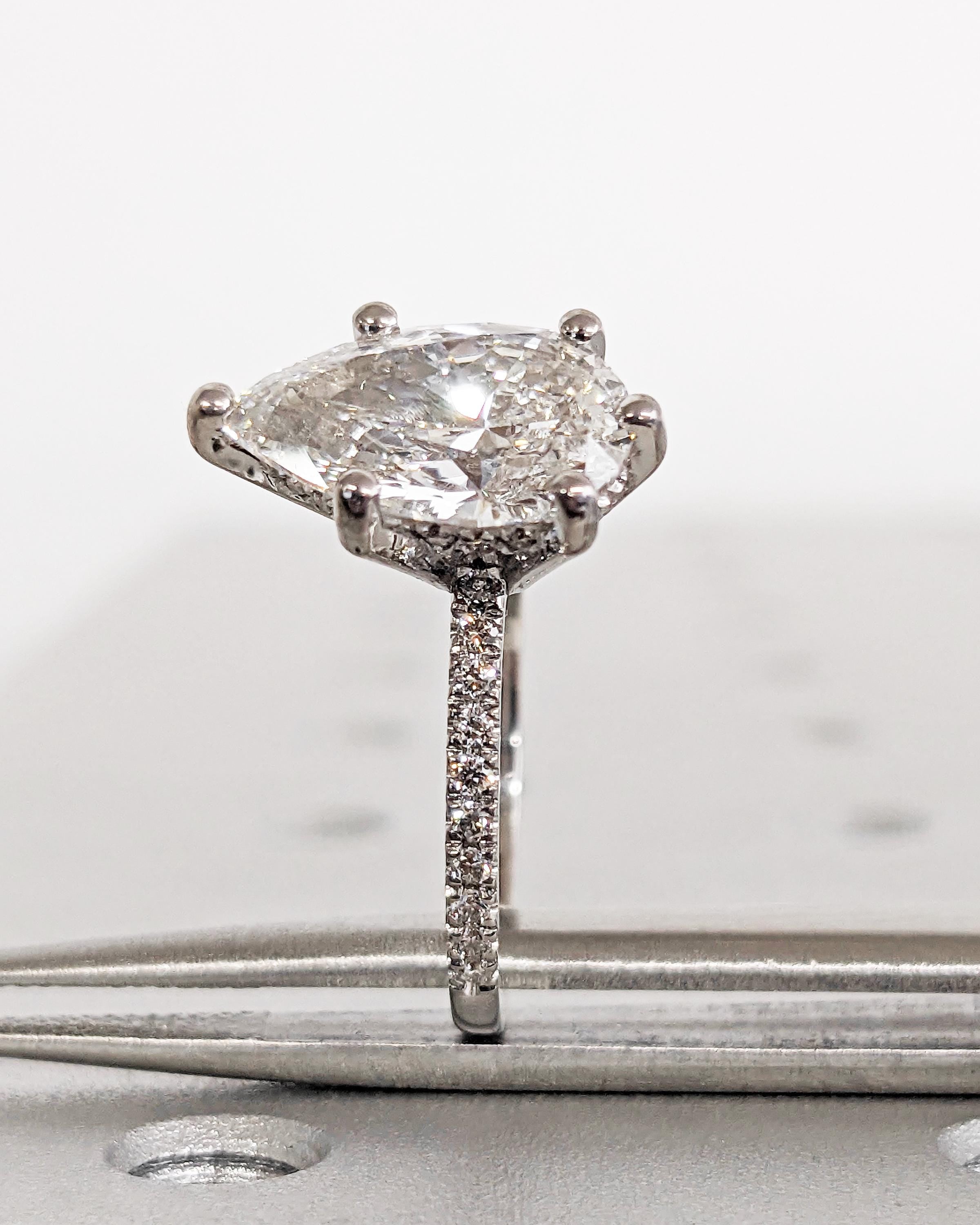 2.5CT IGI Certified Lab Grown Diamond Ring for Her, Pear Shaped Engagement Ring with Hidden Halo, 14K Gold, Statement Ring, Anniversary Gift