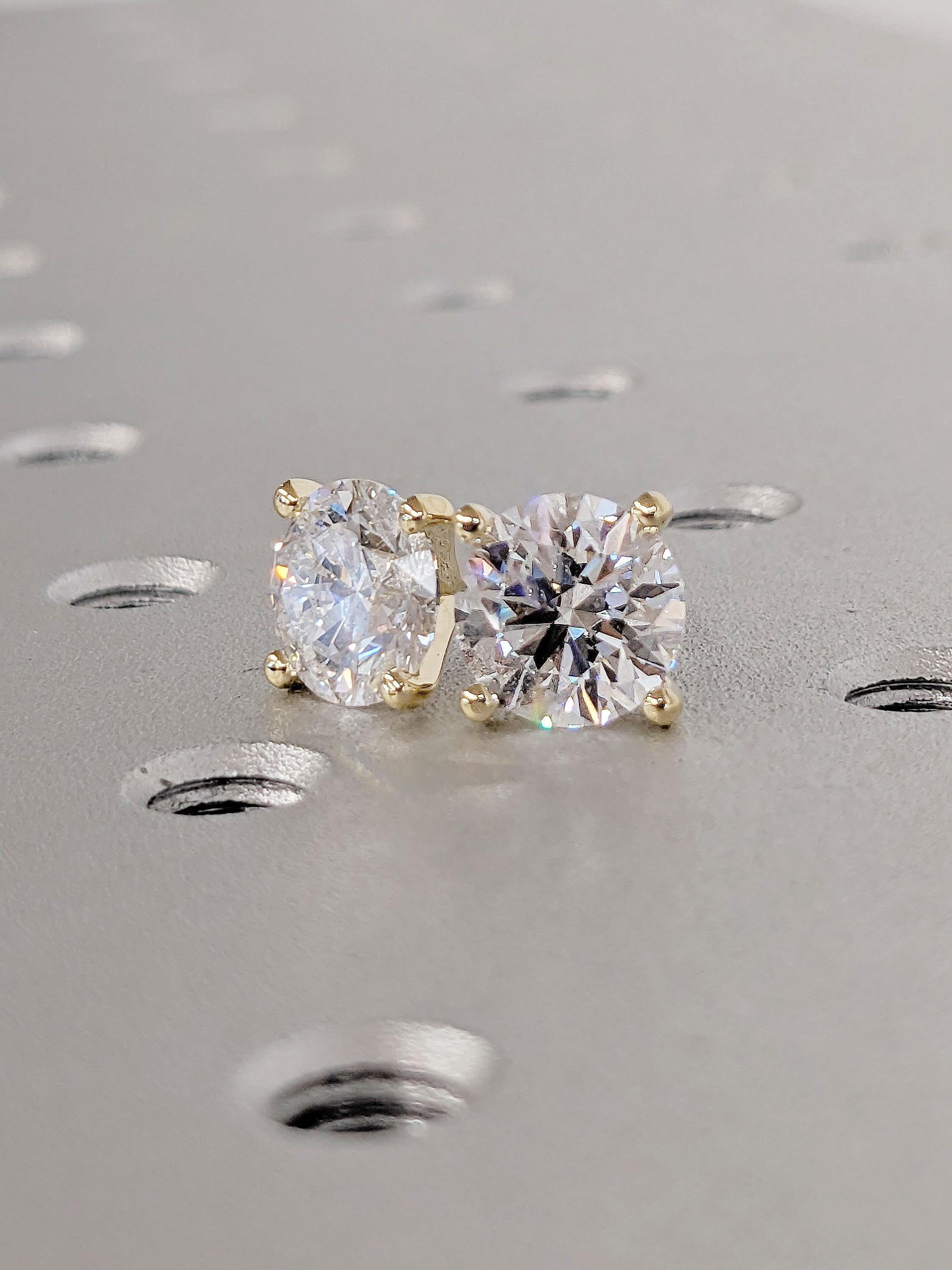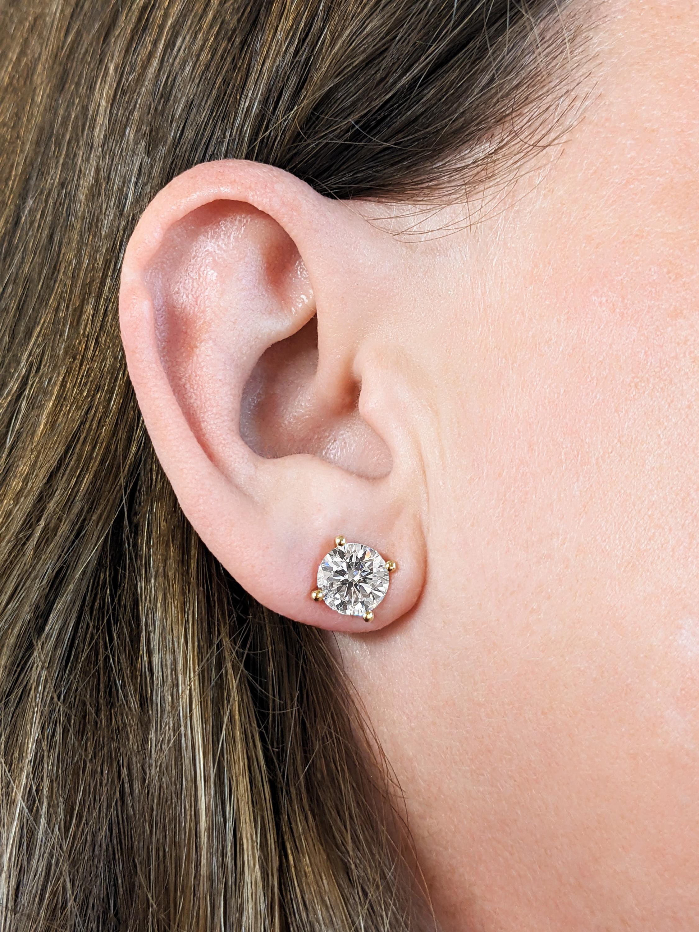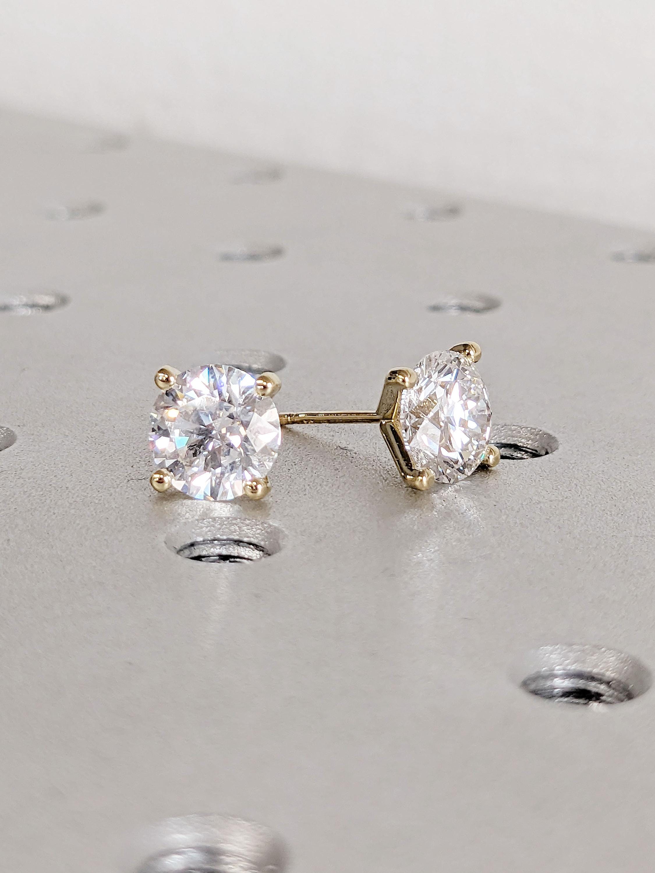 2CT Certified Real Lab Created Diamond Earrings | Diamond Earrings Round Studs | 14K Yellow Gold Lab Grown Earring Studs | 14K Gold Earrings