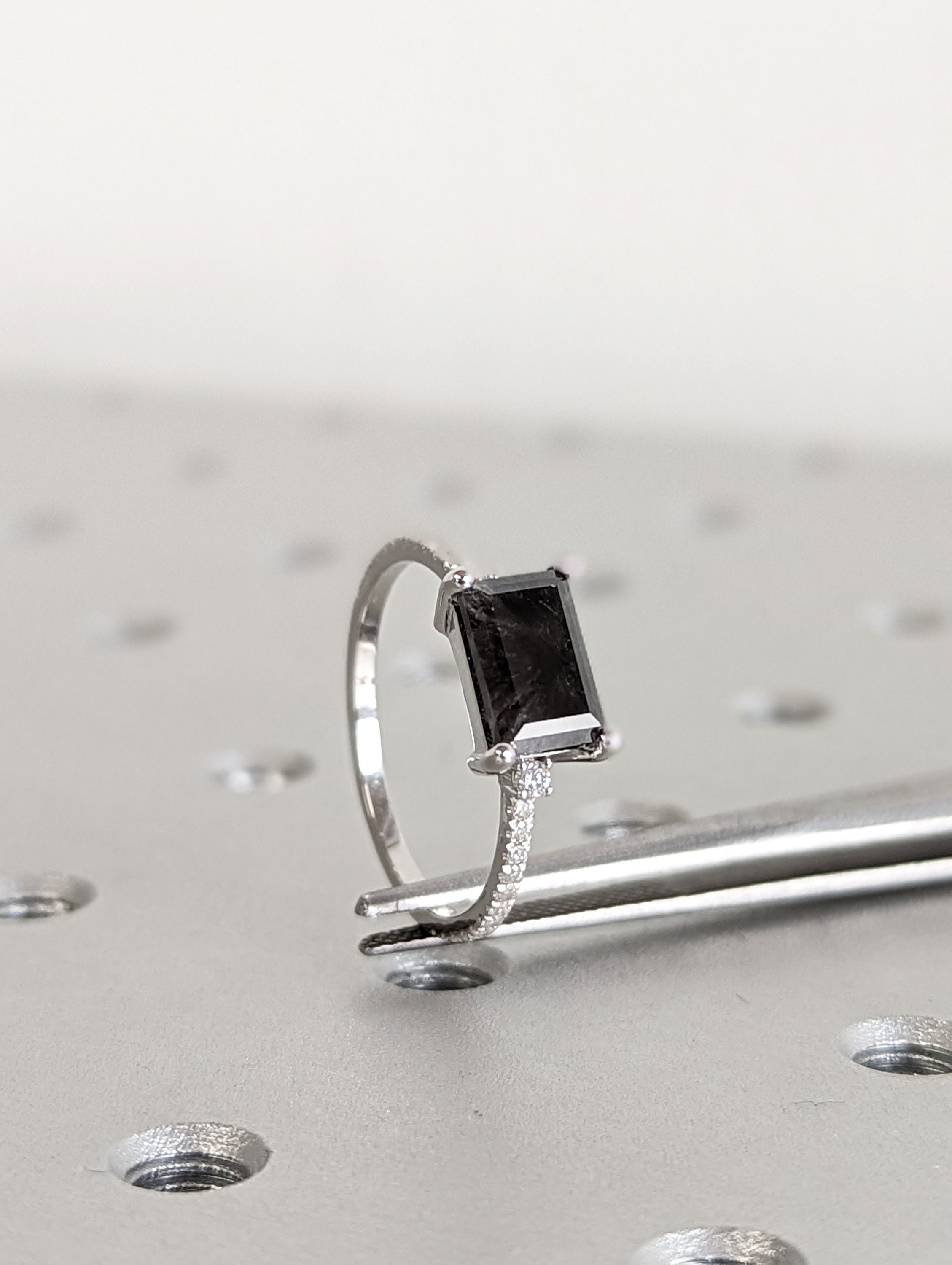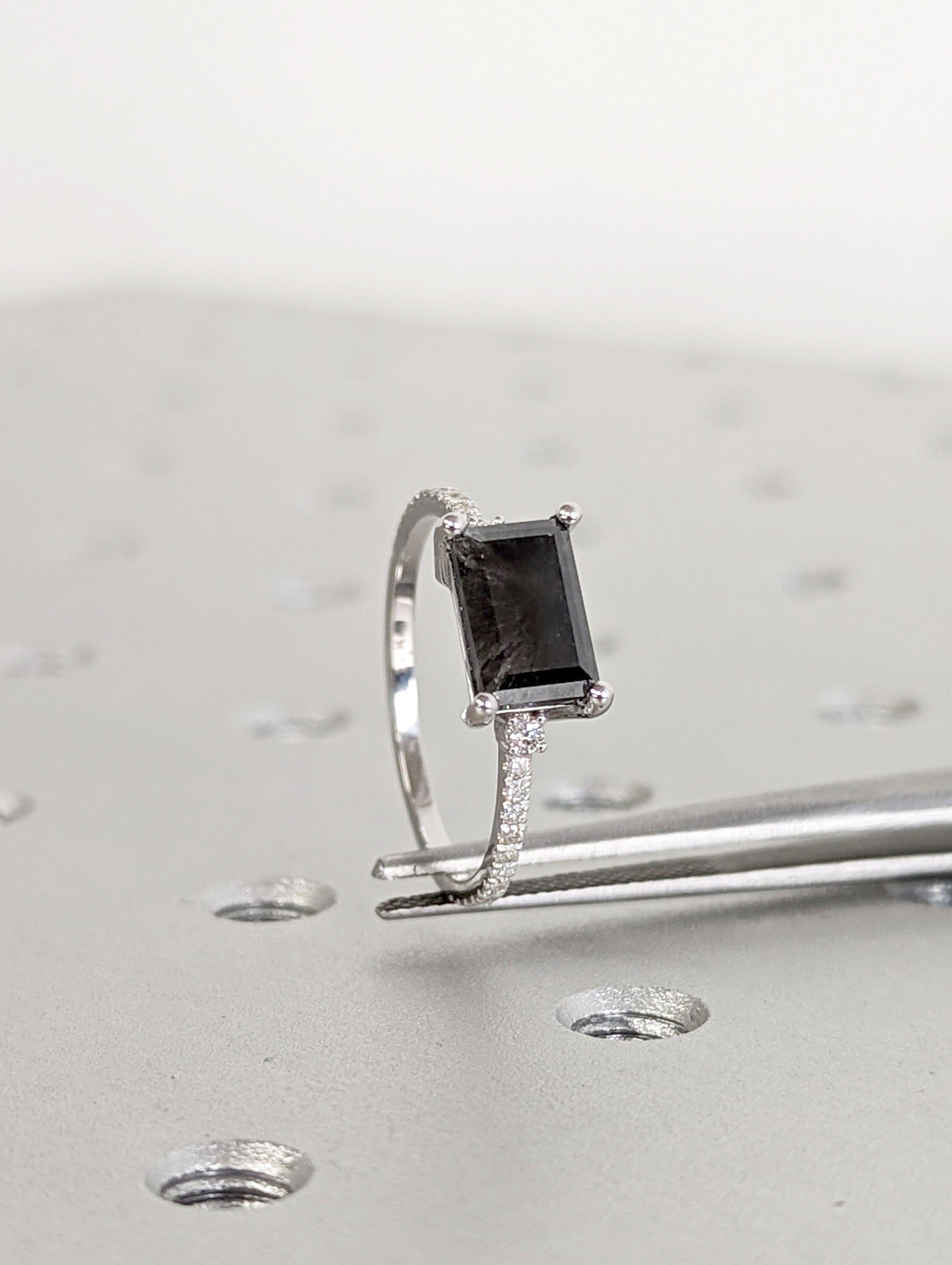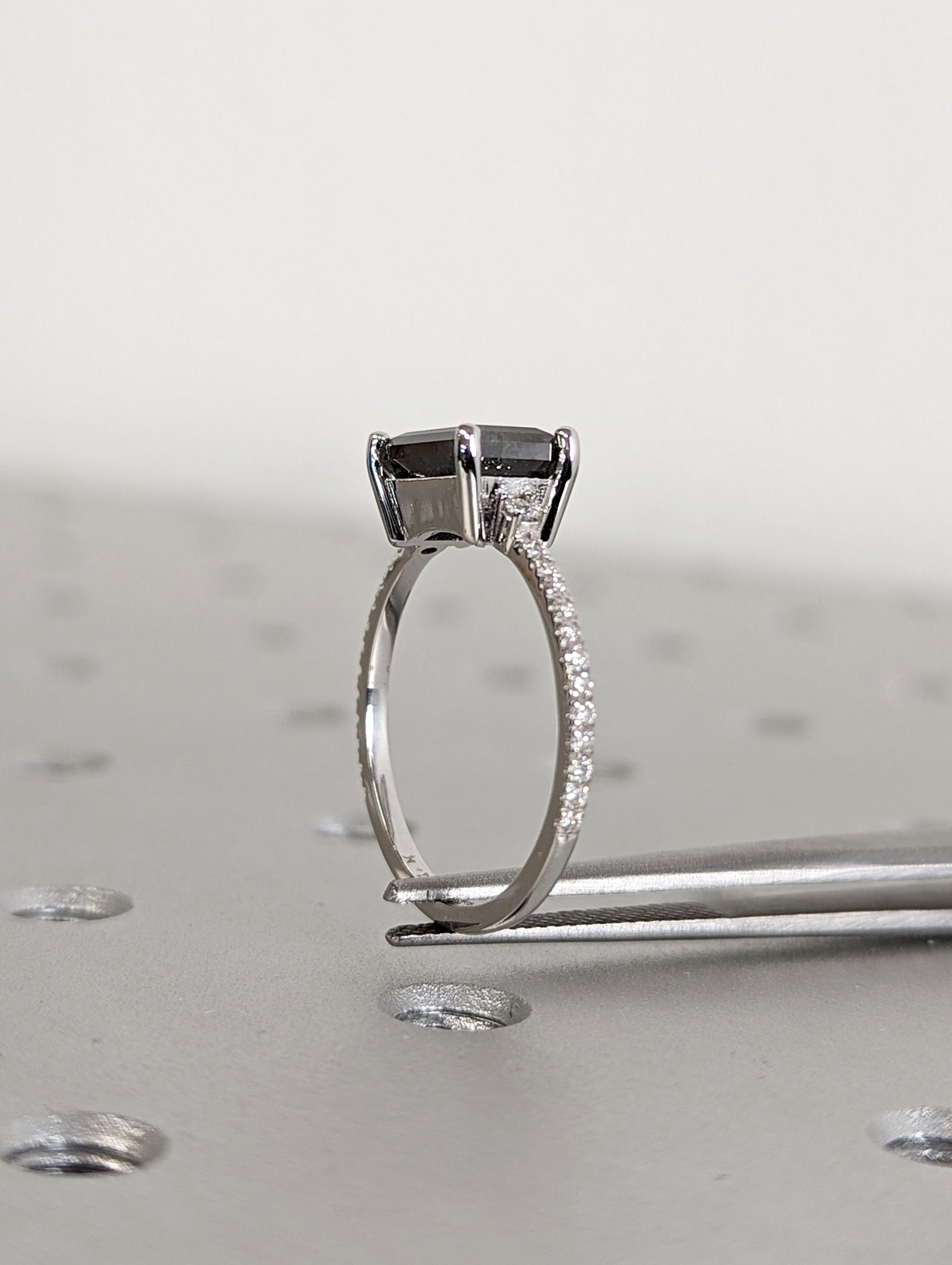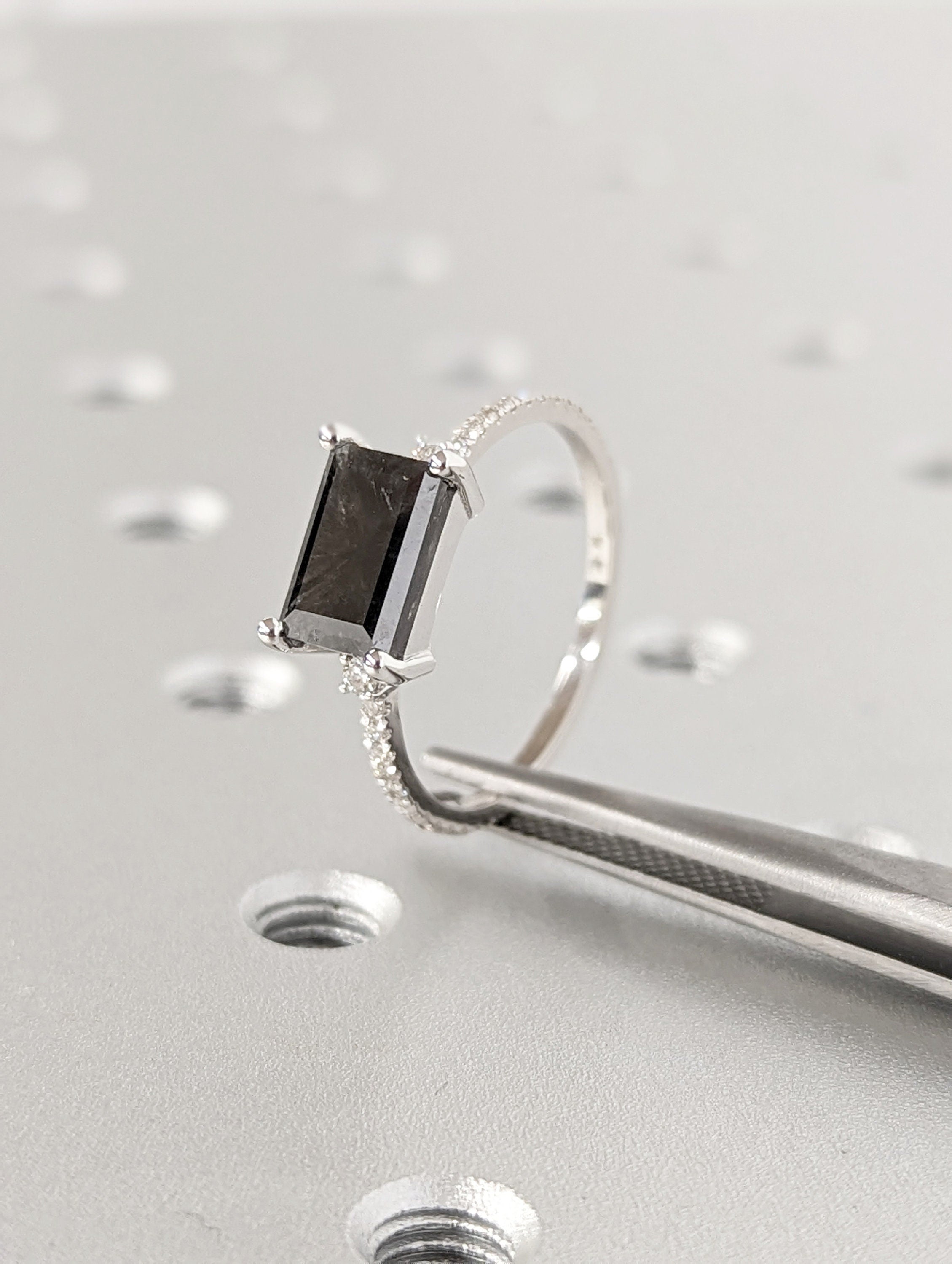 Type: ~1.8-2.1ct Salt and Pepper Natural Diamond - Baguette cut / Emerald Cut.