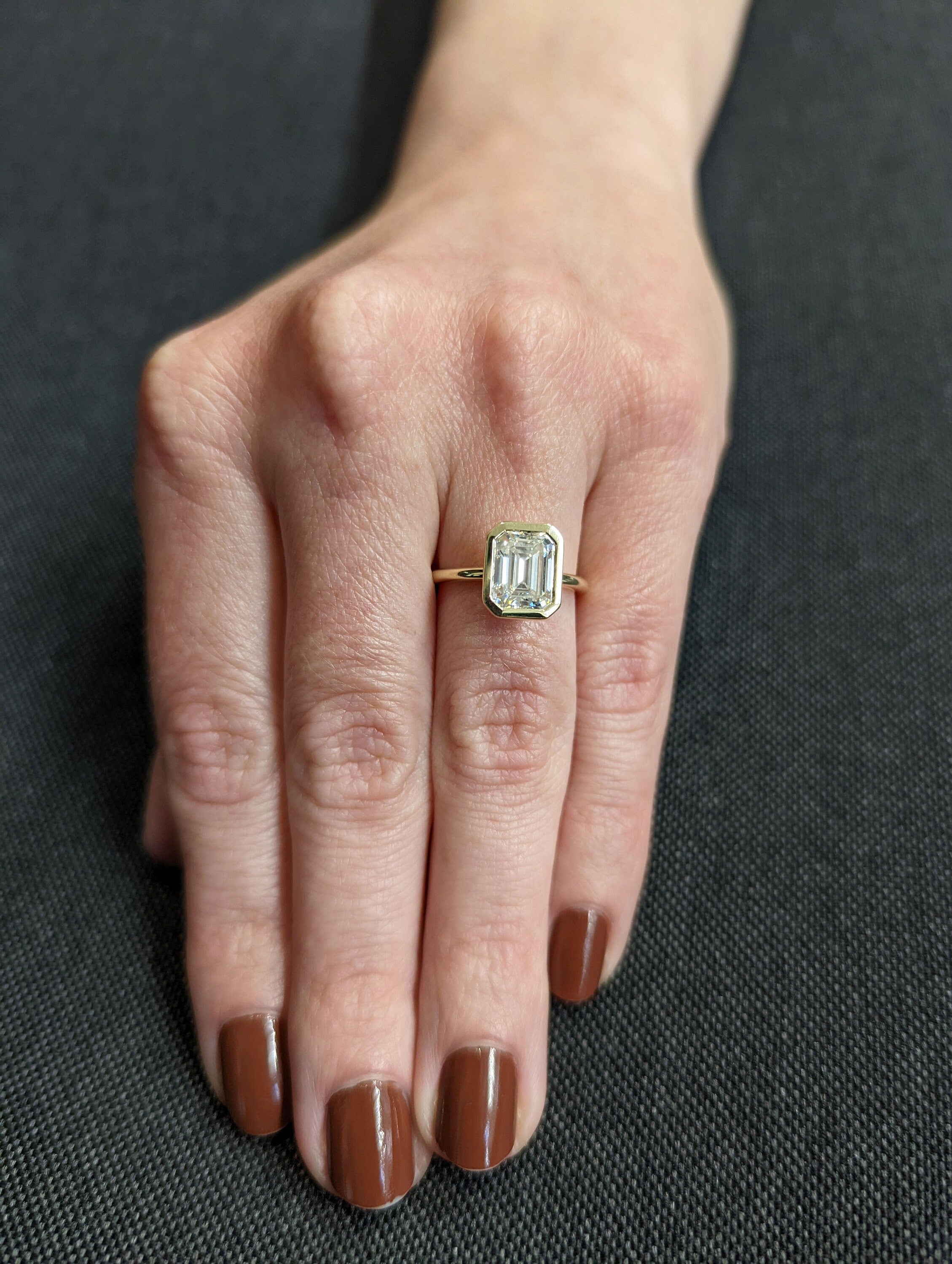 2CT Emerald Cut Moissanite Solitaire Ring, 14K Yellow Gold Engagement Ring, Bezel Setting, Statement Ring, Gift For Her, Bridal Set