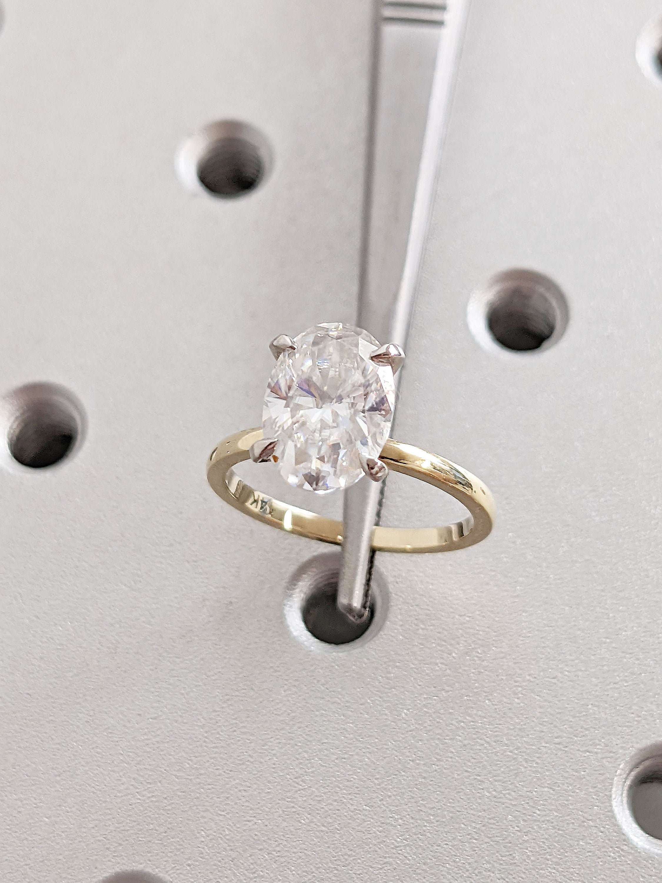 Declare your love in style with our Oval lab-grown diamond engagement ring, crafted with a delicate 1.6mm setting and a distinctive two-tone gold allure, symbolizing the perfect union of elegance and sophistication.
