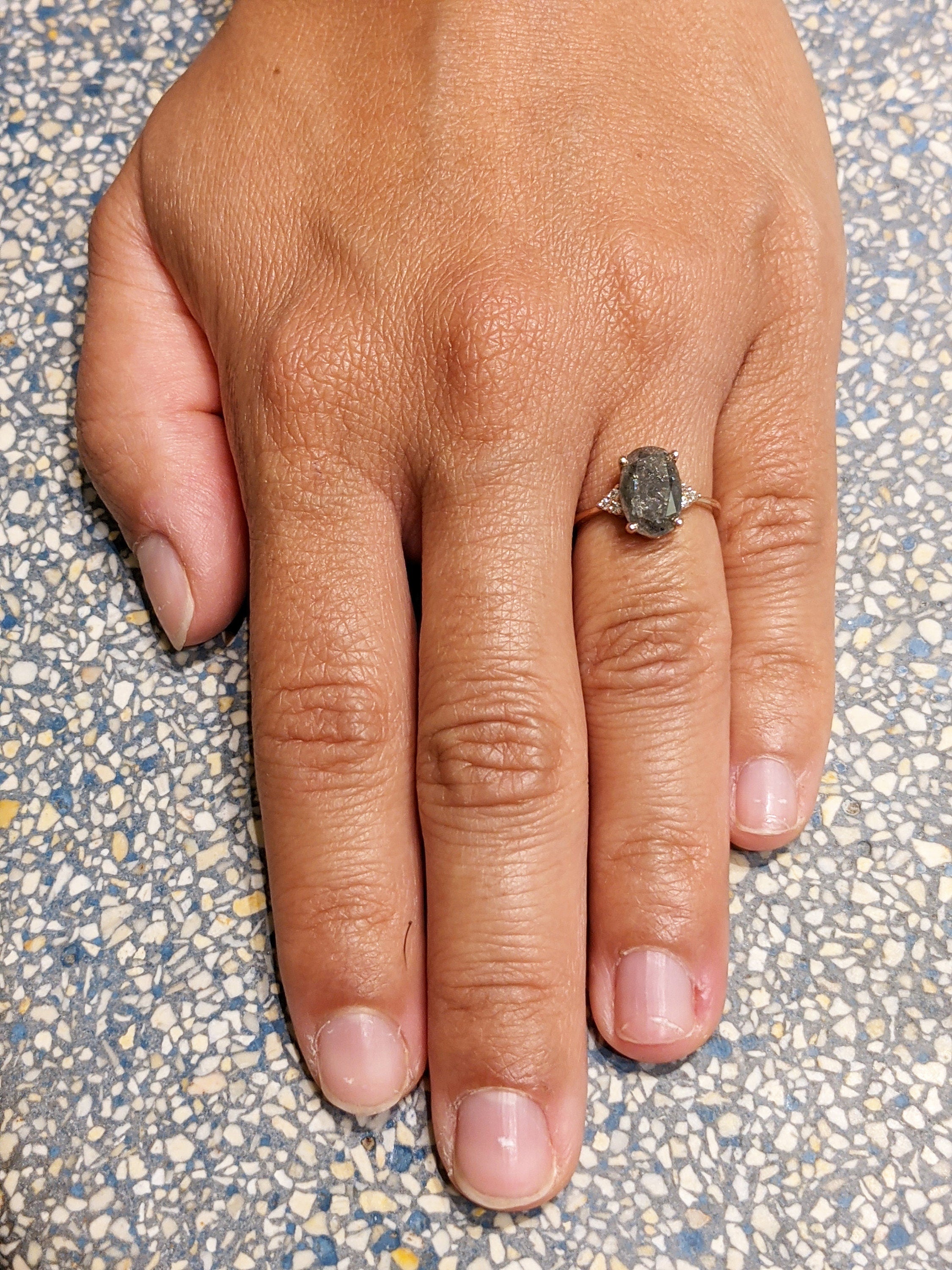 Type: ~1.8-2.3ct Salt and Pepper Natural Diamond - Oval cut.