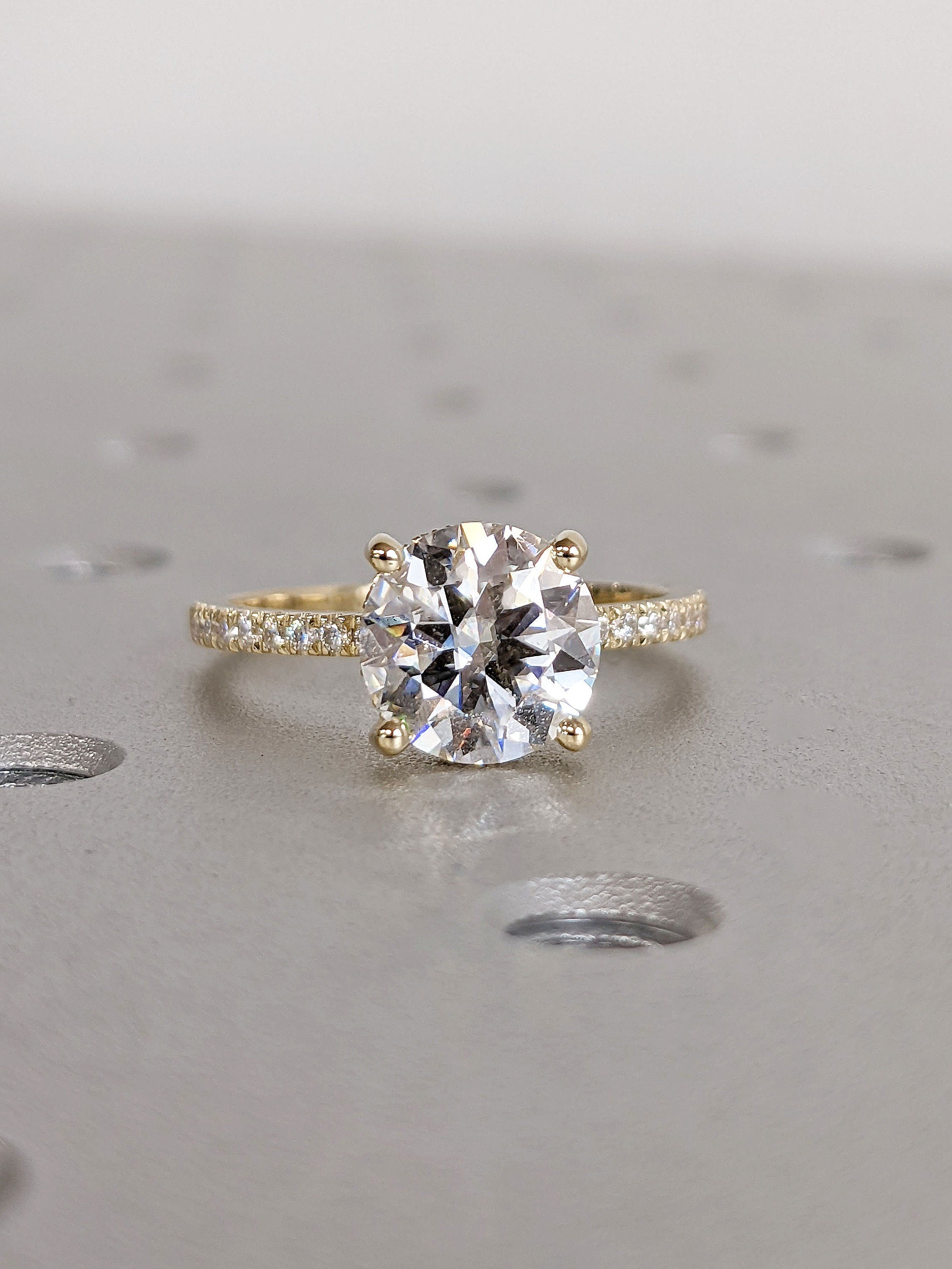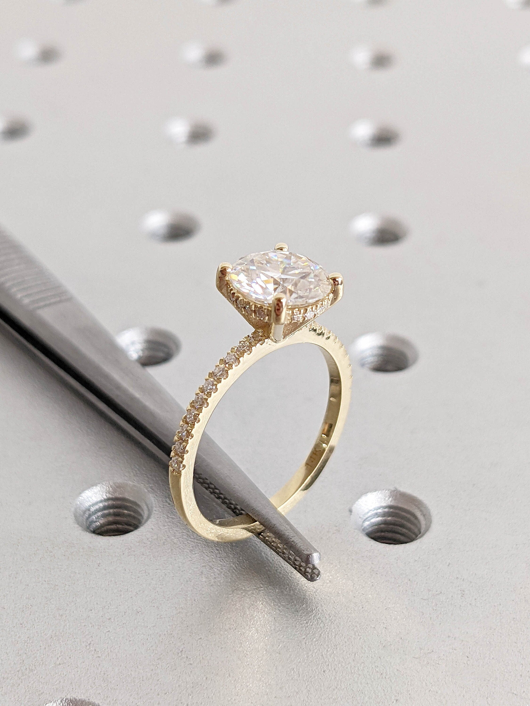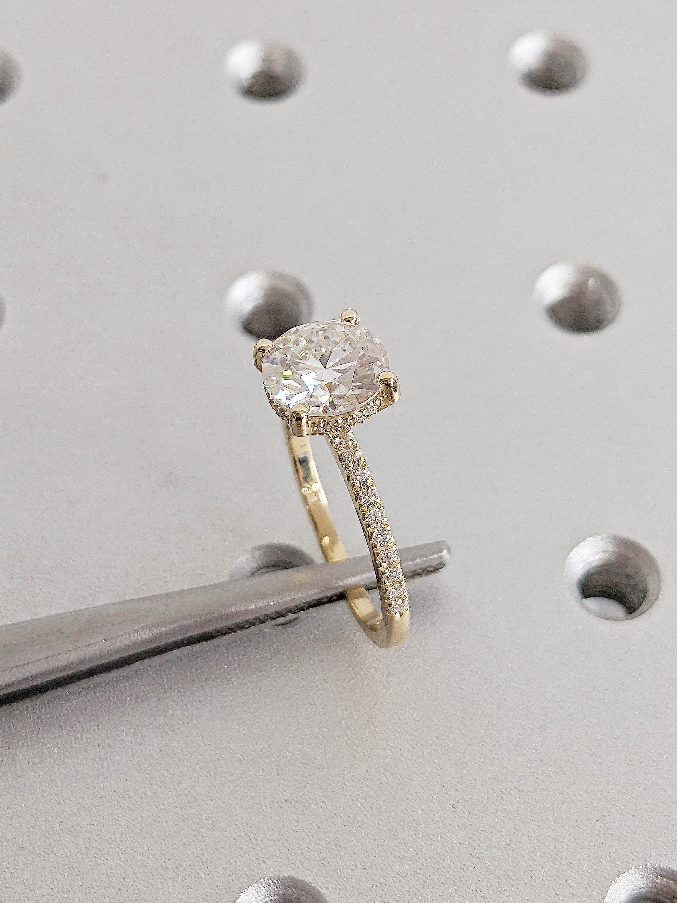 2ct Round cut Moissanite Hidden Halo Half Eternity Women Engagement Ring | 14K 18K Yellow Gold Band for Her | Alternative Bridal Jewelry