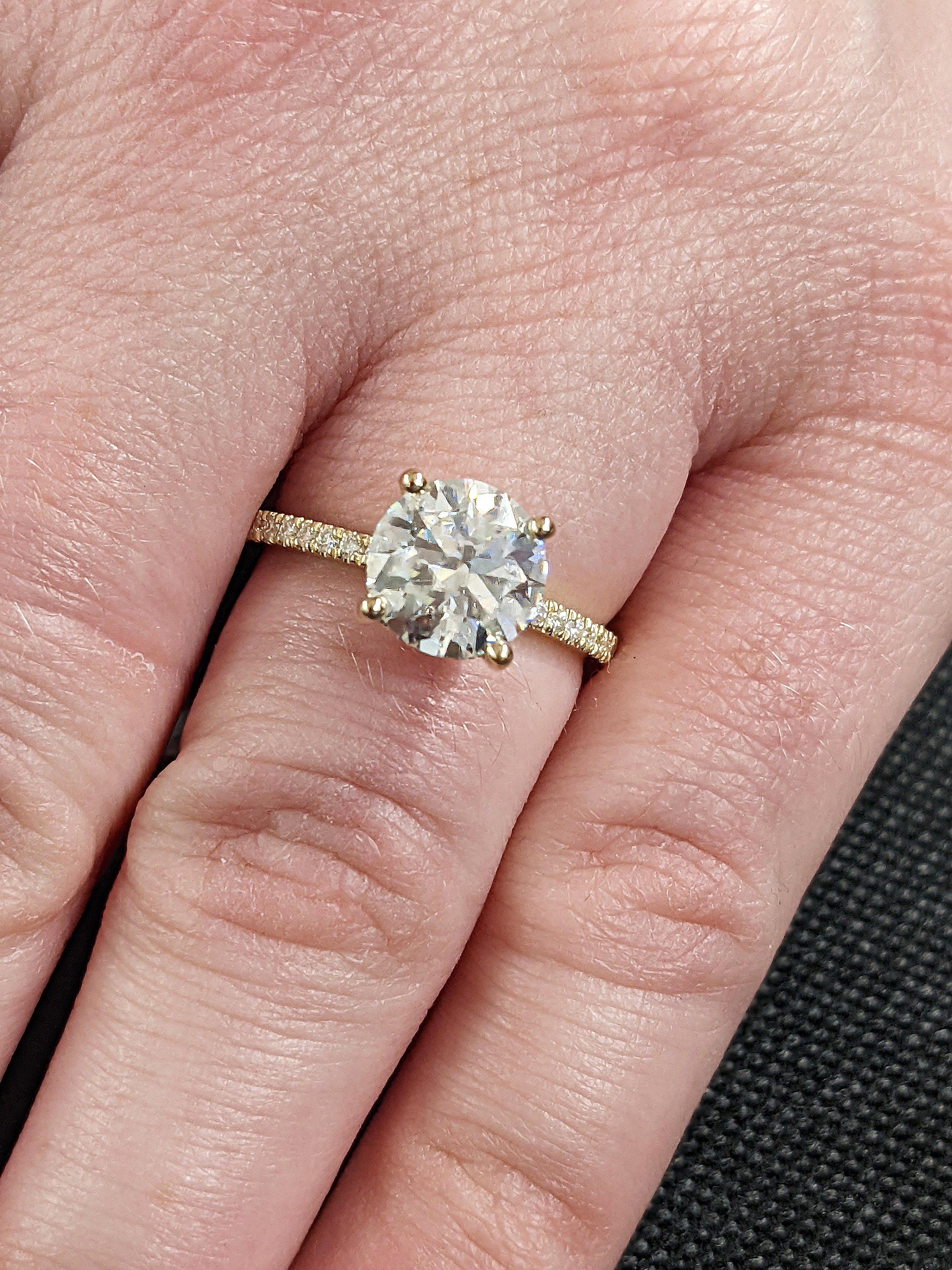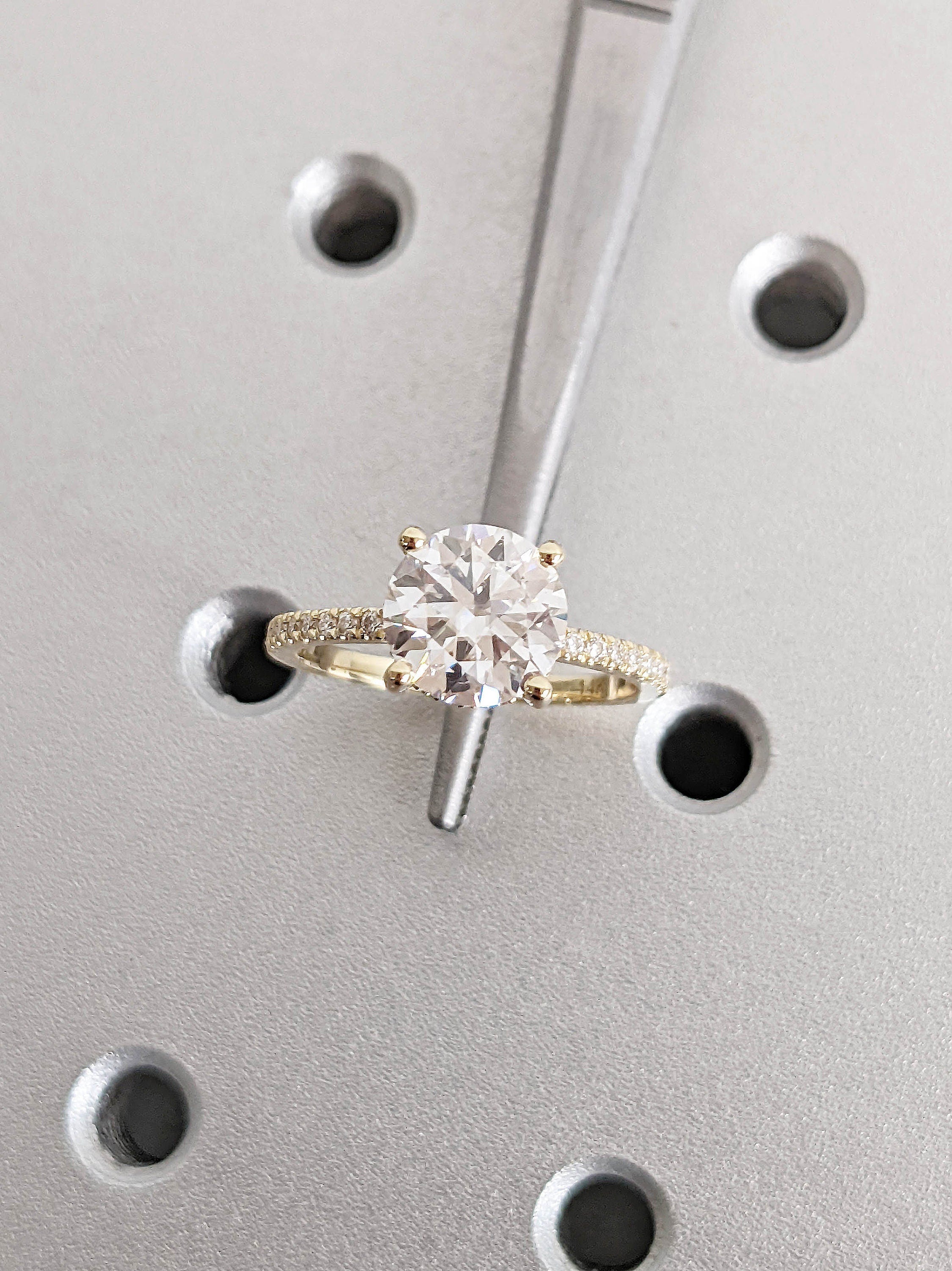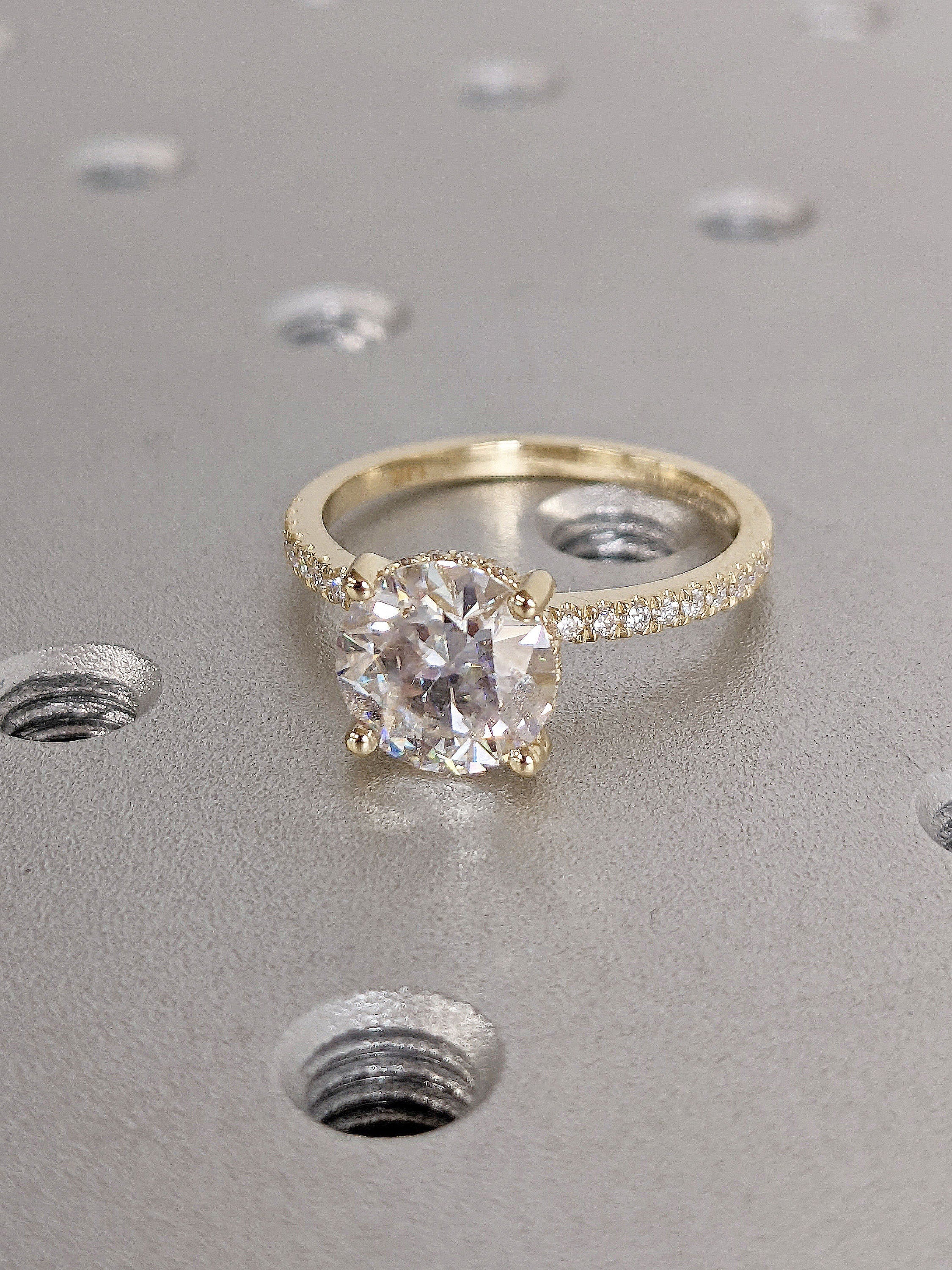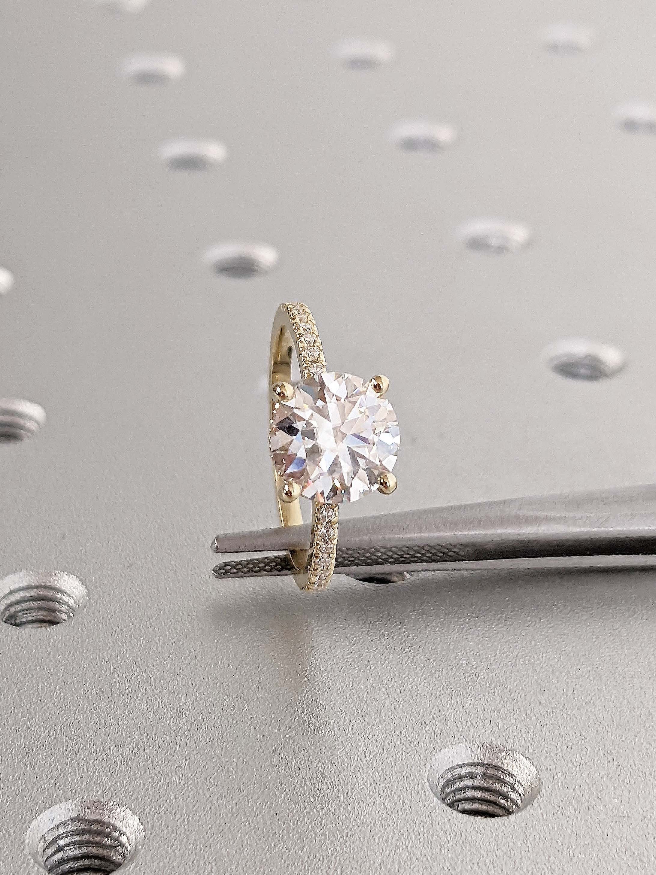 2ct Round cut Moissanite Hidden Halo Half Eternity Women Engagement Ring | 14K 18K Yellow Gold Band for Her | Alternative Bridal Jewelry