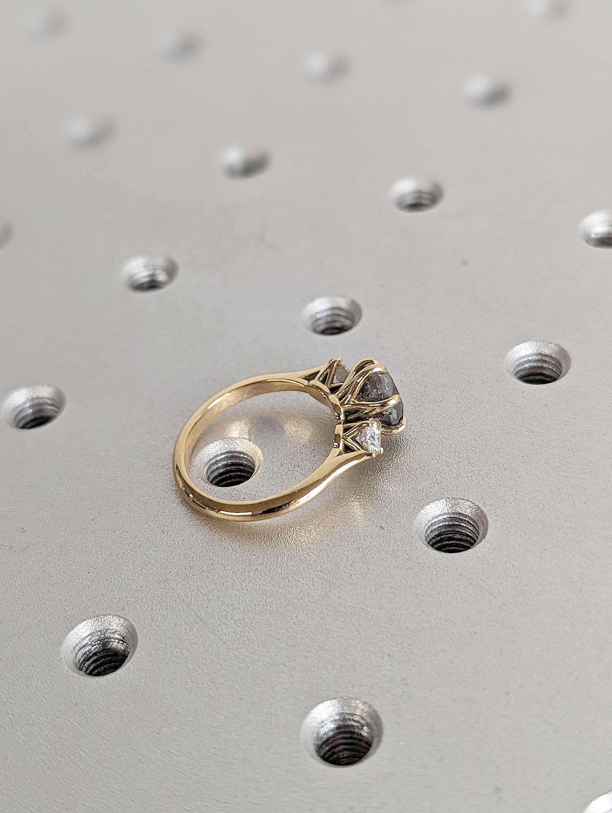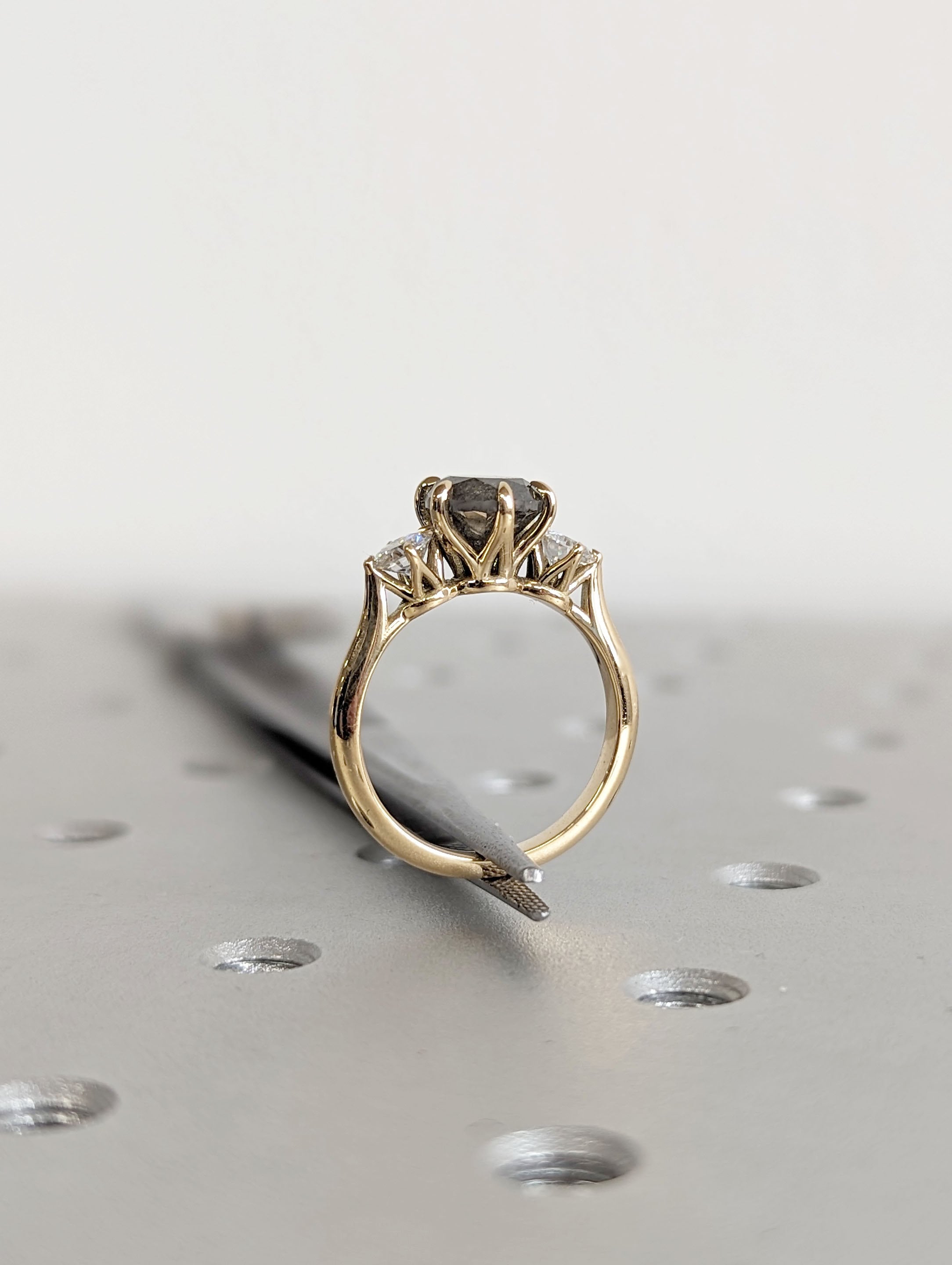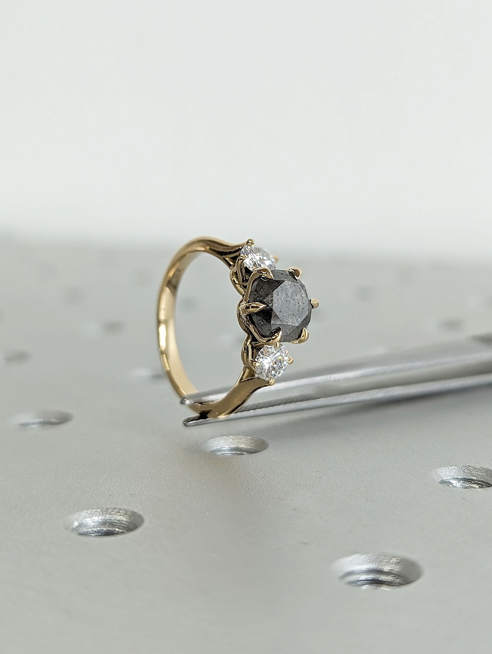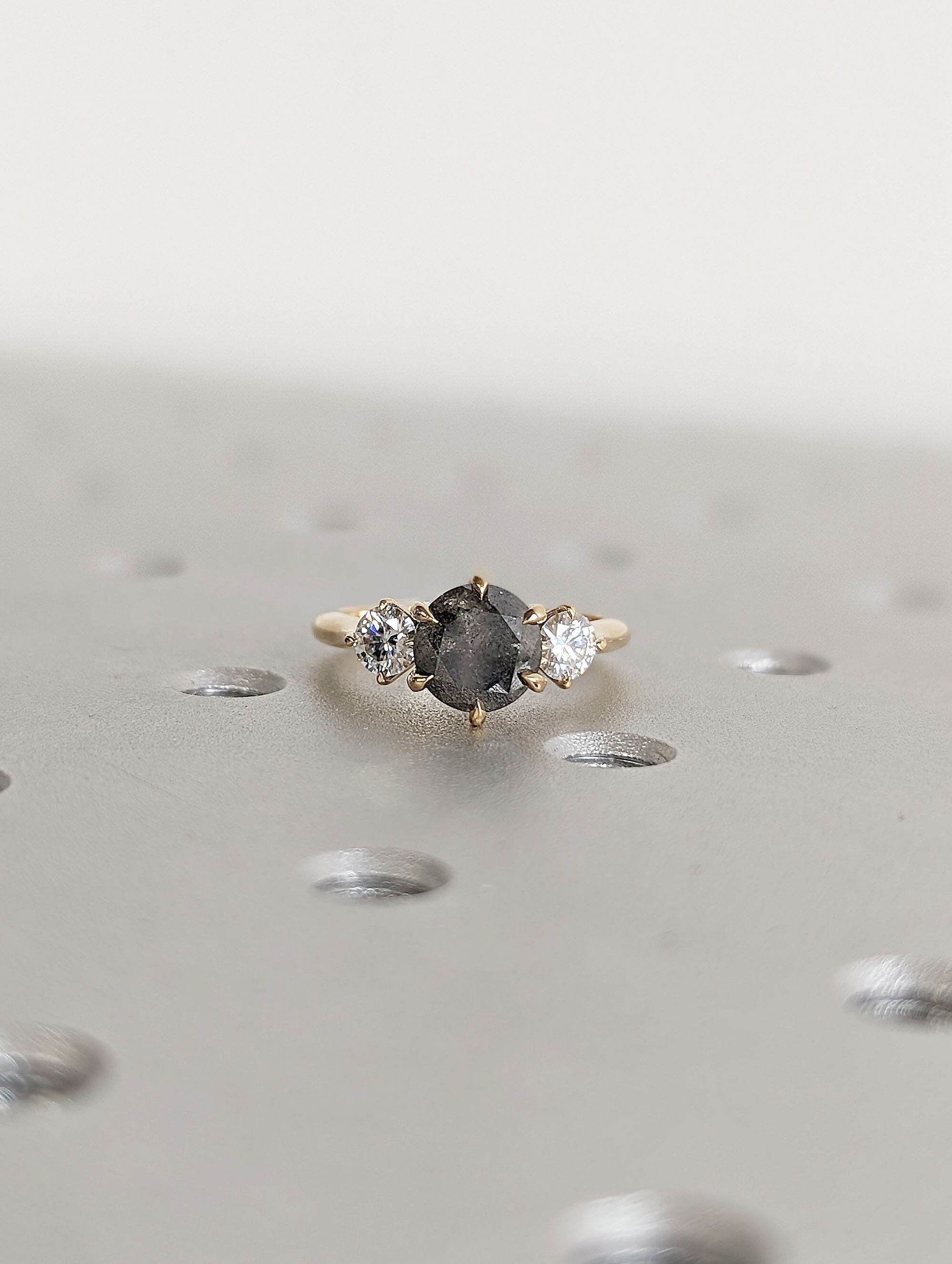 2ct Salt and Pepper Grey Diamond 3 Stone Trilogy Wedding Anniversary Ring | Art Deco Multi Stone Solid Gold Unique Proposal Ring for Her