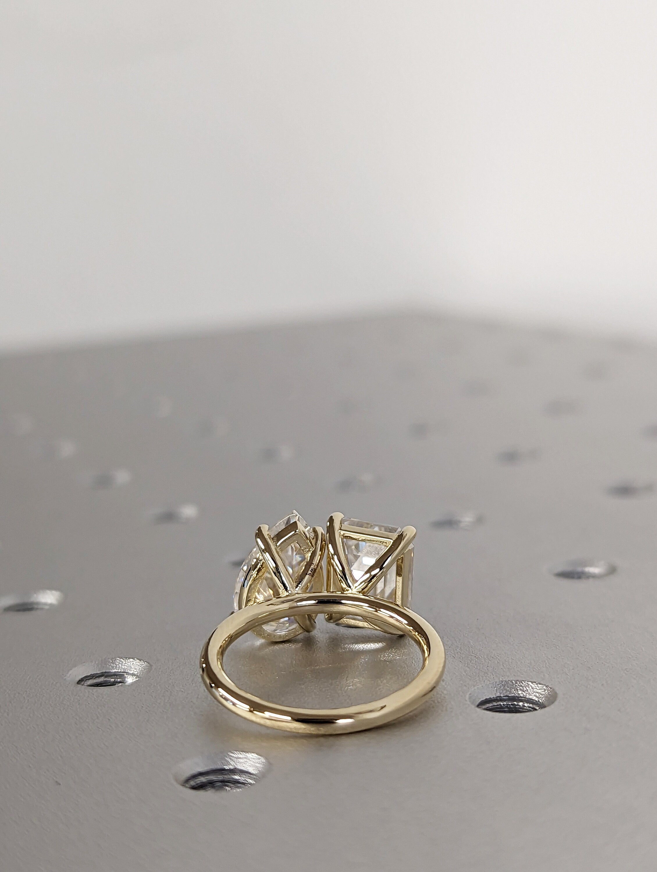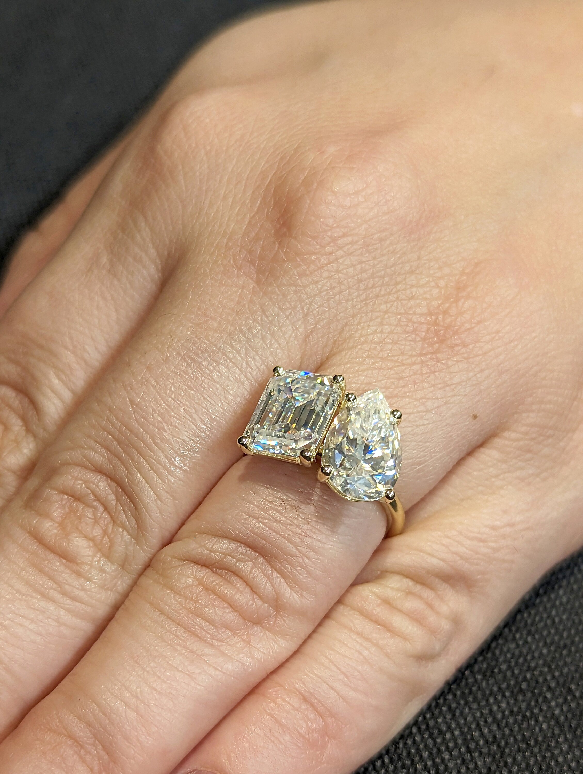 3 Carat Double Stone Engagement Ring Pear Cut and Emerald Cut Moissanite Two Stone Wedding Ring 14K White Yellow Rose Gold