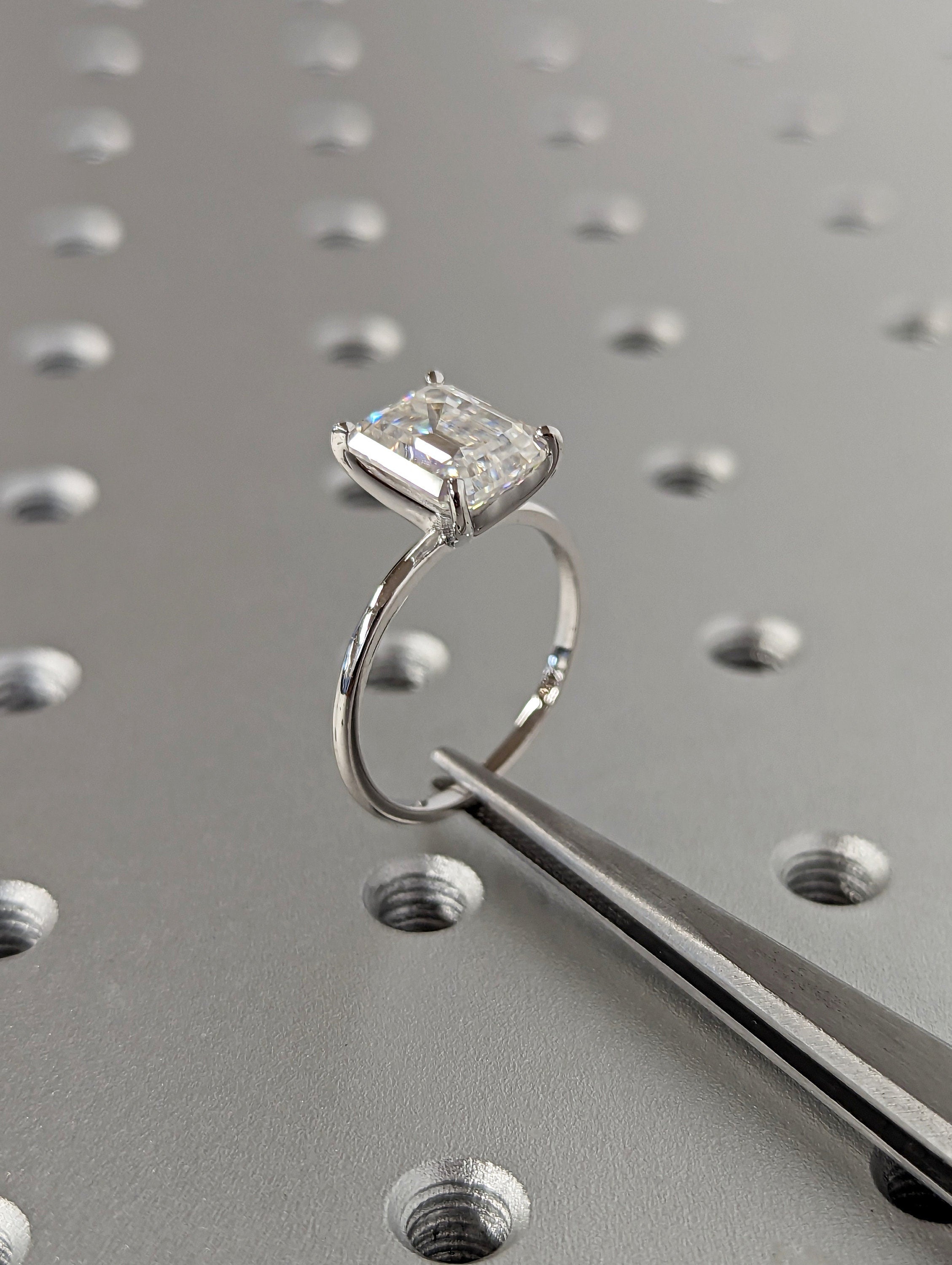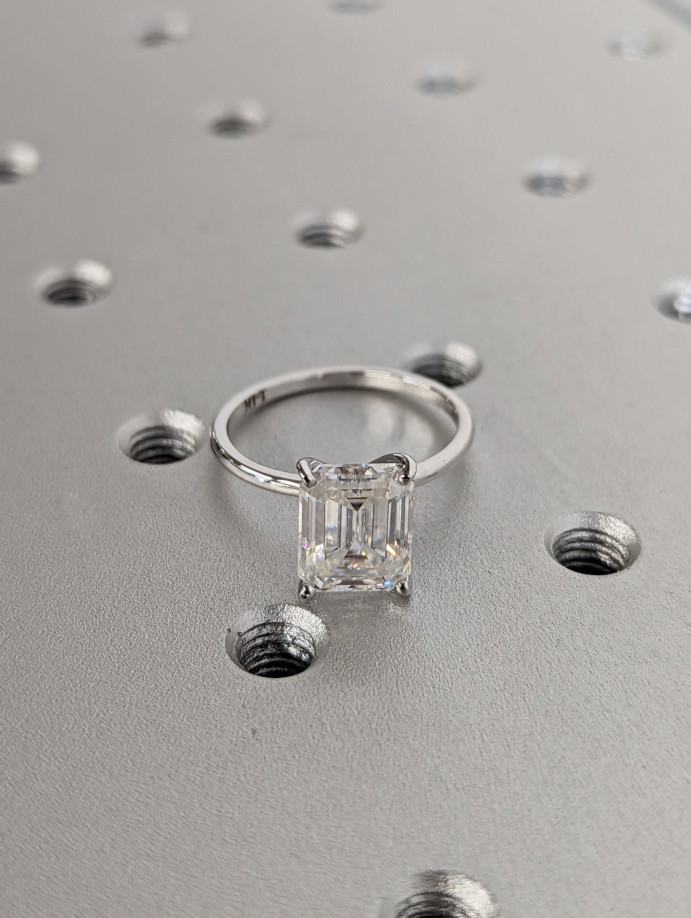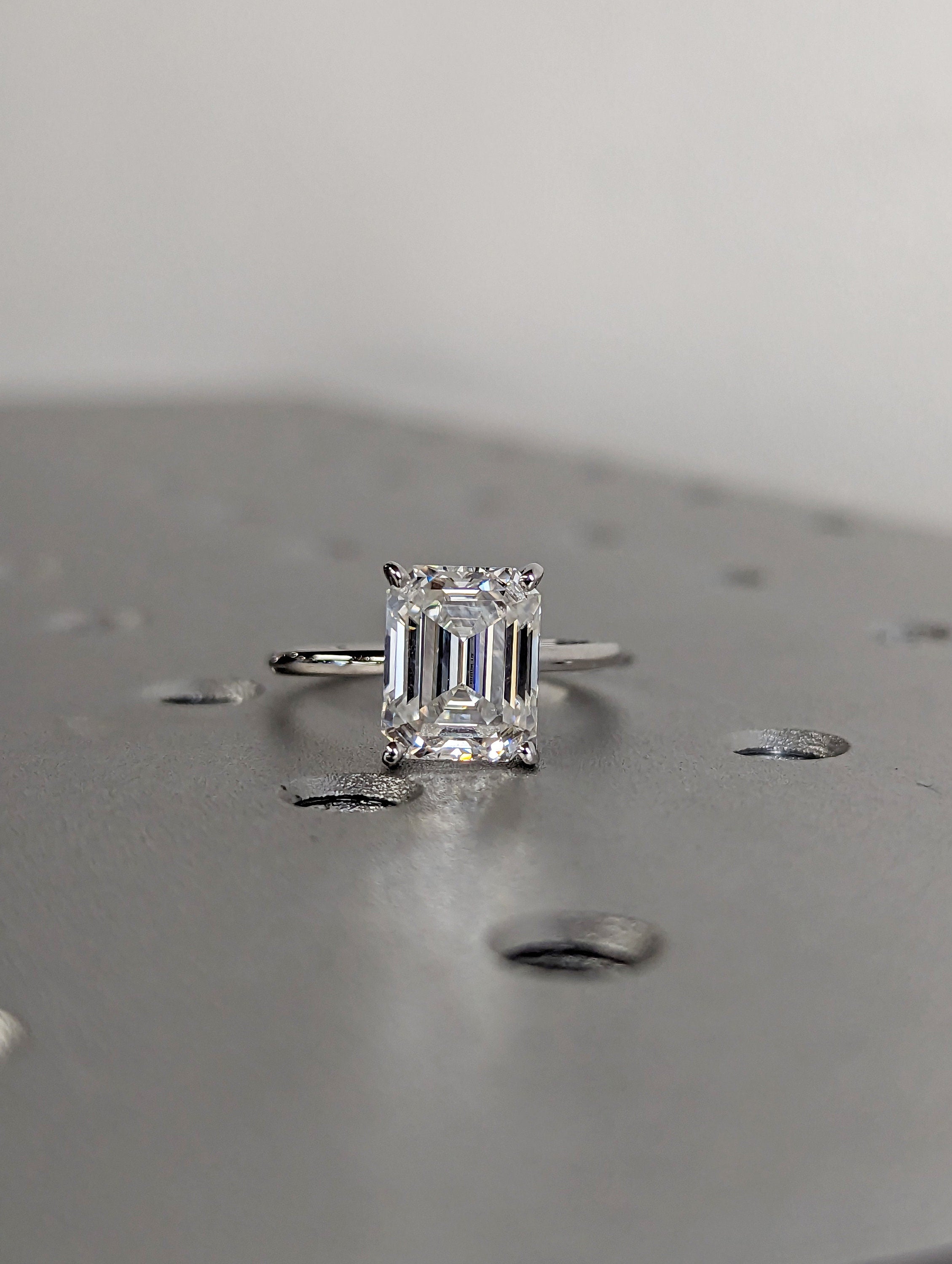 3 Carat Emerald Cut Solitaire Engagement Ring, Emerald Cut Engagement Ring, Emerald Cut Ring, 3 Ct Solid 14k Moissanite Engagement Ring