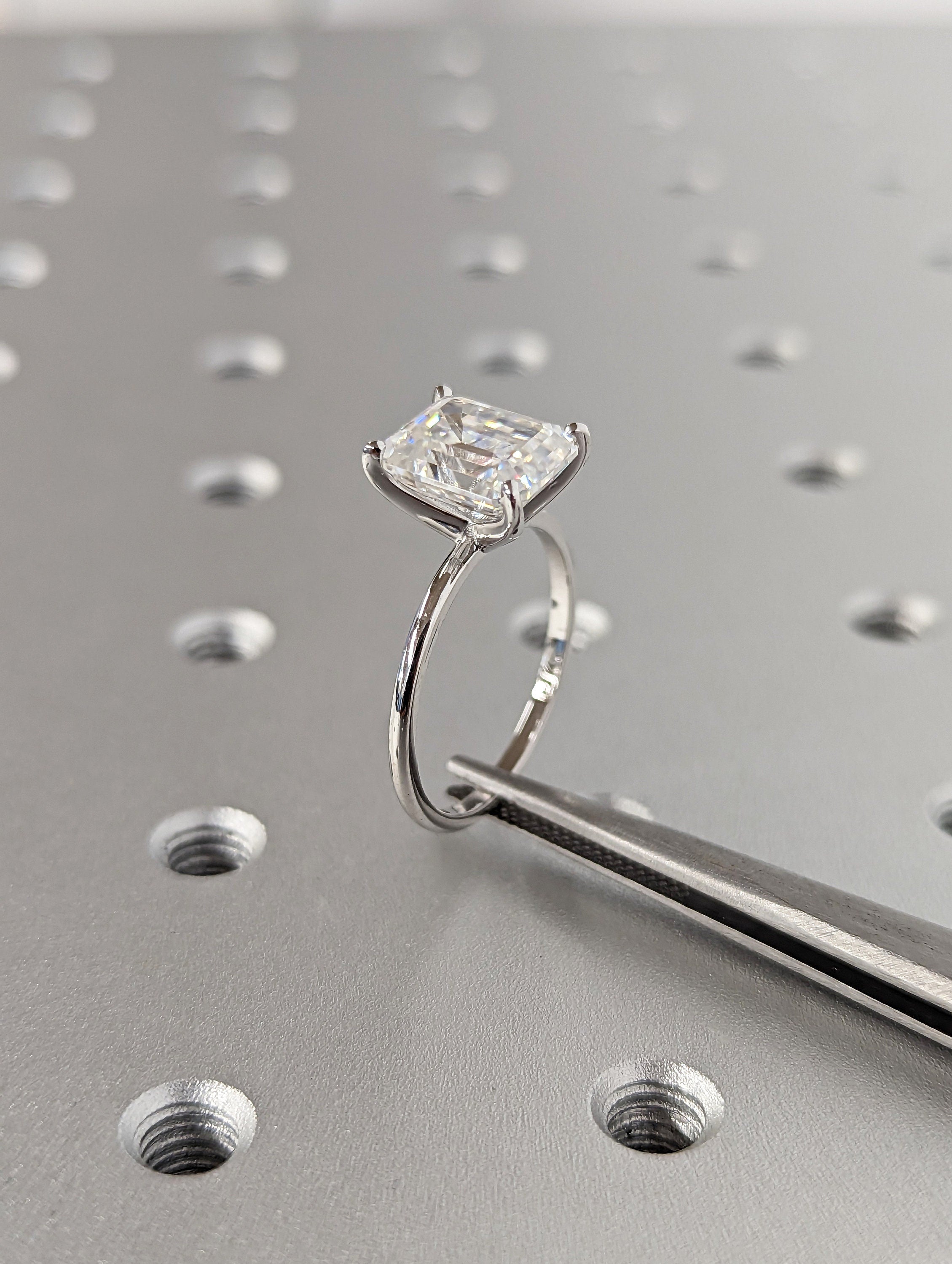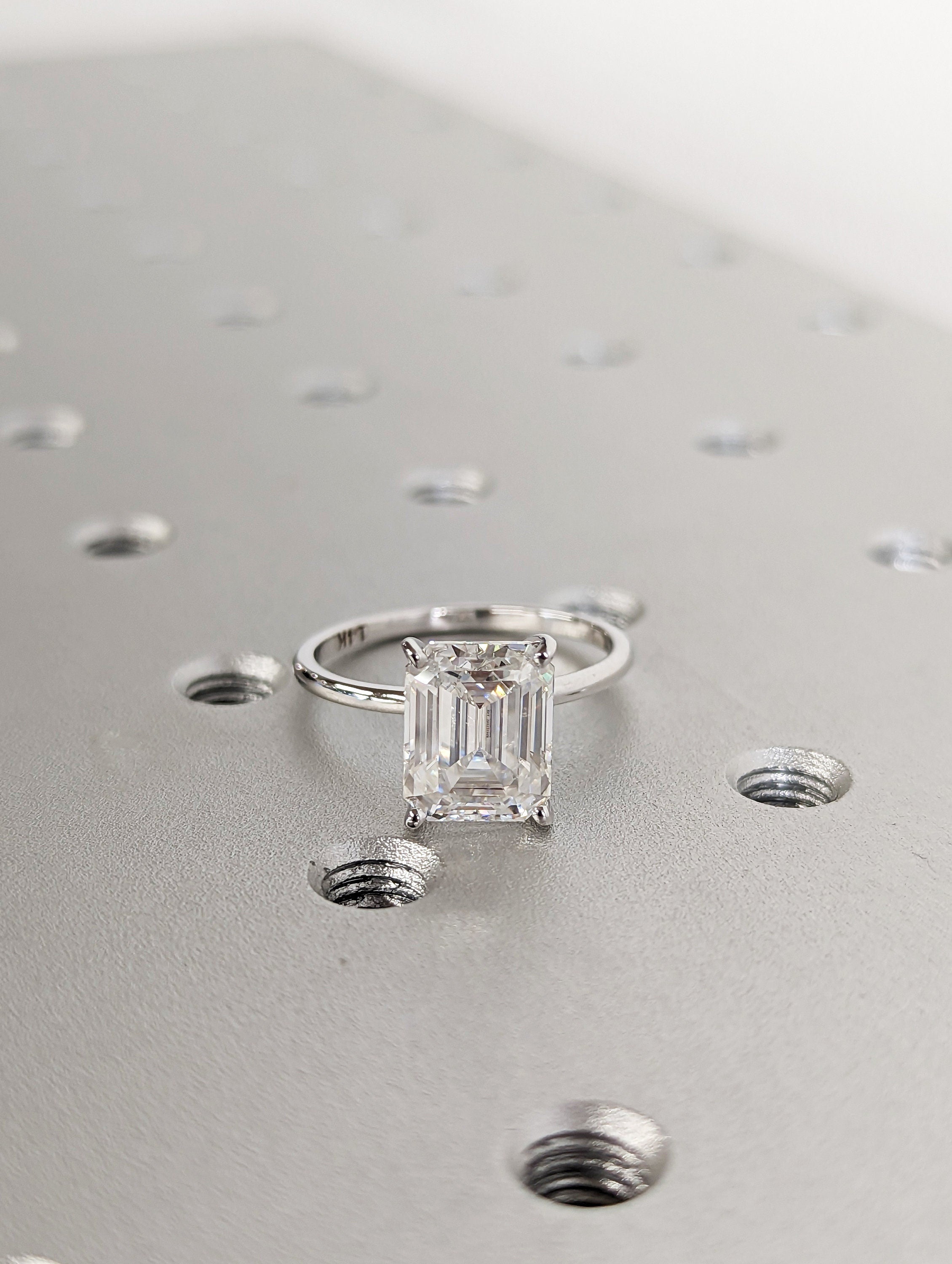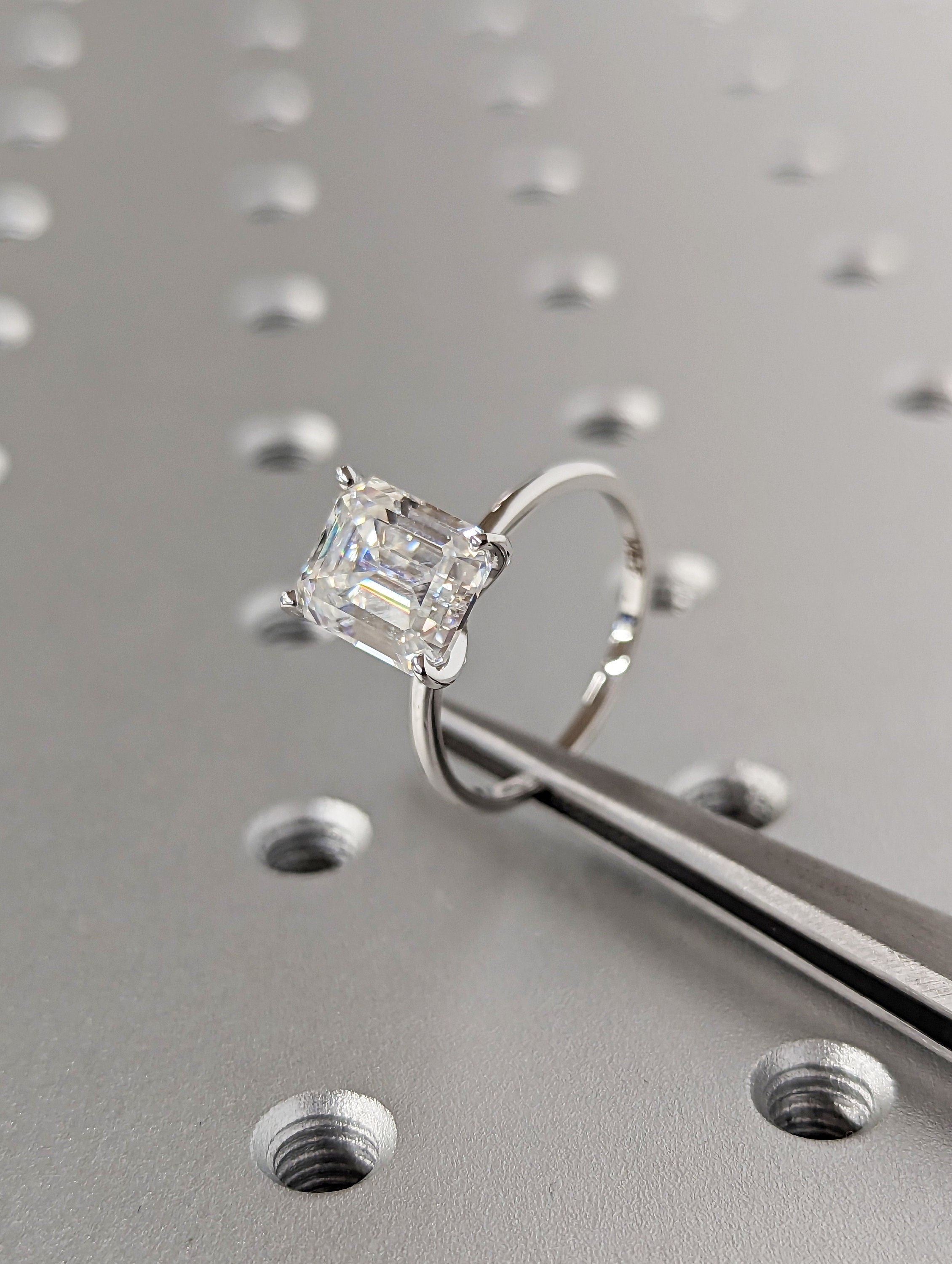 3 Carat Emerald Cut Solitaire Engagement Ring, Emerald Cut Engagement Ring, Emerald Cut Ring, 3 Ct Solid 14k Moissanite Engagement Ring