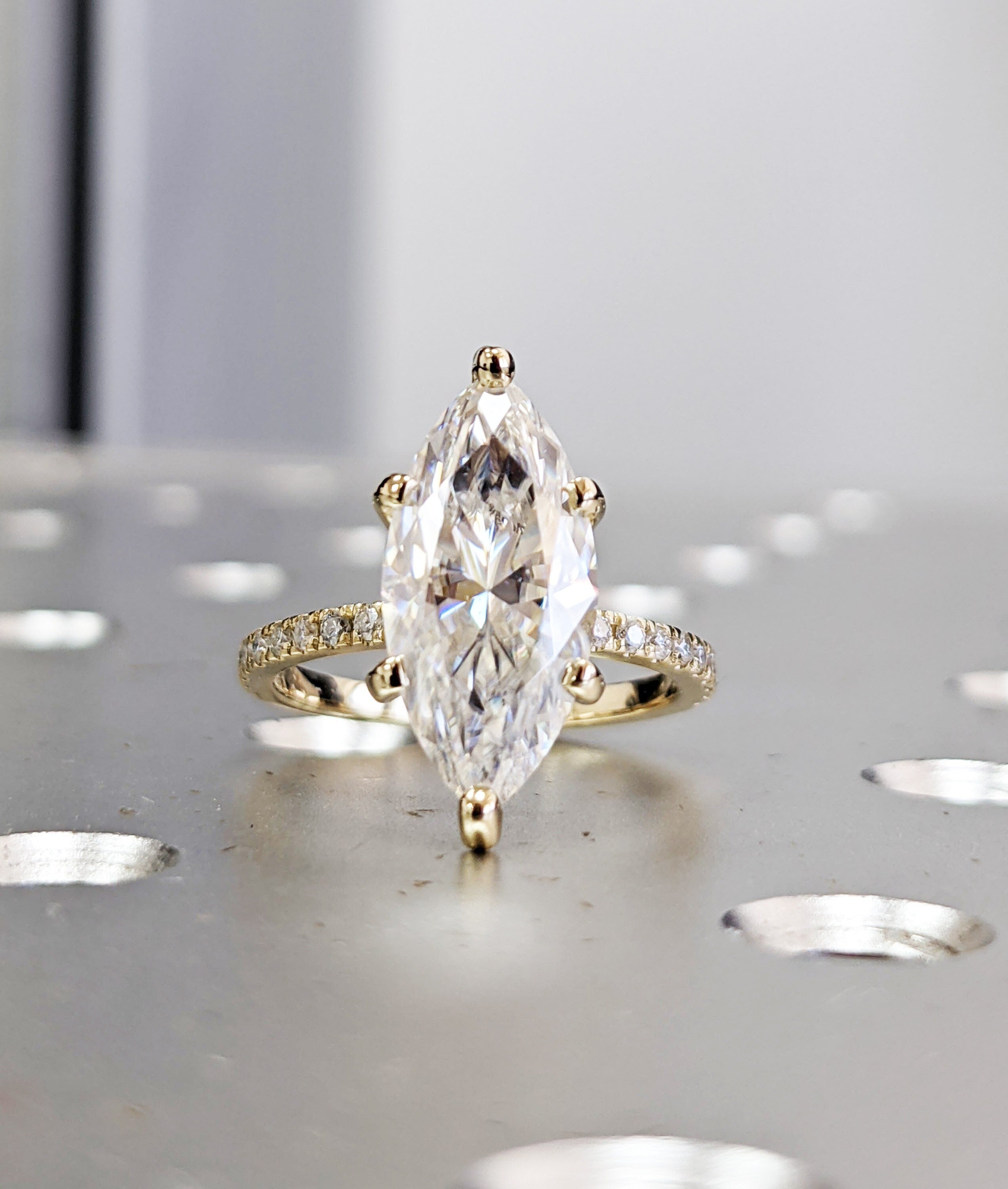 3 Carat Marquise Engagement Ring With Side Accent Stones, Wedding Ring, Anniversary Ring 14K Solid Real White Gold