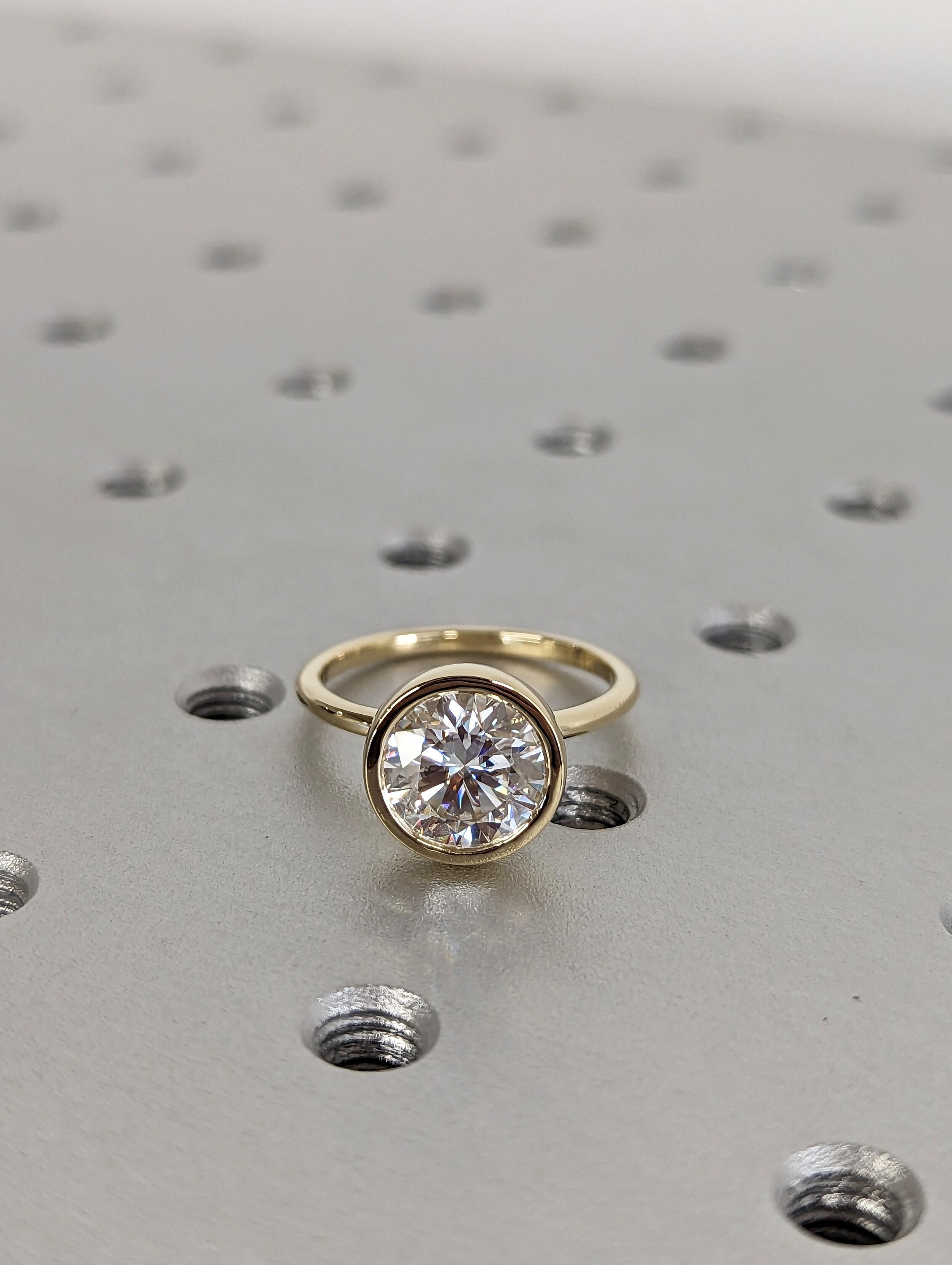 3CT Round Cut Moissanite Solitaire Ring, 14K Yellow Gold Engagement Ring, Bezel Setting, Statement Ring, Gift For Her, Bridal Set