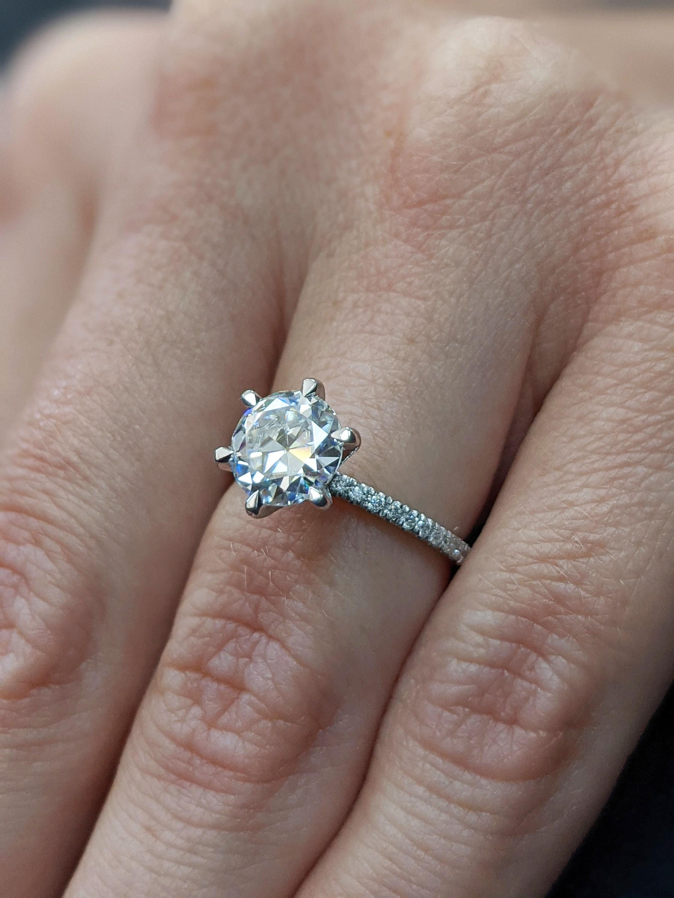 4,5,6,7 Carat Old Miner cut Moissanite Engagement Rings | Old Mine cut Diamond Ring | 14k White Gold Rings for Women | Round Promise Ring