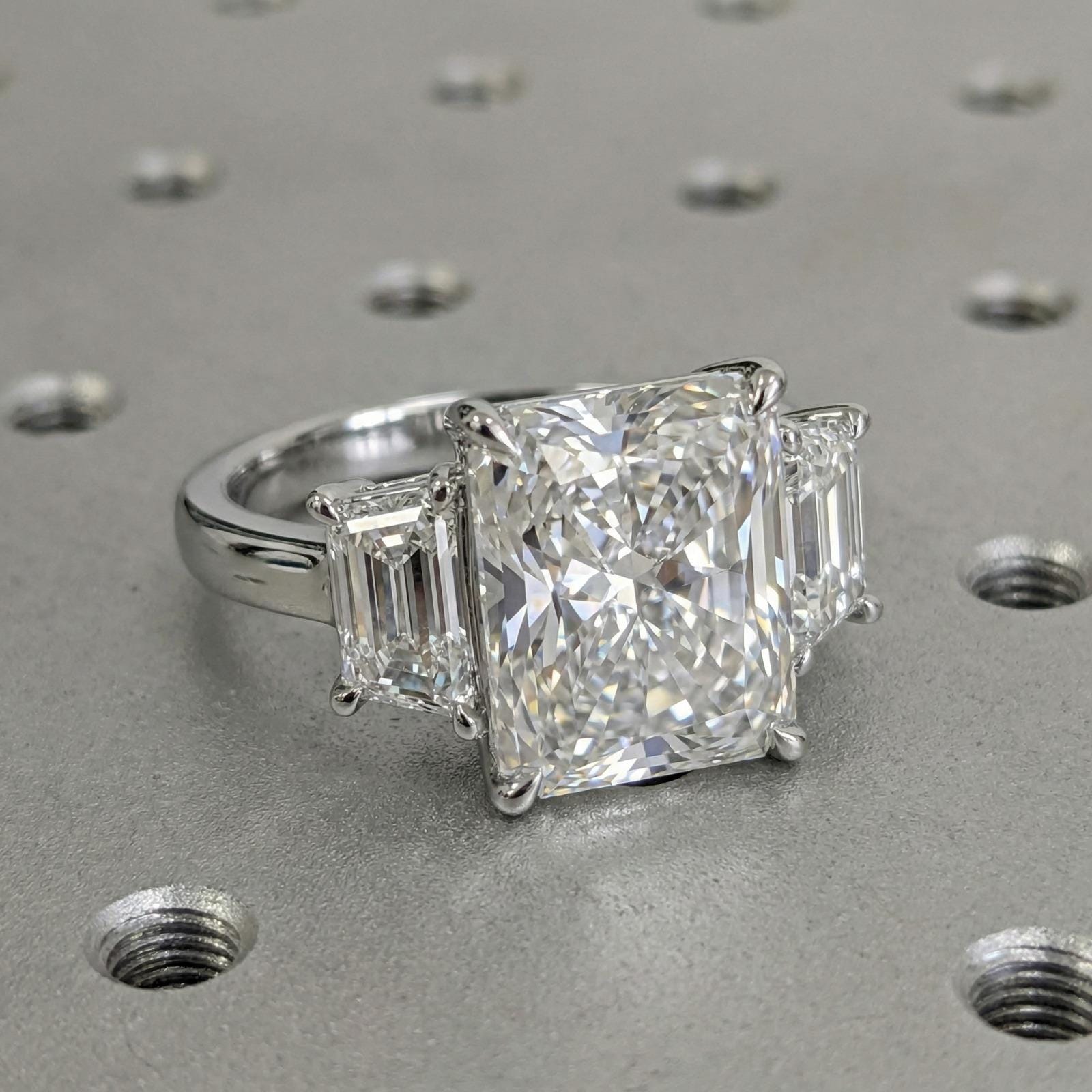 5 Carat D/F Color VS1 Lab Diamond Ring | Radiant cut Solid Gold Engagement Ring | Past Present Future Ring | Wedding Anniversary Gift